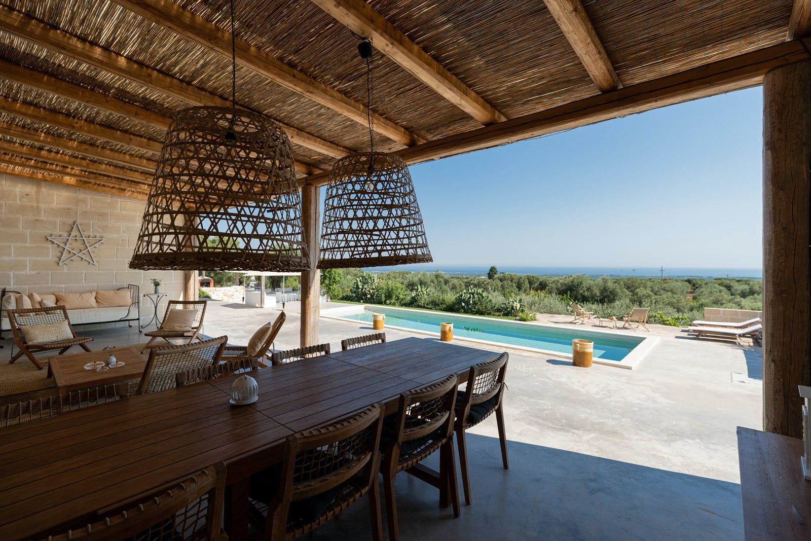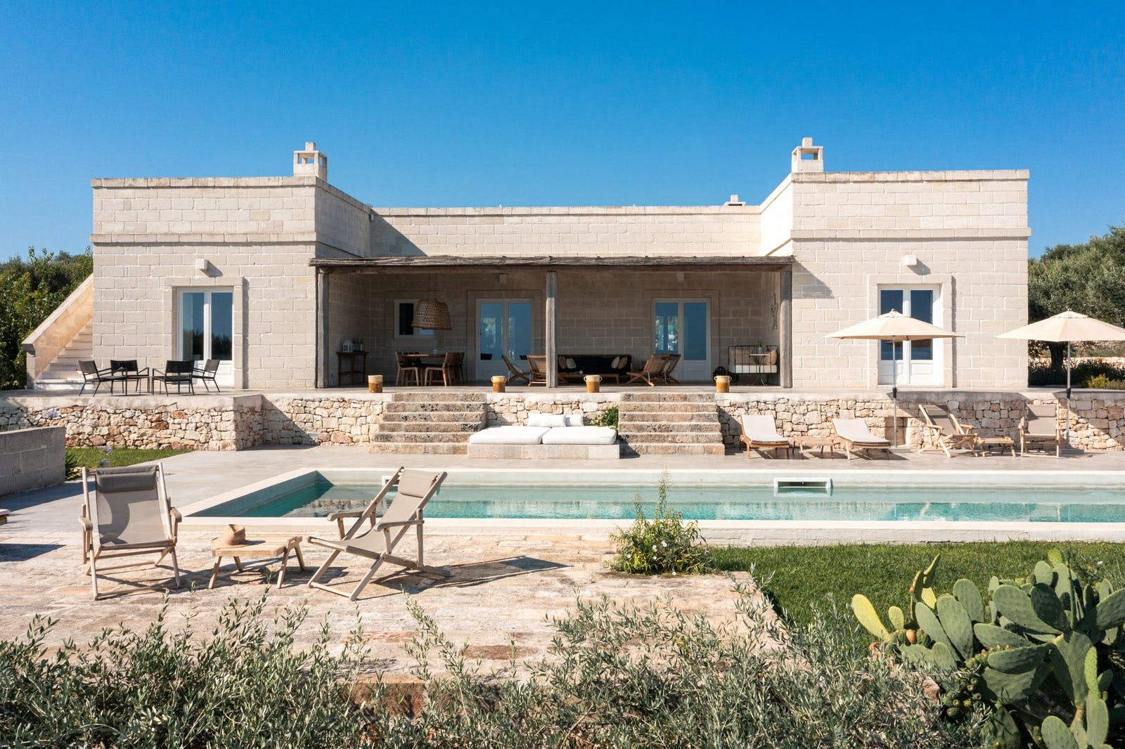 Tucked away among olive groves, this contemporary villa with its roof terrace, saltwater pool and stylish interiors is a little slice of paradise in the Puglia countryside. Indoors flows into outdoors in a seamless way here – we loved the use of natural textures, neutral colours and unfussy furnishings.