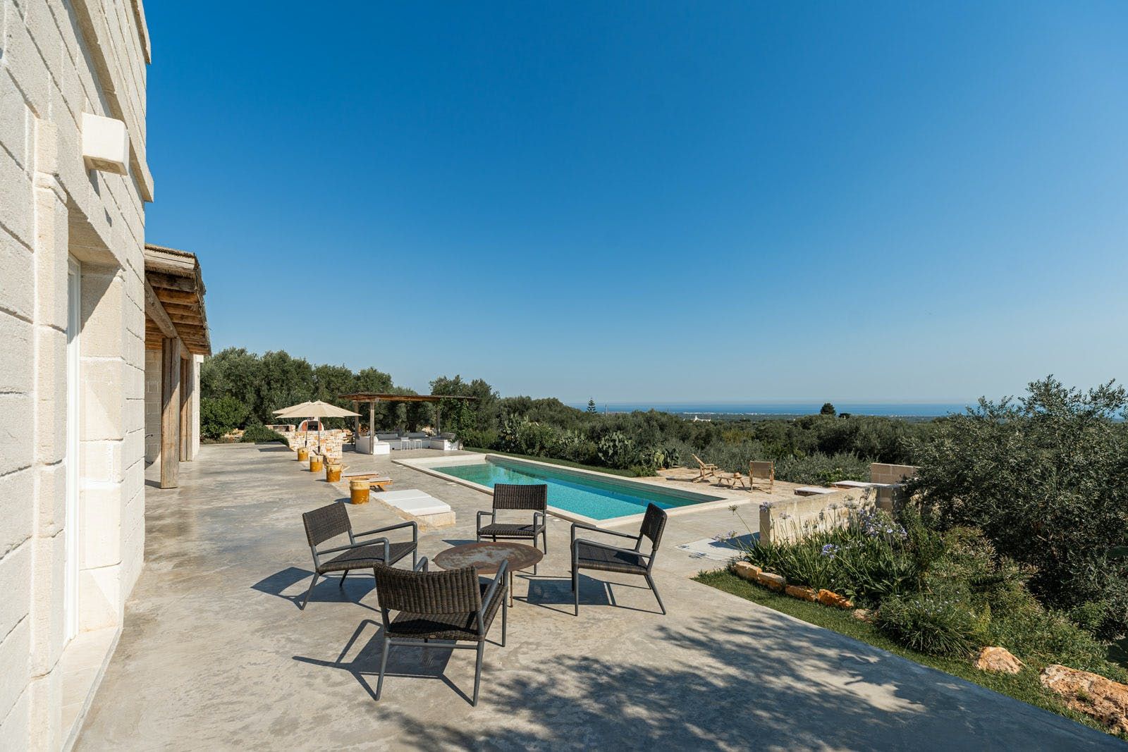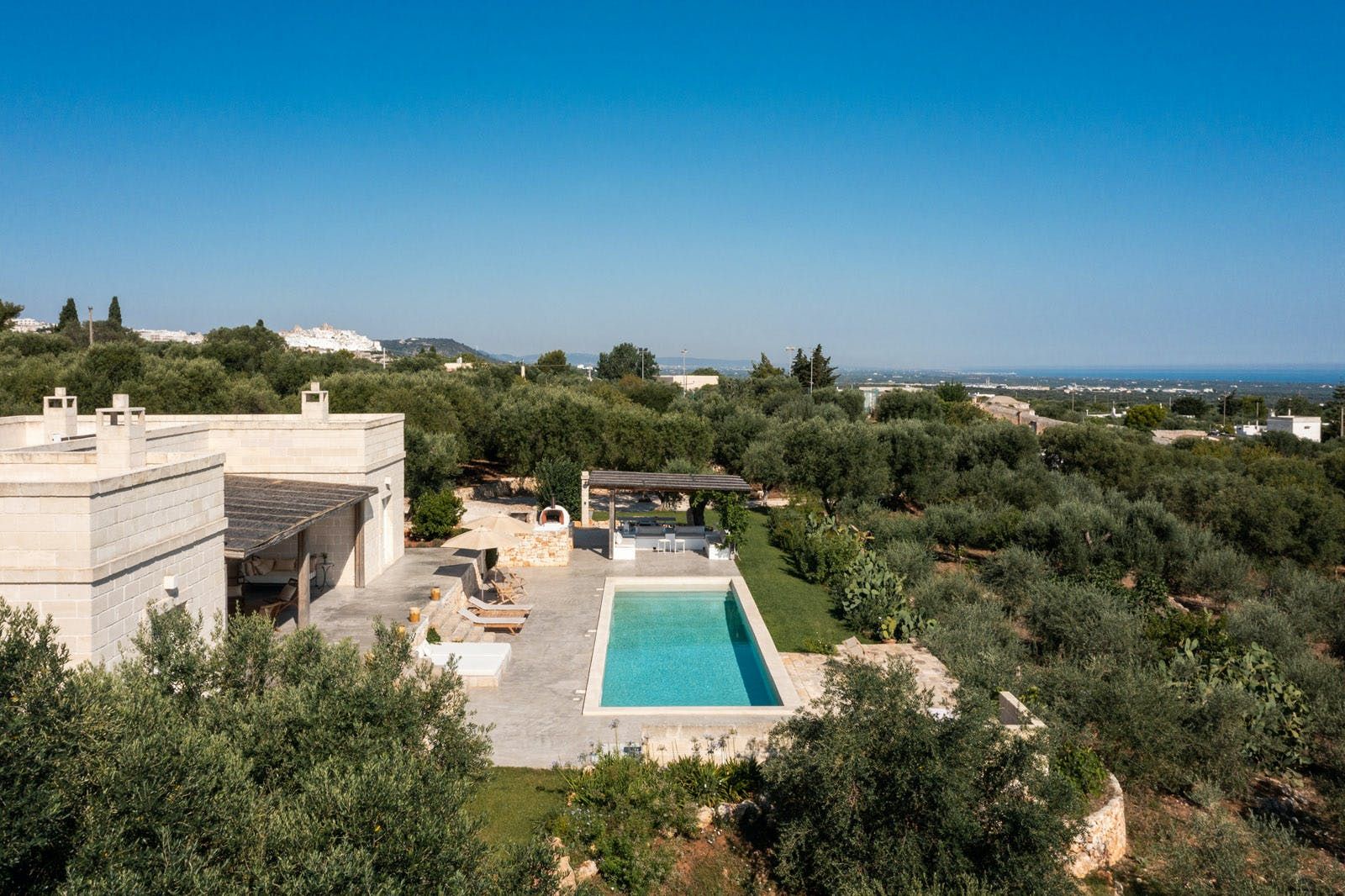 For those keen to explore, you’re a six-minute drive from the centre of Ostuni, a stunning hillside city with a whitewashed old town, home to higgledy-piggledy cobbled streets and artisanal shops. Lamaforca Beach is a ten-minute car ride from your doorstep – the crystal clear waters are perfect for snorkelling.