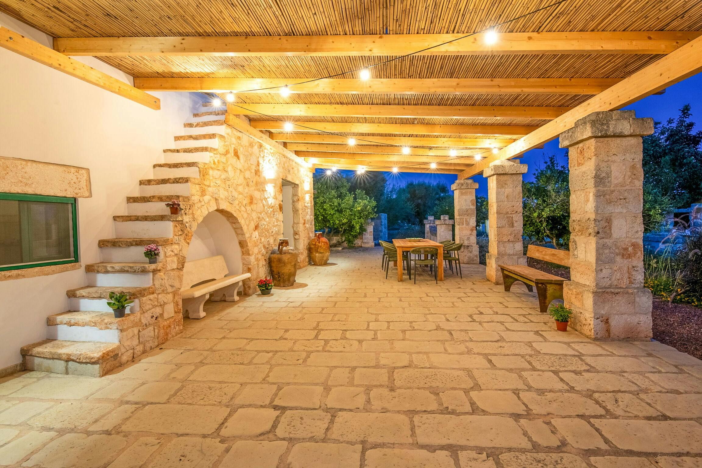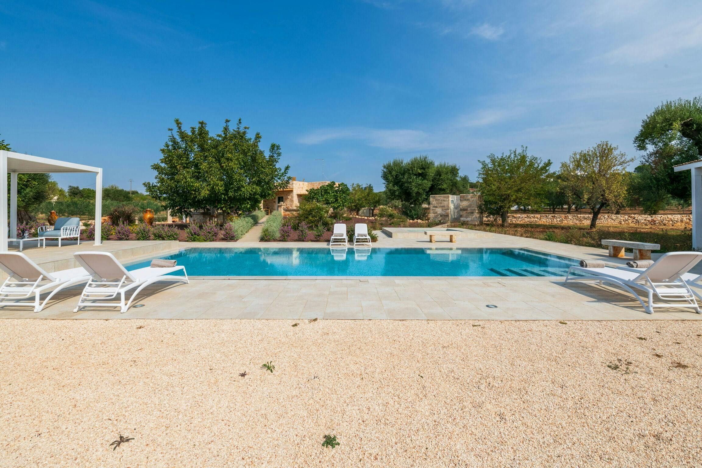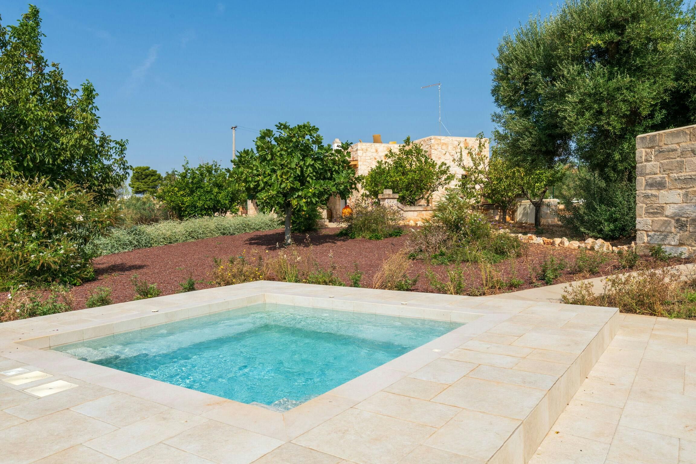 This home is located in the heart of the Itria Valley. Comprising a self-contained contemporary villa and a self-contained historic lamia, it’s a great choice for a group getaway. Outside you’ll find a private pool, Jacuzzi, and alfresco dining terrace to enjoy, while inside boasts a living area and two kitchens. And when it comes to daytrips, you’ll be spoilt for choice with Ostuni, Carovigno, and Cisternino all within a twenty-five minute drive.