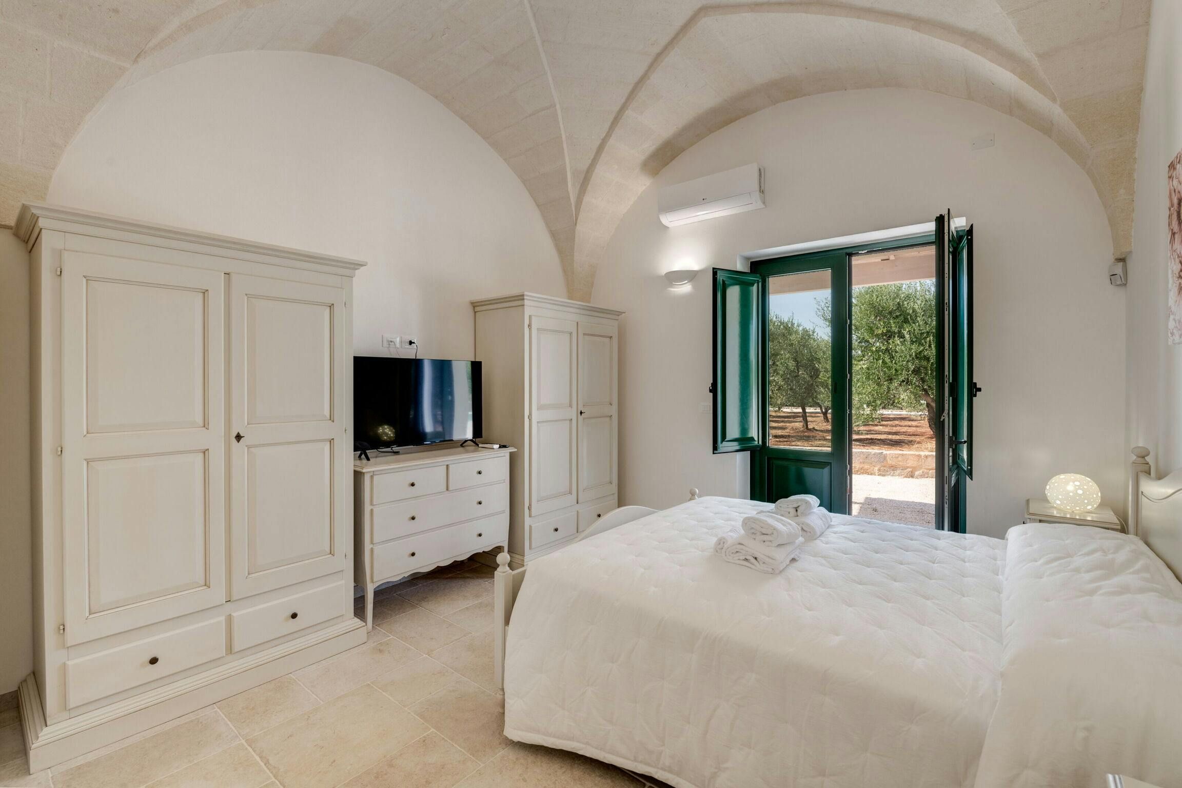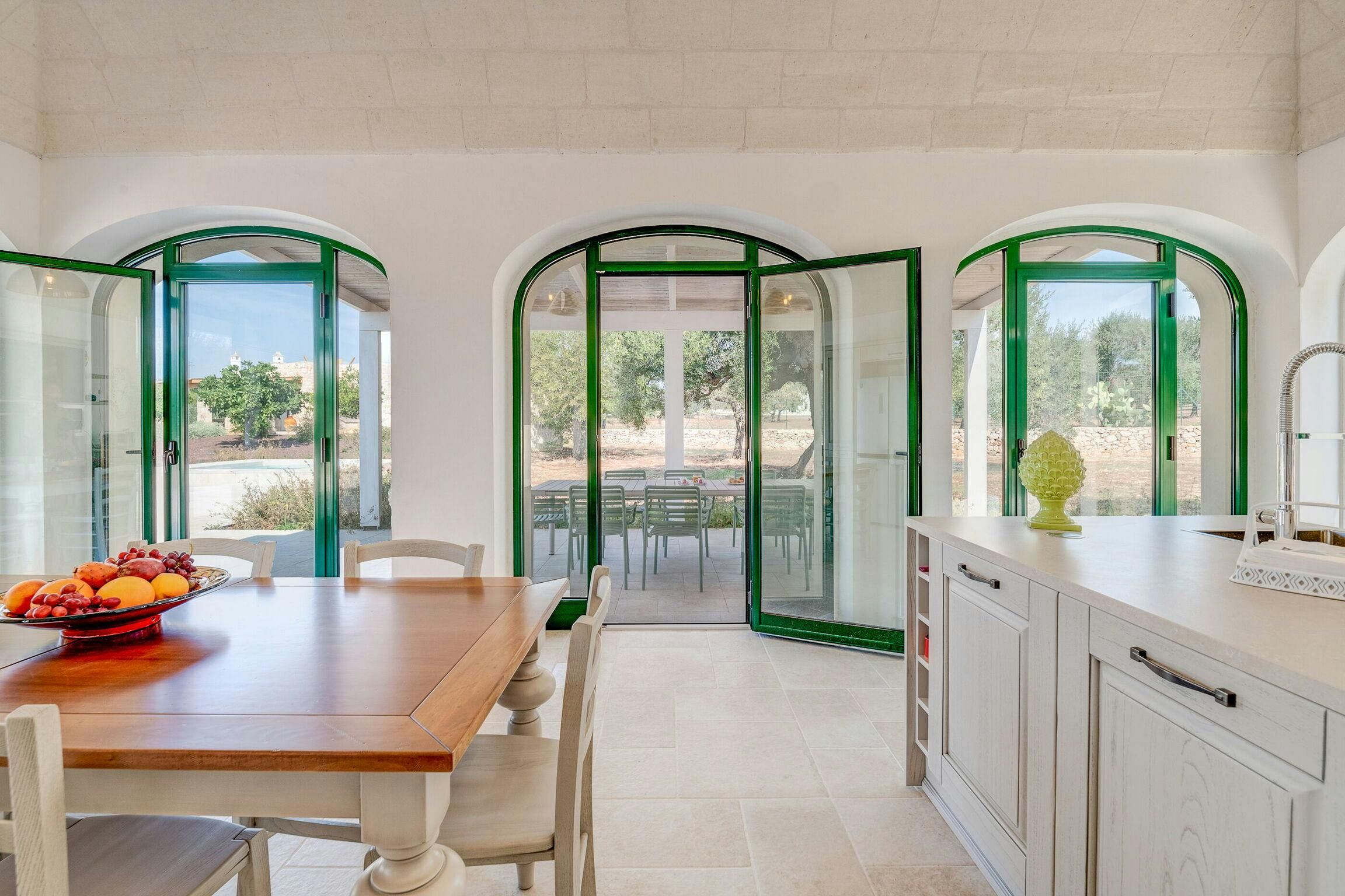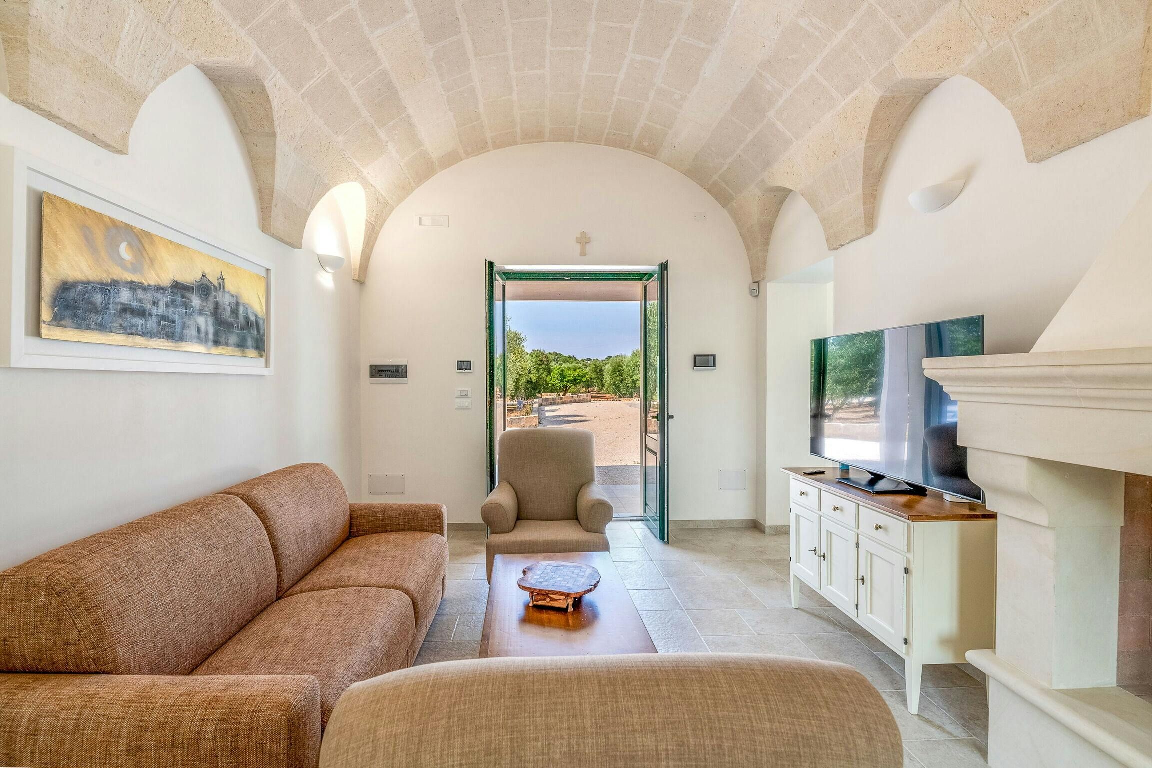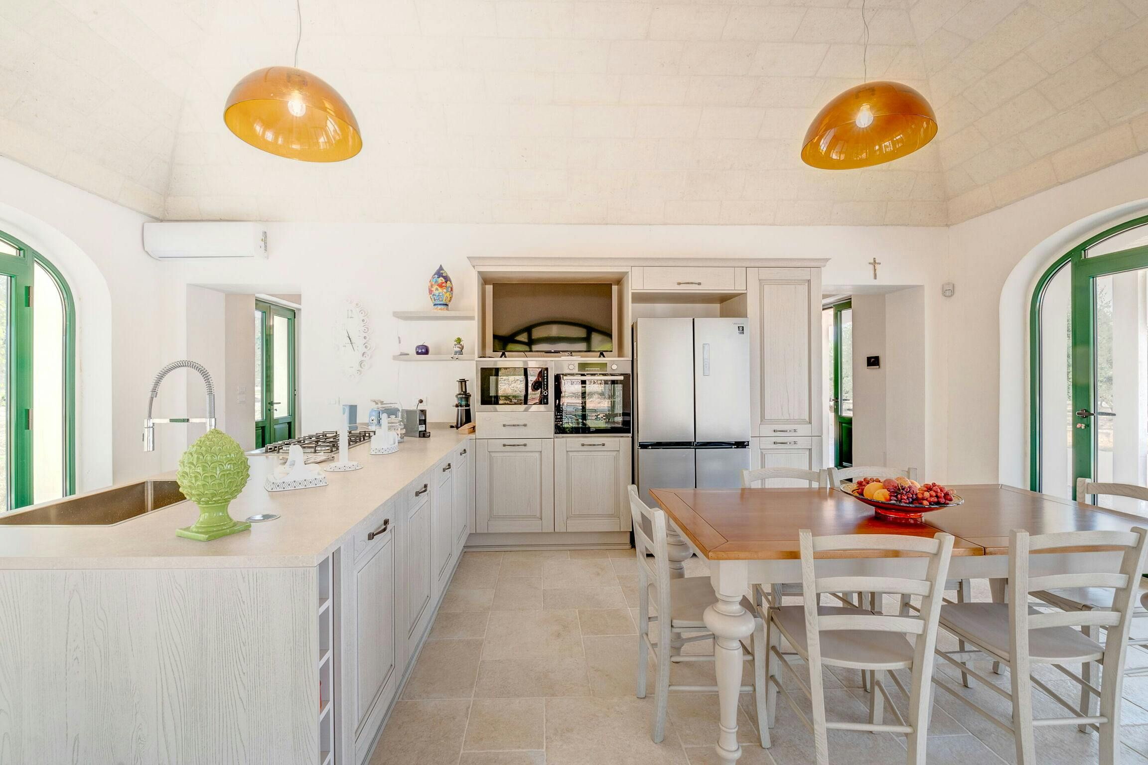 This home is located in the heart of the Itria Valley. Comprising a self-contained contemporary villa and a self-contained historic lamia, it’s a great choice for a group getaway. Outside you’ll find a private pool, Jacuzzi, and alfresco dining terrace to enjoy, while inside boasts a living area and two kitchens. And when it comes to daytrips, you’ll be spoilt for choice with Ostuni, Carovigno, and Cisternino all within a twenty-five minute drive.