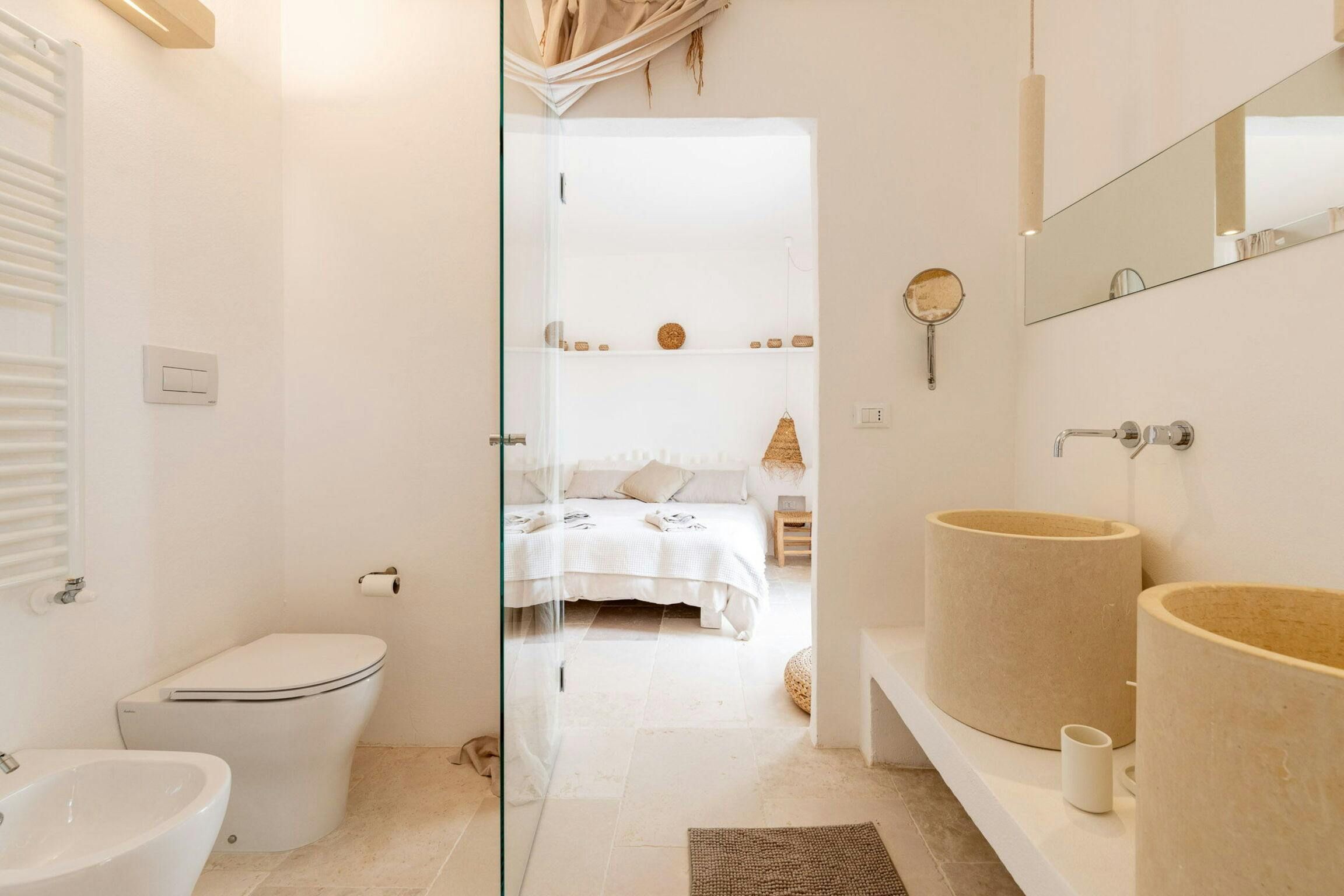 Traditional character meets contemporary comfort. That’s what this idyllic Italian villa offers. Nestled among sun-kissed olive groves, it’s a tranquil place to take it easy for a while. The whitewashed walls mirror the region’s famous white-hued towns, like nearby Ostuni and Cisternino. And the pared-back furnishings and peaceful garden set the scene for relaxation. While away the afternoons swimming in the scenic pool or savouring a long lunch on the terrace. Or hop in the car and head to the coast, just twenty minutes away.