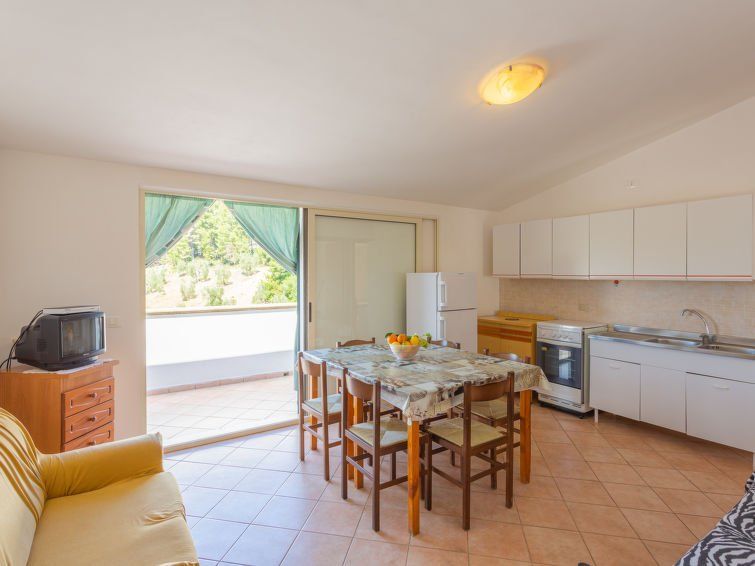 4-room apartment 55 m2 on 2nd floor. Bright, simple and practical furnishings: 2 rooms, each room with 1 double bed. Exit to the balcony. 1 room with 2 beds. Exit to the balcony. Kitchen-/living room (oven, 4 gas rings, freezer) with dining table, satellite TV. Exit to the balcony.