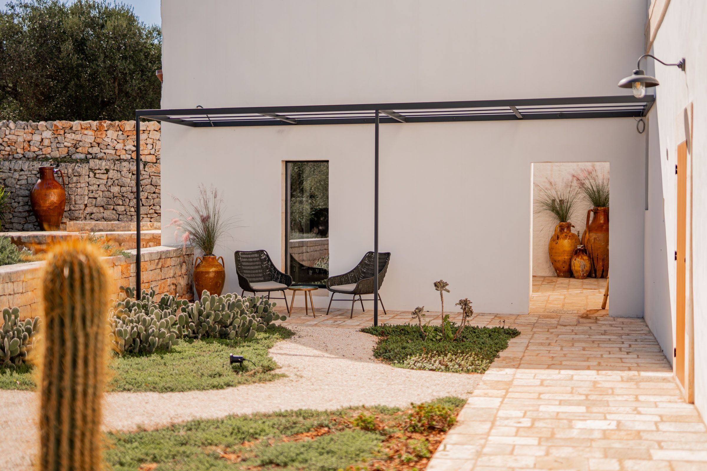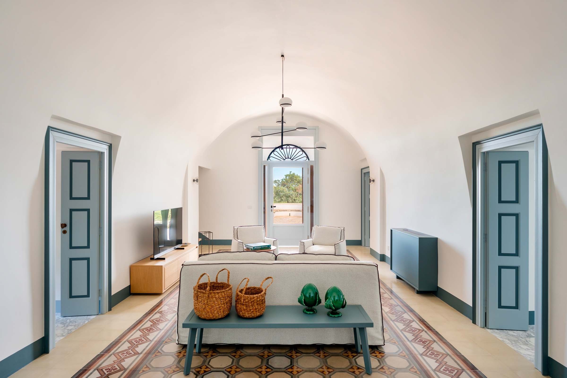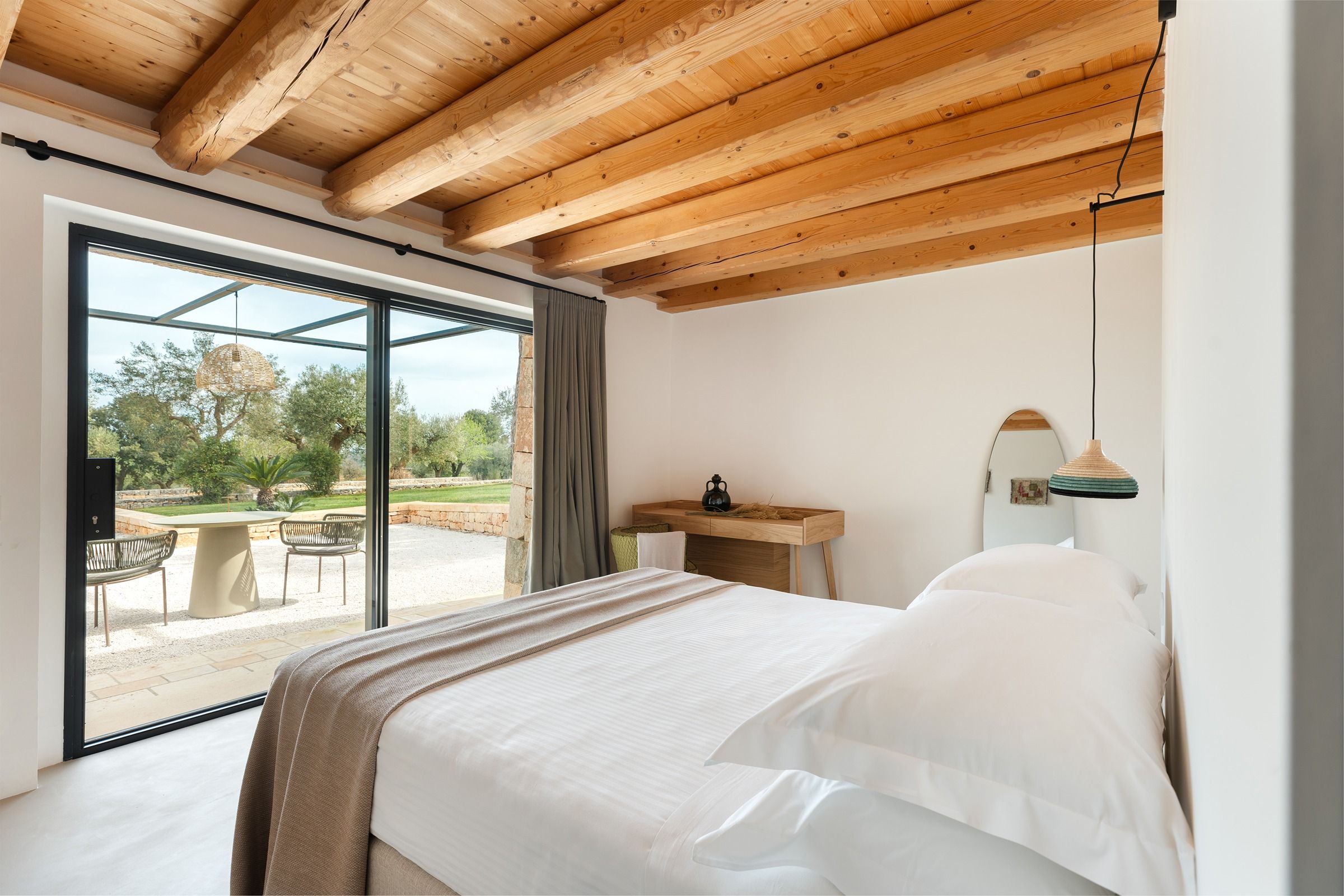 Overlooking Puglia’s beautiful countryside, this home is a historic jewel with an abundance of style. From the elegant rooms to the serene garden, every detail of this setting inspires a wonderful state of relaxation. There’s a private pool, a fitness area with a gym and a magical outdoor terrace for alfresco dining. Alongside the main house, you’ll find three garden suites offering privacy and serenity for six guests. There is also a concierge service with a dedicated guest angel who is on hand to provide local recommendations and support throughout your stay. You will need a car to get around here, but it’s just a short drive to the nearest amenities and a little further on to the coast.