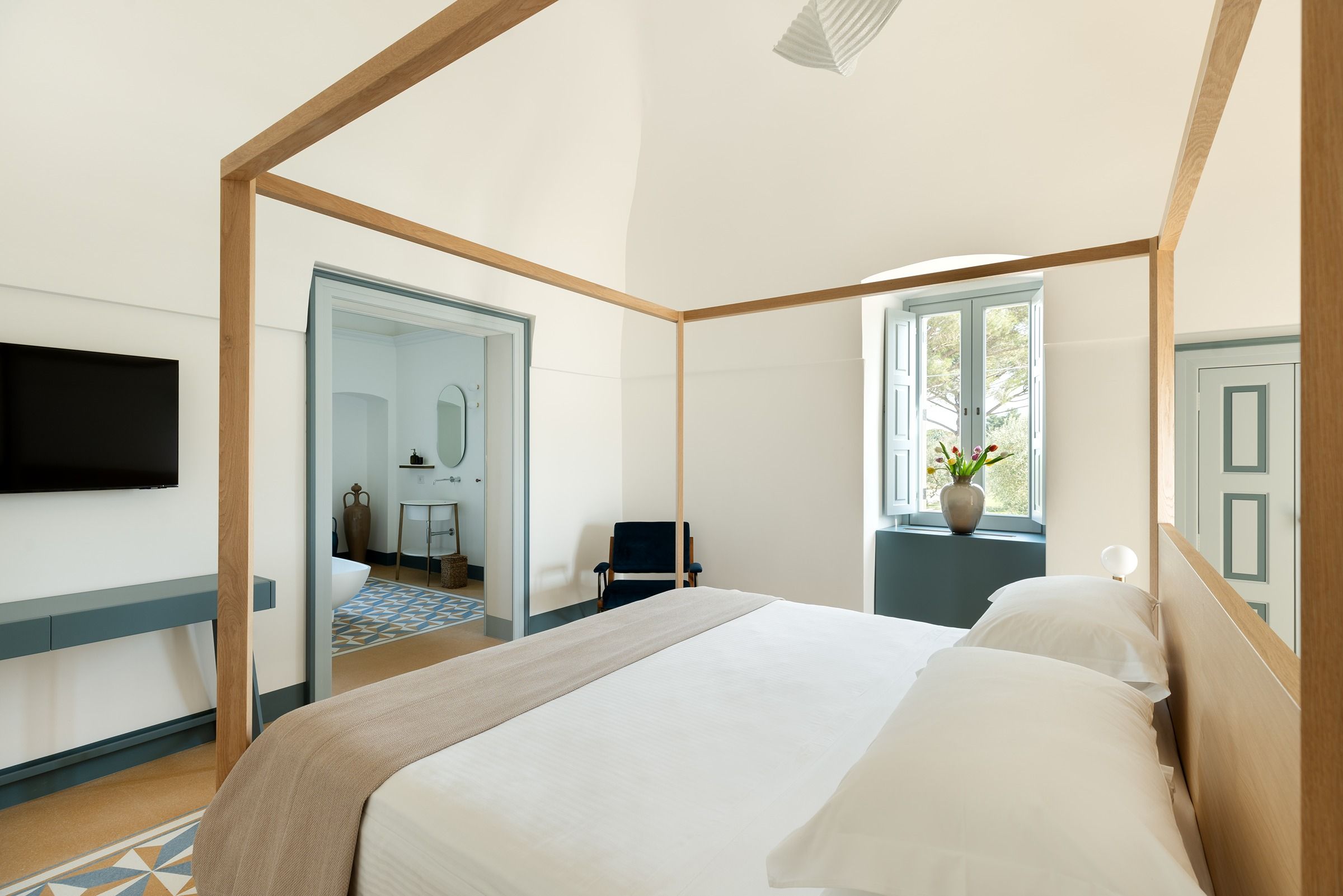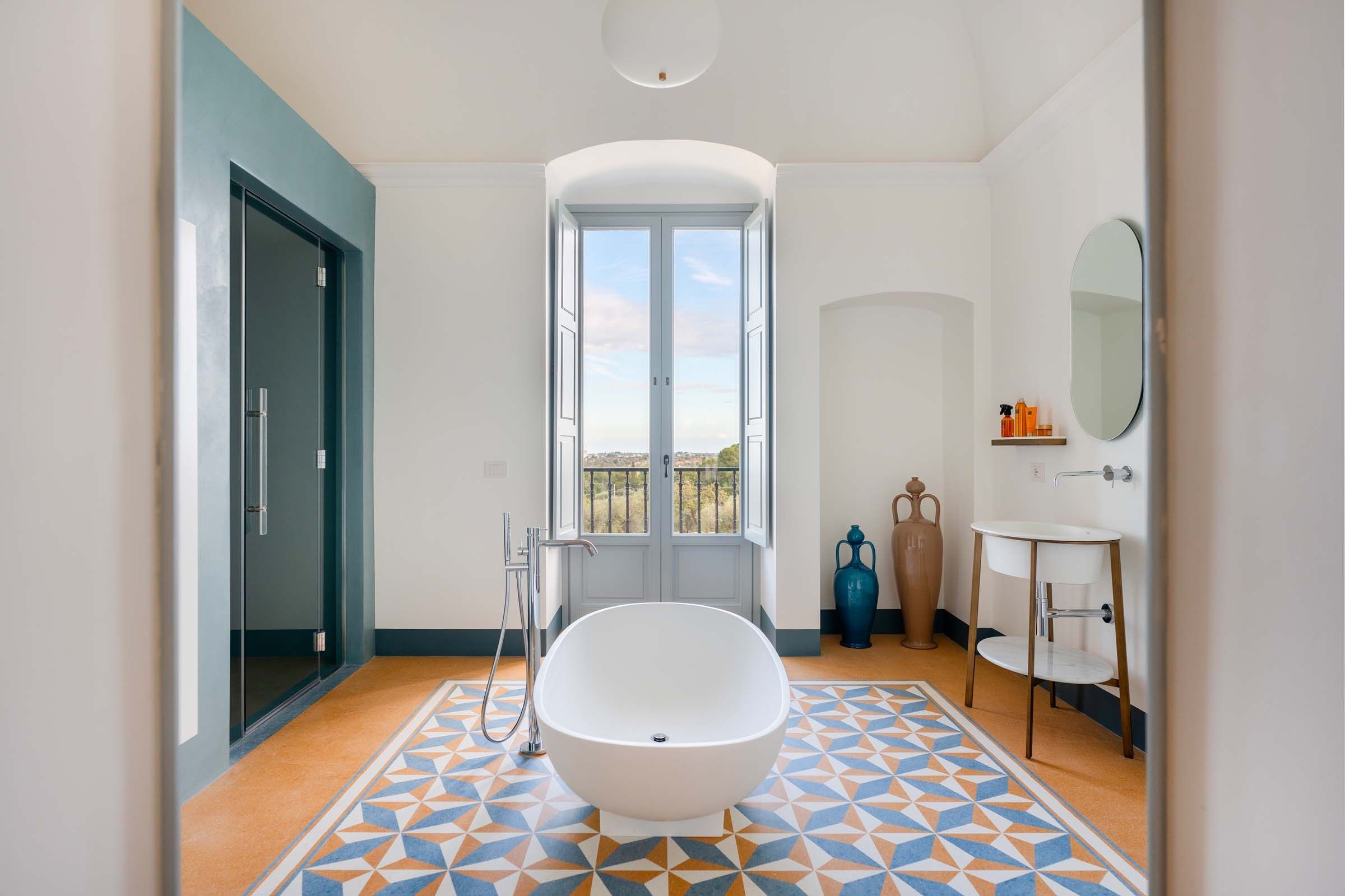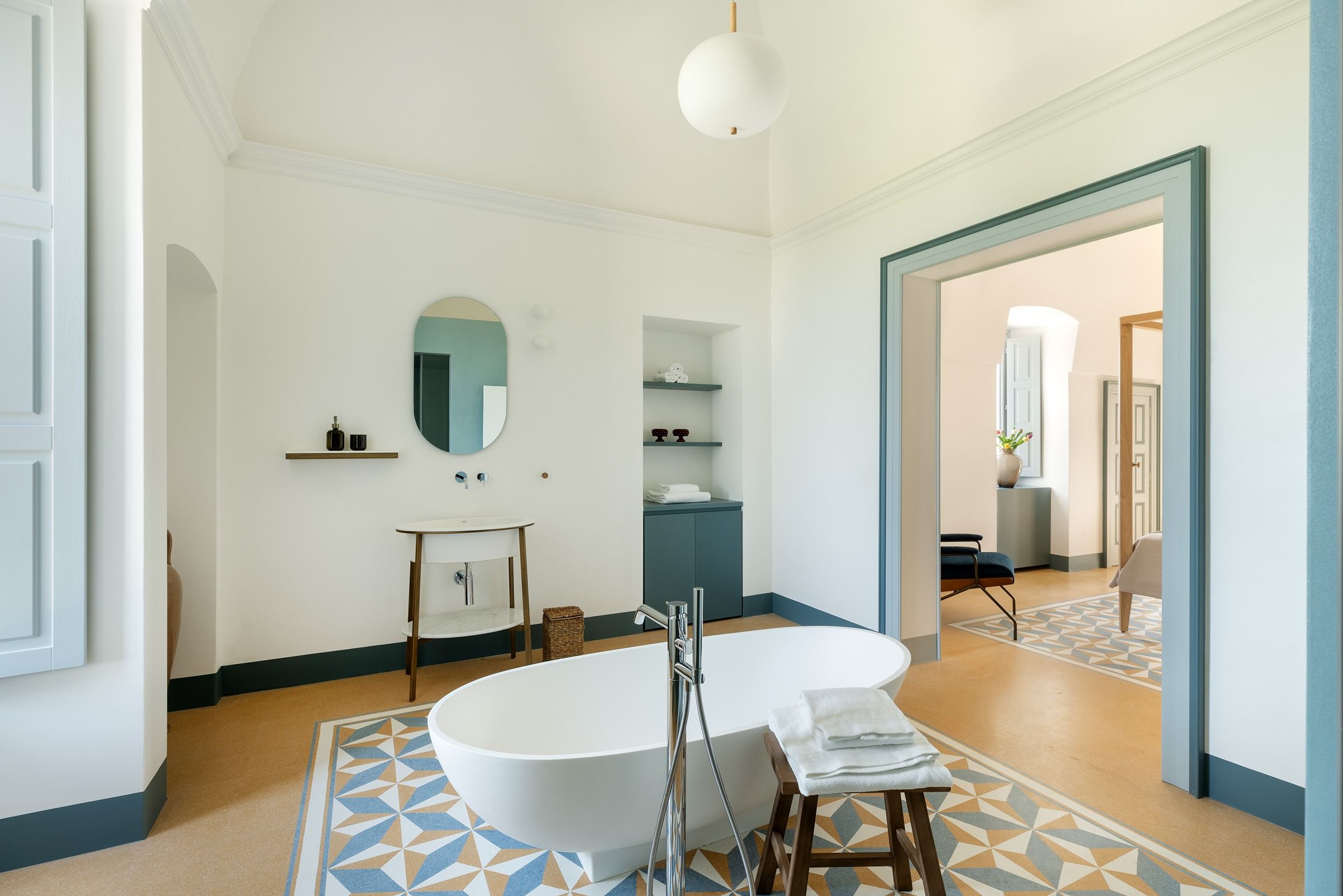 Overlooking Puglia’s beautiful countryside, this home is a historic jewel with an abundance of style. From the elegant rooms to the serene garden, every detail of this setting inspires a wonderful state of relaxation. There’s a private pool, a fitness area with a gym and a magical outdoor terrace for alfresco dining. Alongside the main house, you’ll find three garden suites offering privacy and serenity for six guests. There is also a concierge service with a dedicated guest angel who is on hand to provide local recommendations and support throughout your stay. You will need a car to get around here, but it’s just a short drive to the nearest amenities and a little further on to the coast.