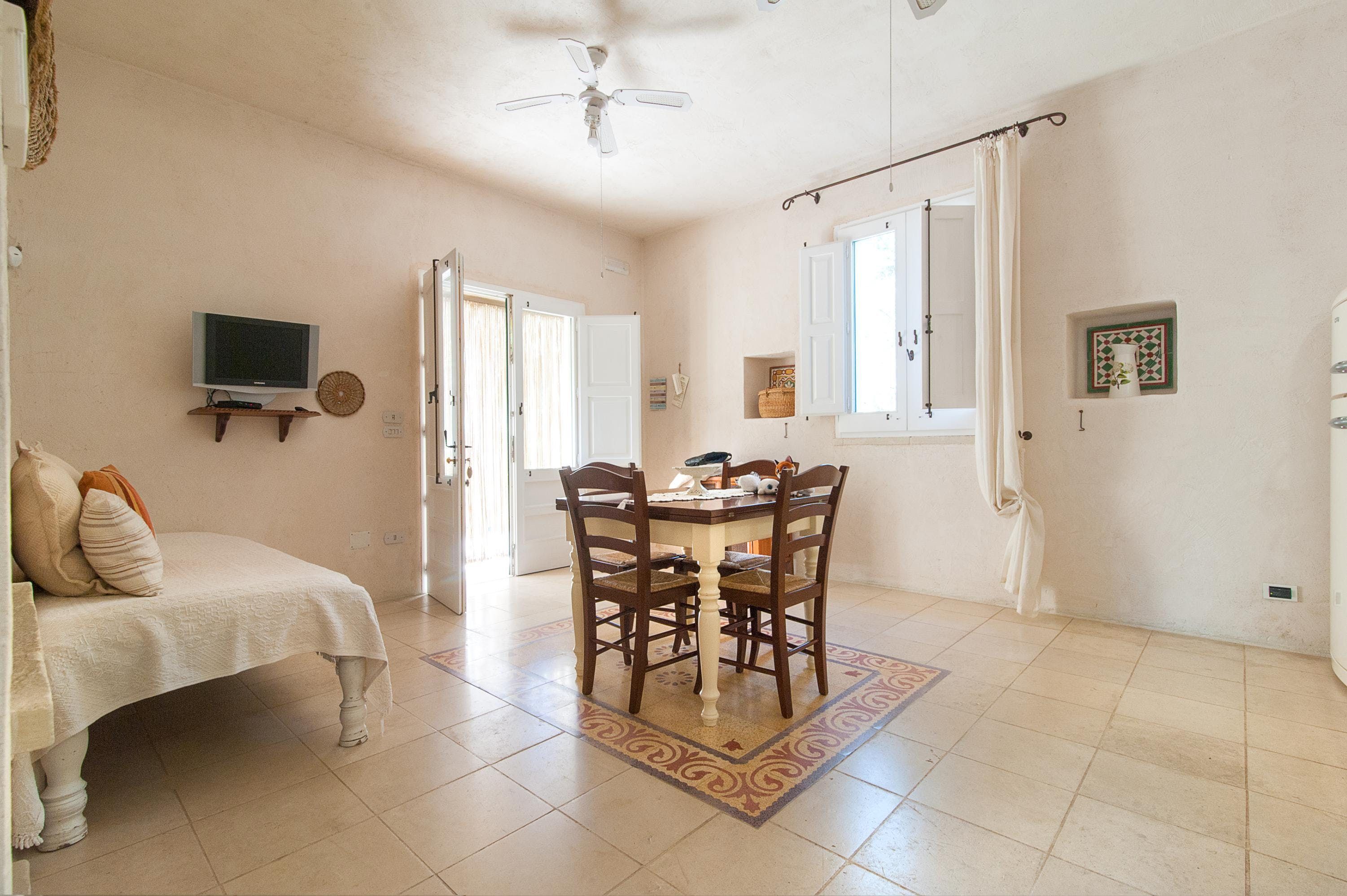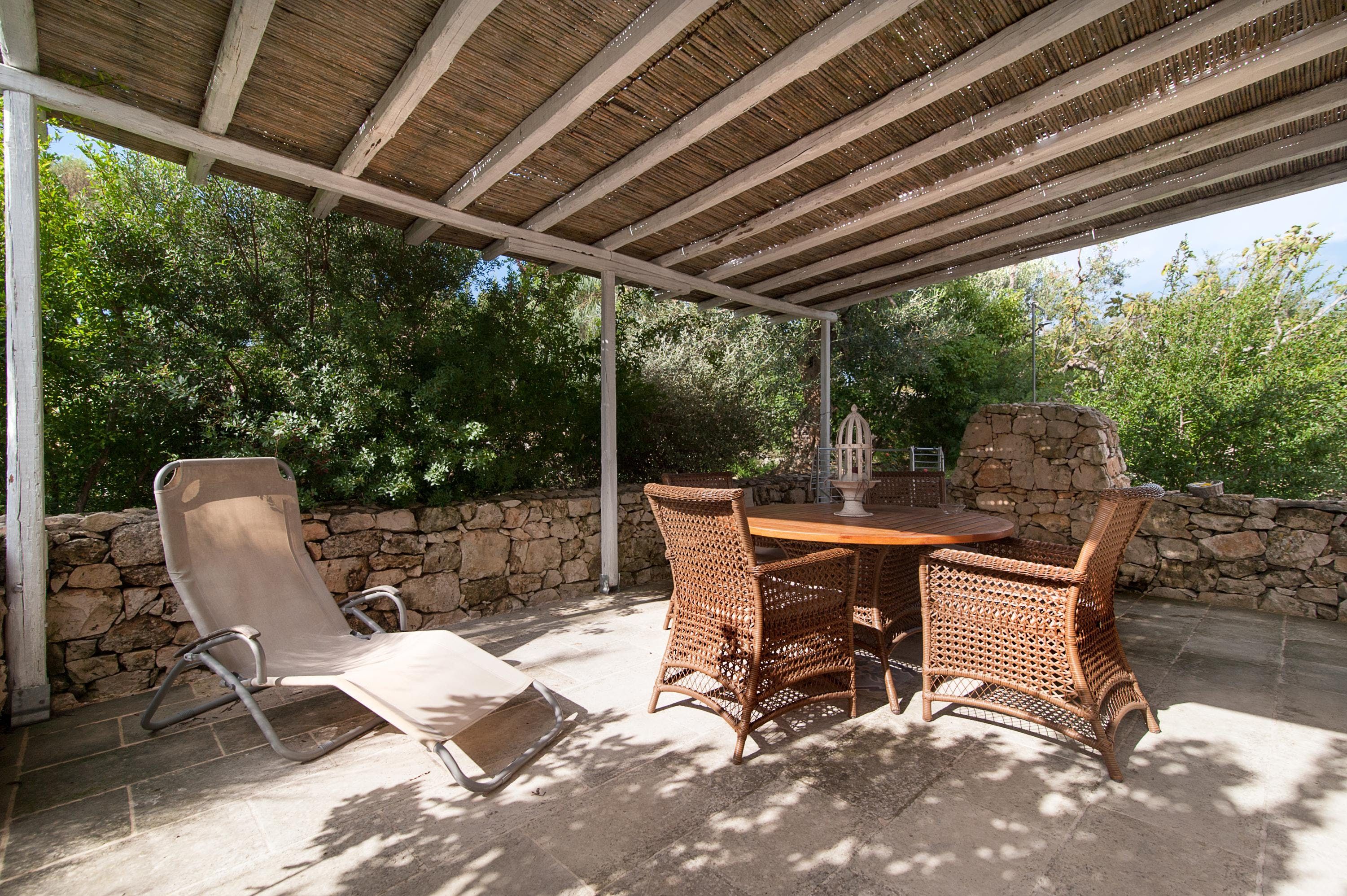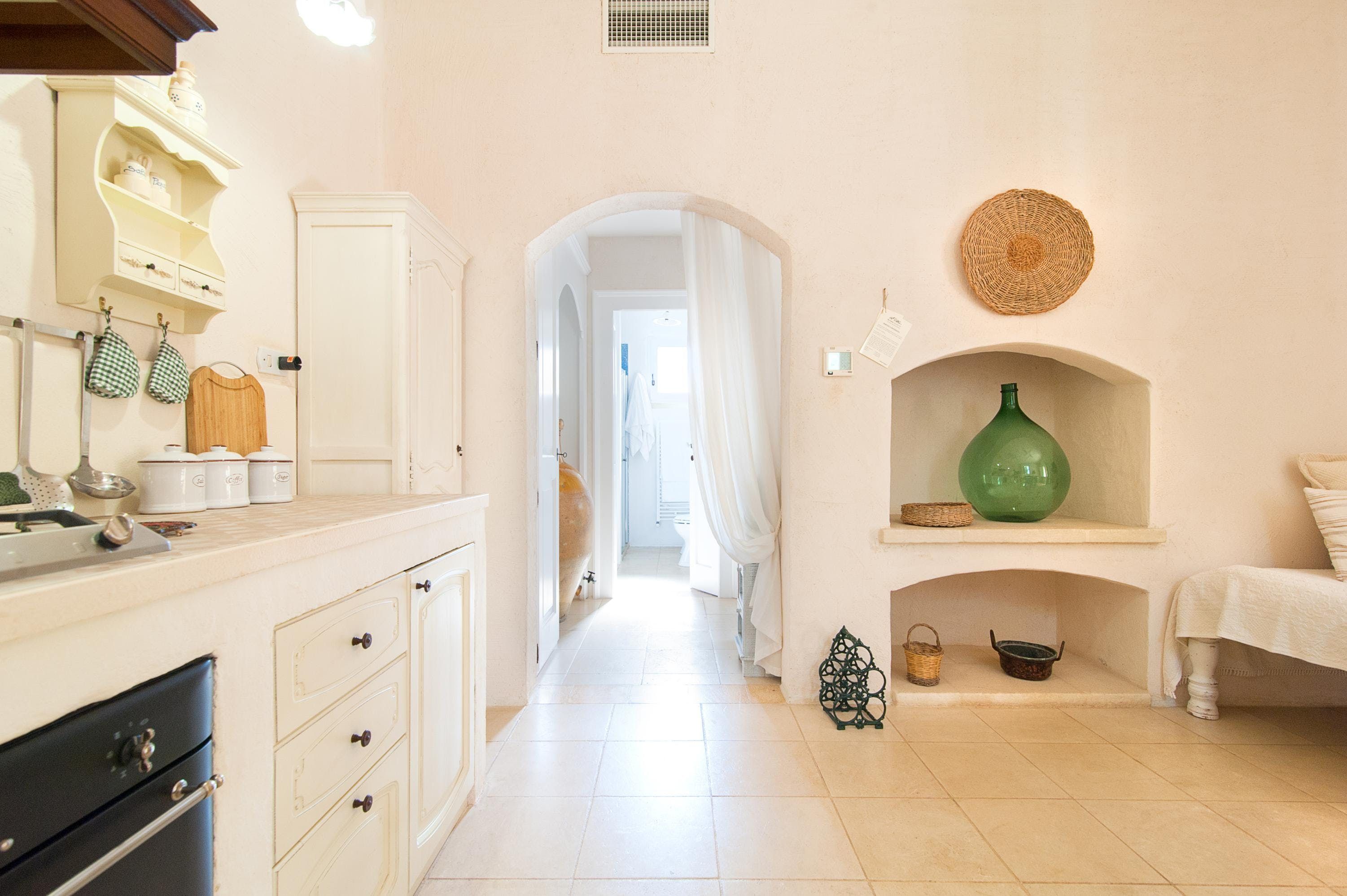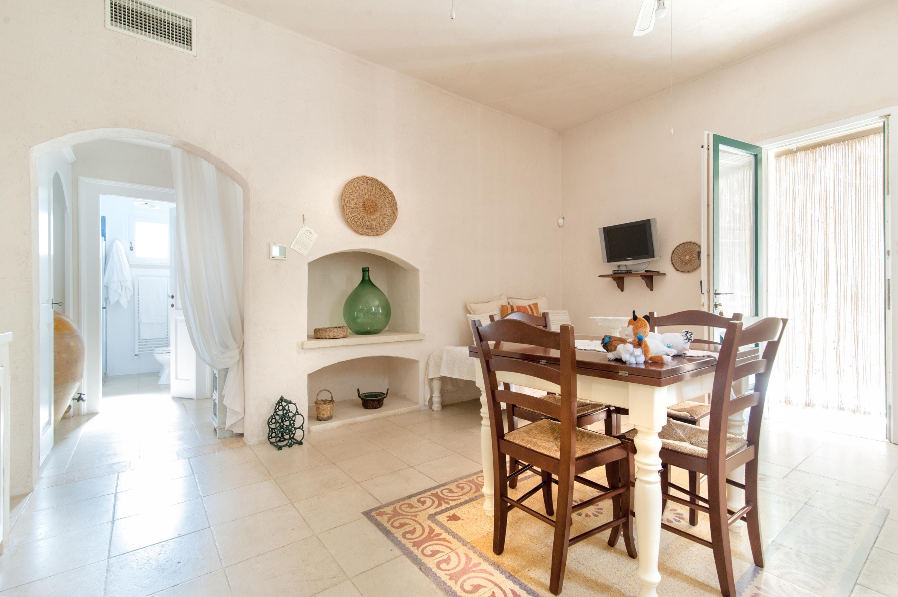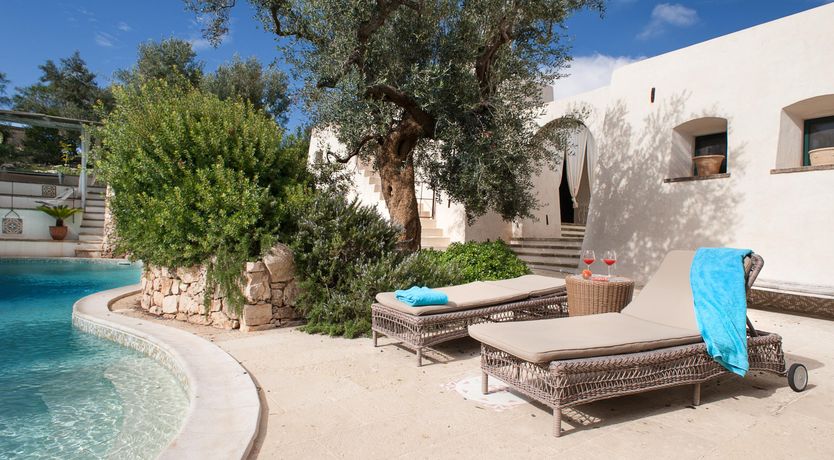 Set in the countryside, just a few kilometres from the coast, this welcoming apartment offers a warm Apulian welcome to all who make their temporary home here. Spend your days relishing the communal outdoor spaces, lounging beneath cloudless skies, tucking into long alfresco lunches and swimming in the elegant free-form pool – there's plenty of room for everyone to enjoy.