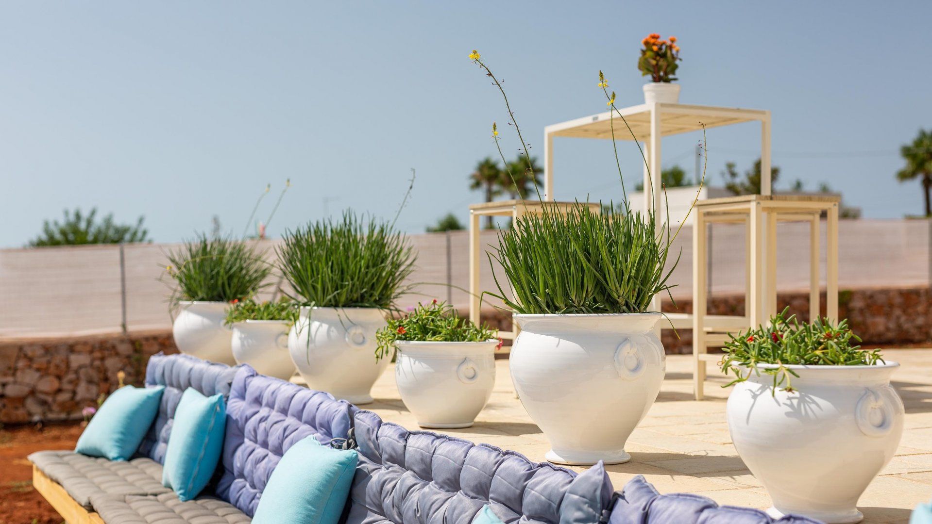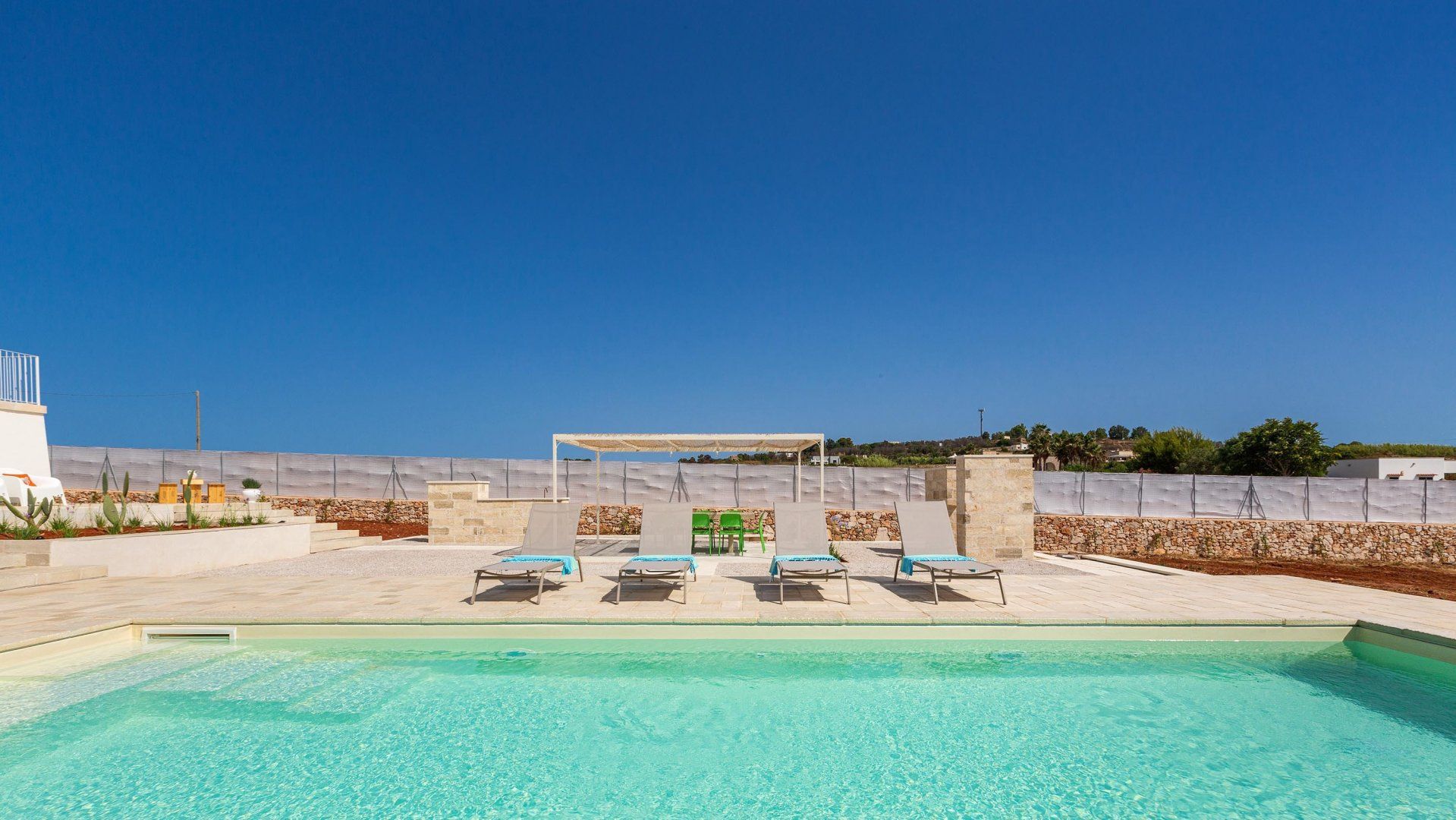 The Mediterranean-style, private garden features a lawn, succulents and herbs, as well as numerous elegantly furnished areas where you can unwind and dine alfresco – there's a great barbecue area in typical local stone. Take a dip in the gorgeous swimming pool, then dry off on a sun lounger.
