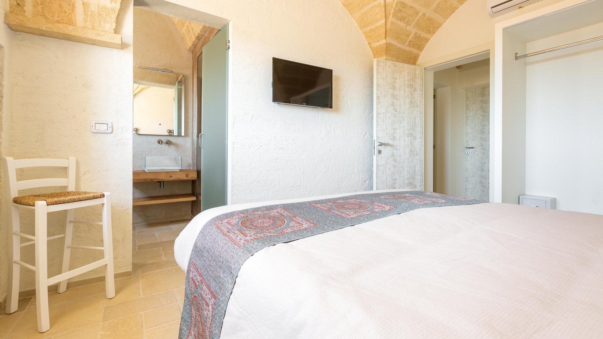 Inside vaulted ceilings and stone arches imbue character. Enjoy some pasticciotto, a custard or ricotta-filled pastry, in the dining room for breakfast before heading out to explore the area. It's around a fifteen-minute stroll or two-minute drive to the bone-white sands and crystal clear waters of Spiaggia di Pescoluse – total bliss.