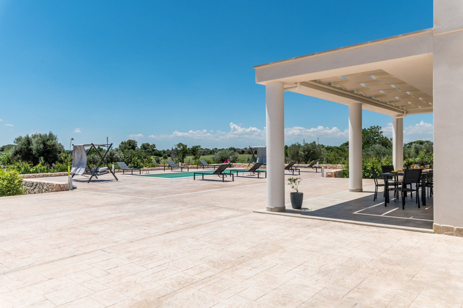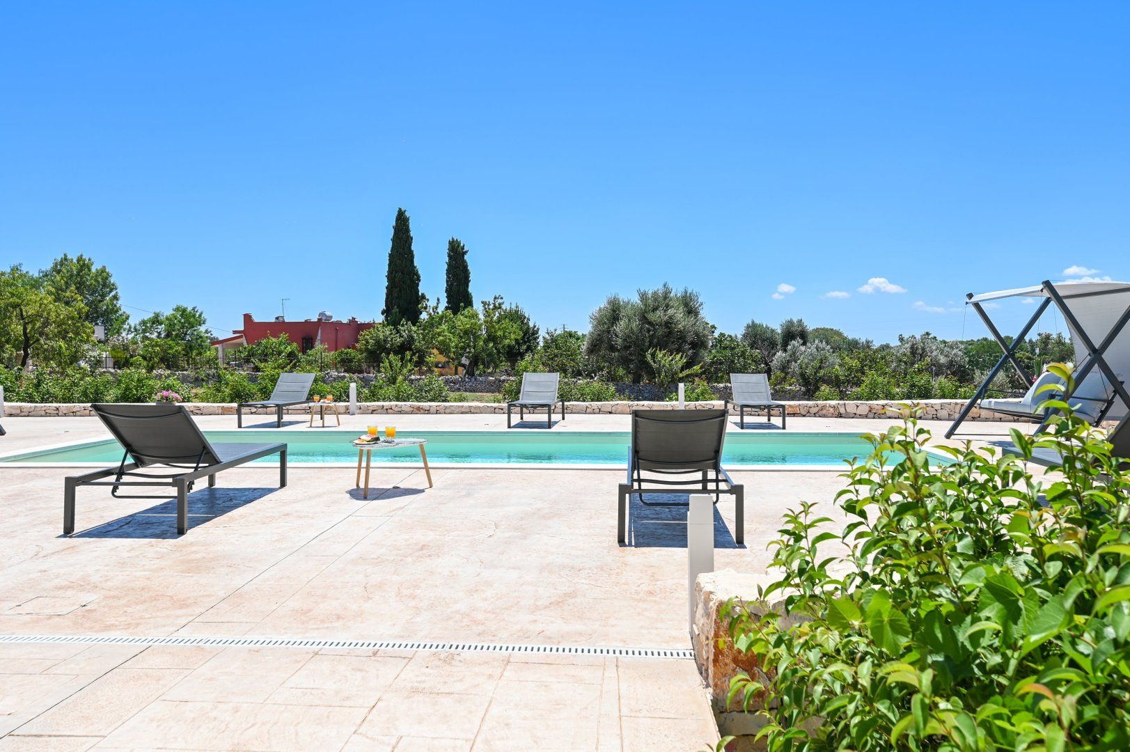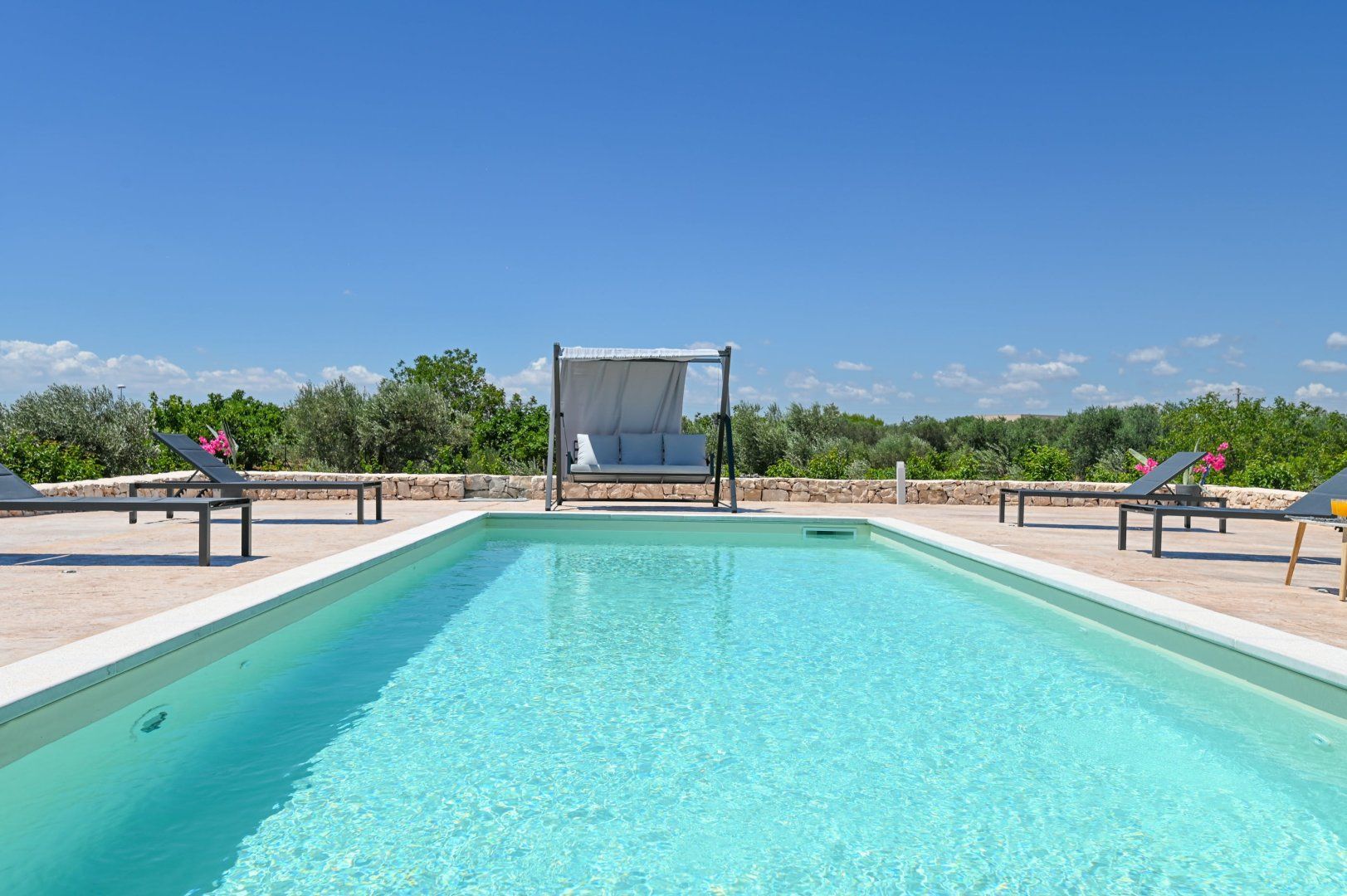 This villa can be found in San Vito dei Normanni, a village in Brindisi. It’s 10 kilometres from Ostuni, Italy’s White City, as well as from Torre Guaceto Reserve, so there’s plenty to explore nearby – though you’ll definitely need to hire a car. We like the simple, clean lines of the villa, but its real appeal is the outside space. The fenced garden has swing seats, a shaded veranda and, best of all, a large private swimming pool. There are only two bathrooms for eight guests, but the outdoor shower comes in handy for rinsing off after trips to the beach.