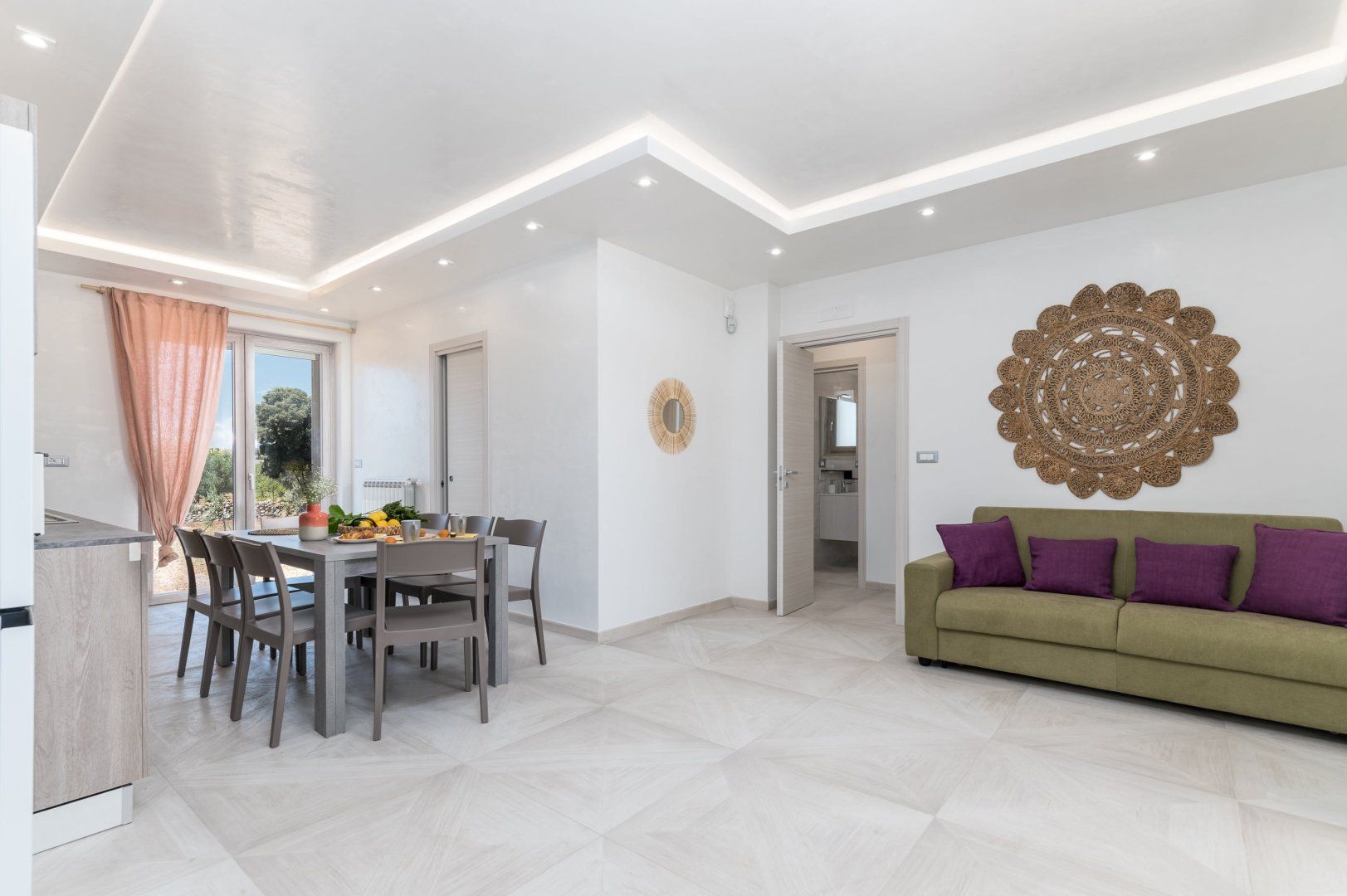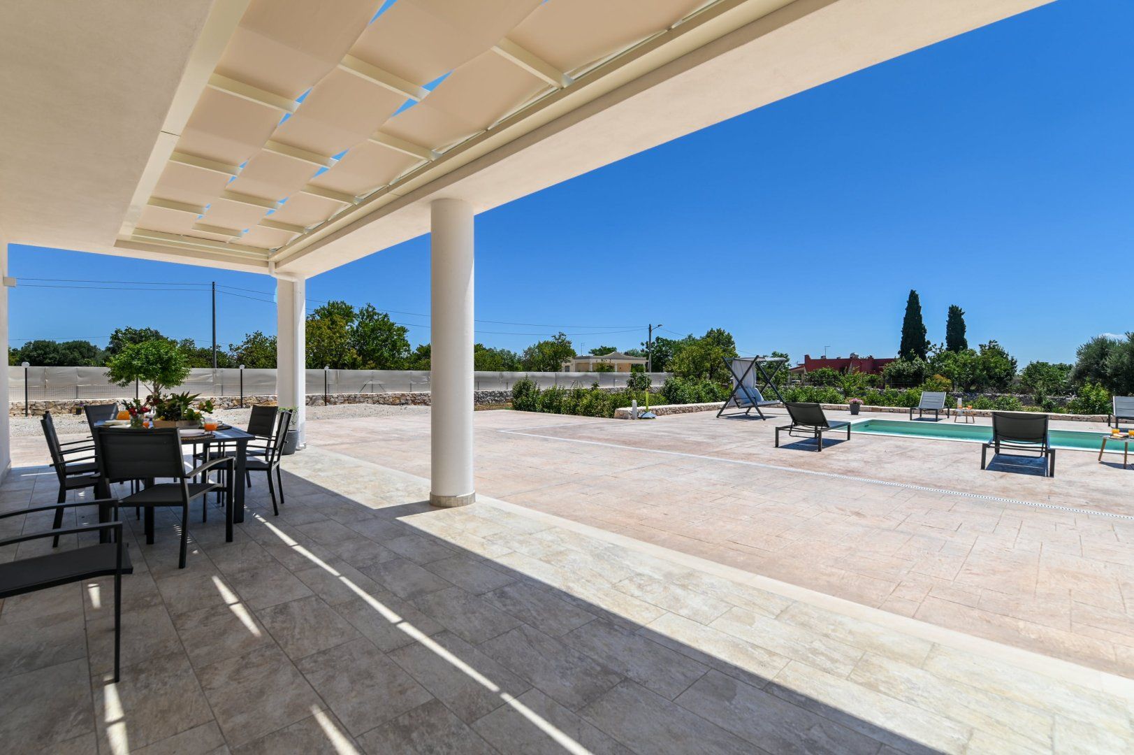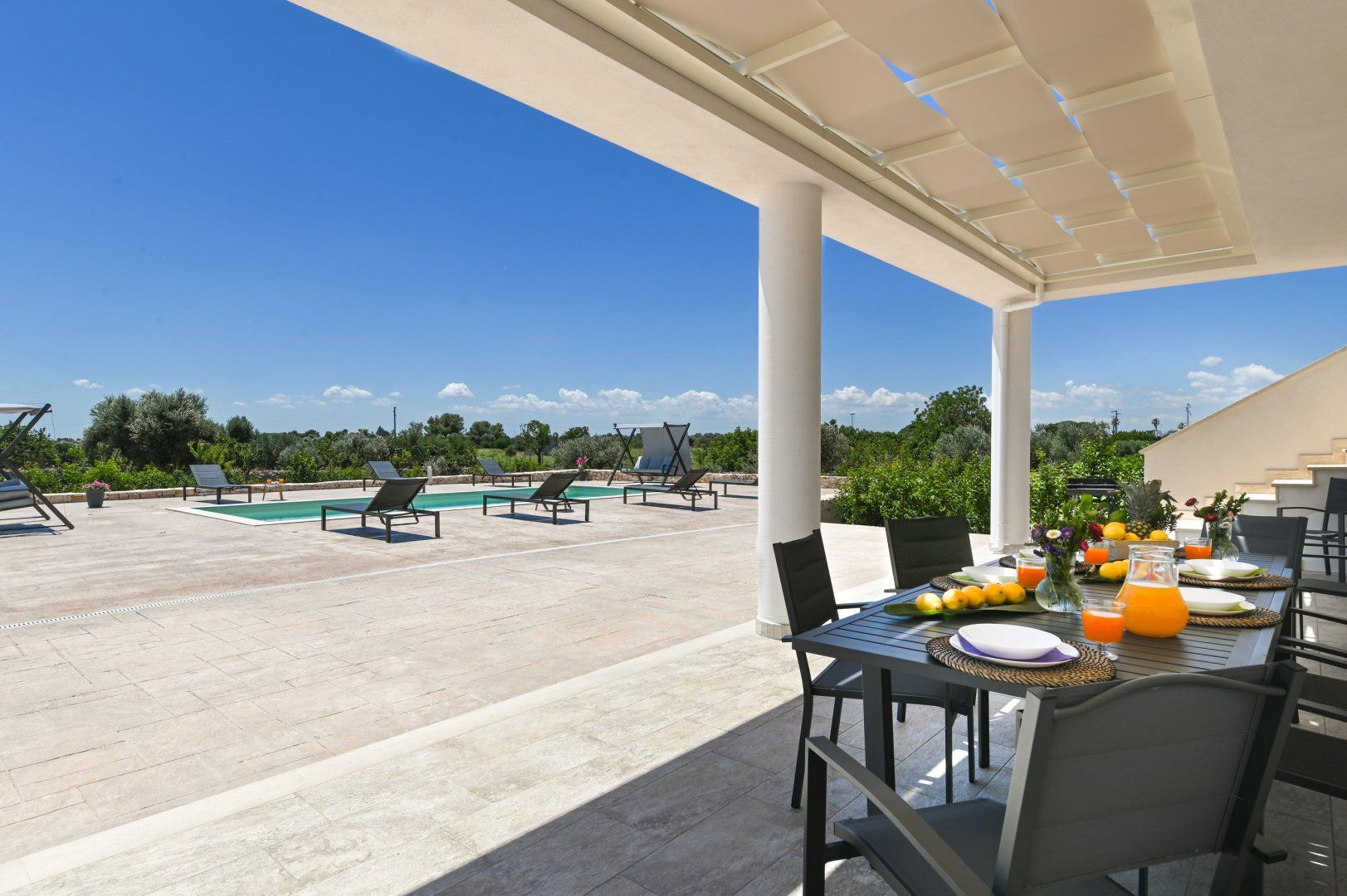 This villa can be found in San Vito dei Normanni, a village in Brindisi. It’s 10 kilometres from Ostuni, Italy’s White City, as well as from Torre Guaceto Reserve, so there’s plenty to explore nearby – though you’ll definitely need to hire a car. We like the simple, clean lines of the villa, but its real appeal is the outside space. The fenced garden has swing seats, a shaded veranda and, best of all, a large private swimming pool. There are only two bathrooms for eight guests, but the outdoor shower comes in handy for rinsing off after trips to the beach.
