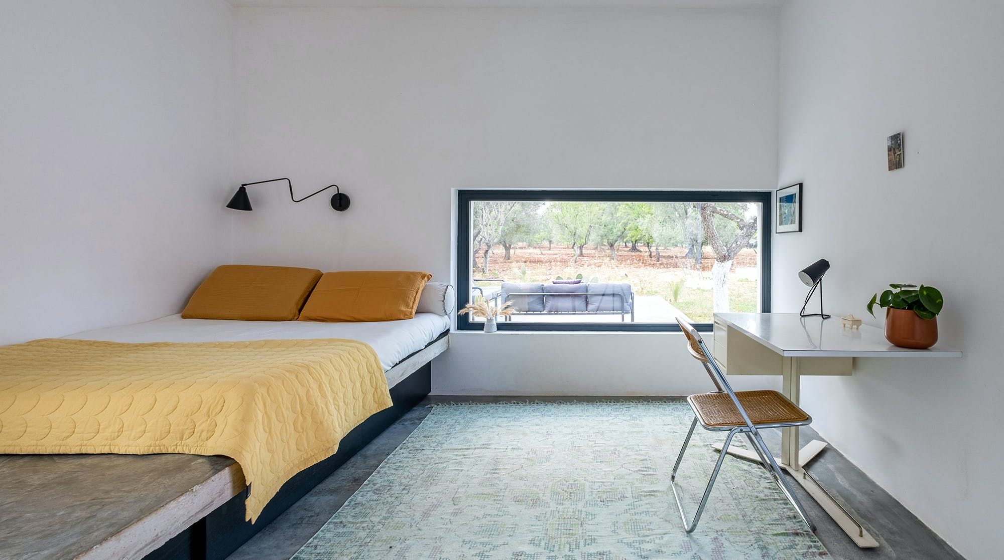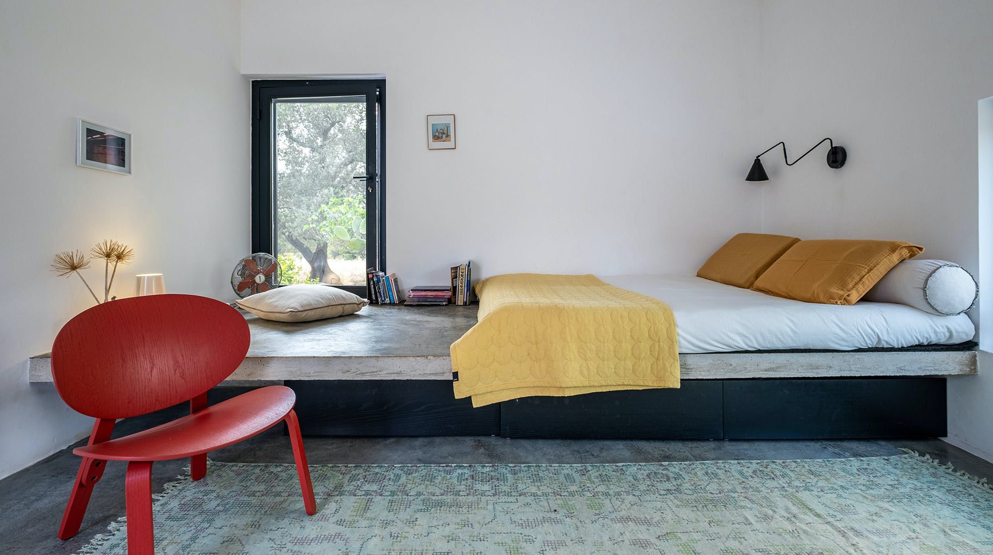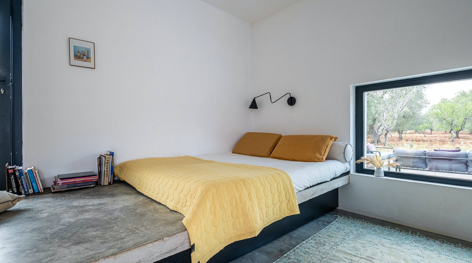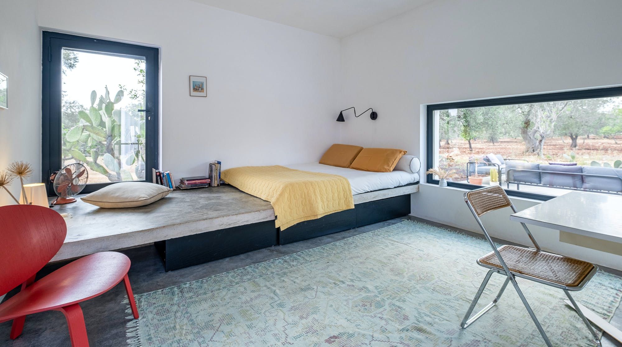 The only thing you’ll find inside is the bedroom and bathroom. It’s a world of sleek concrete in here, with a desk should you fancy a spot of writing (there’s no Wifi, it’s time to take it easy). There’s a small sofa should the weather take a turn, and it’s set by the picture-frame window so you can still enjoy a glimpse of the rust-red land. But this place is designed for living outdoors, under the warmth of the southern Italian sun.