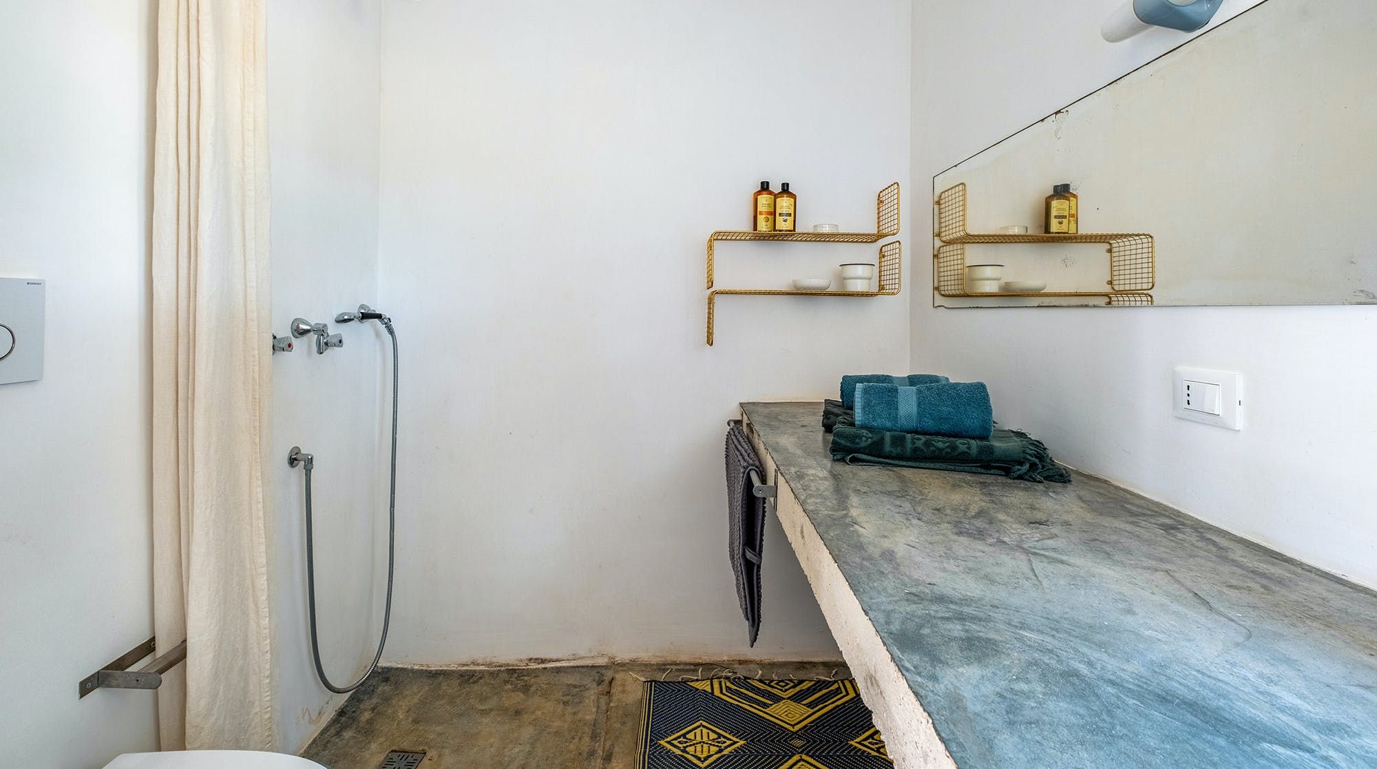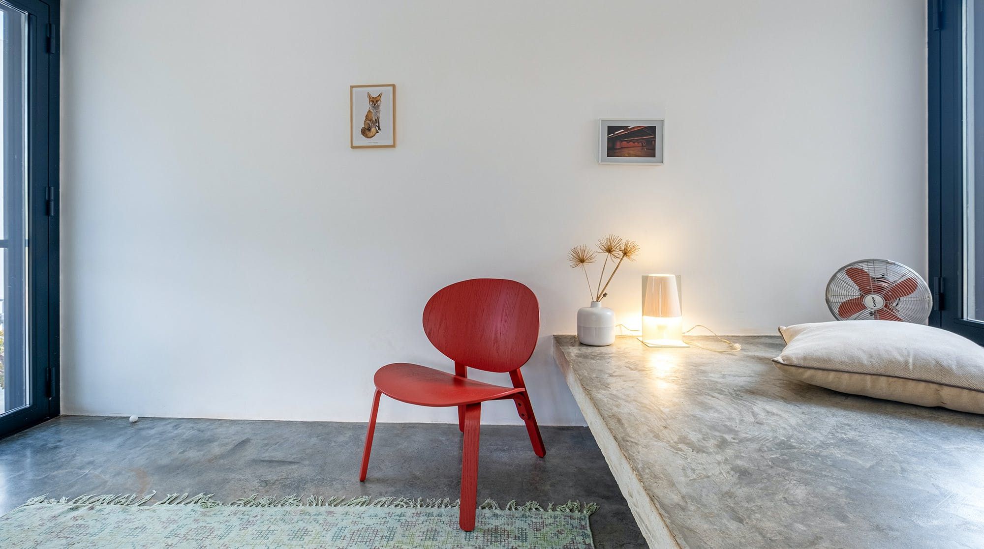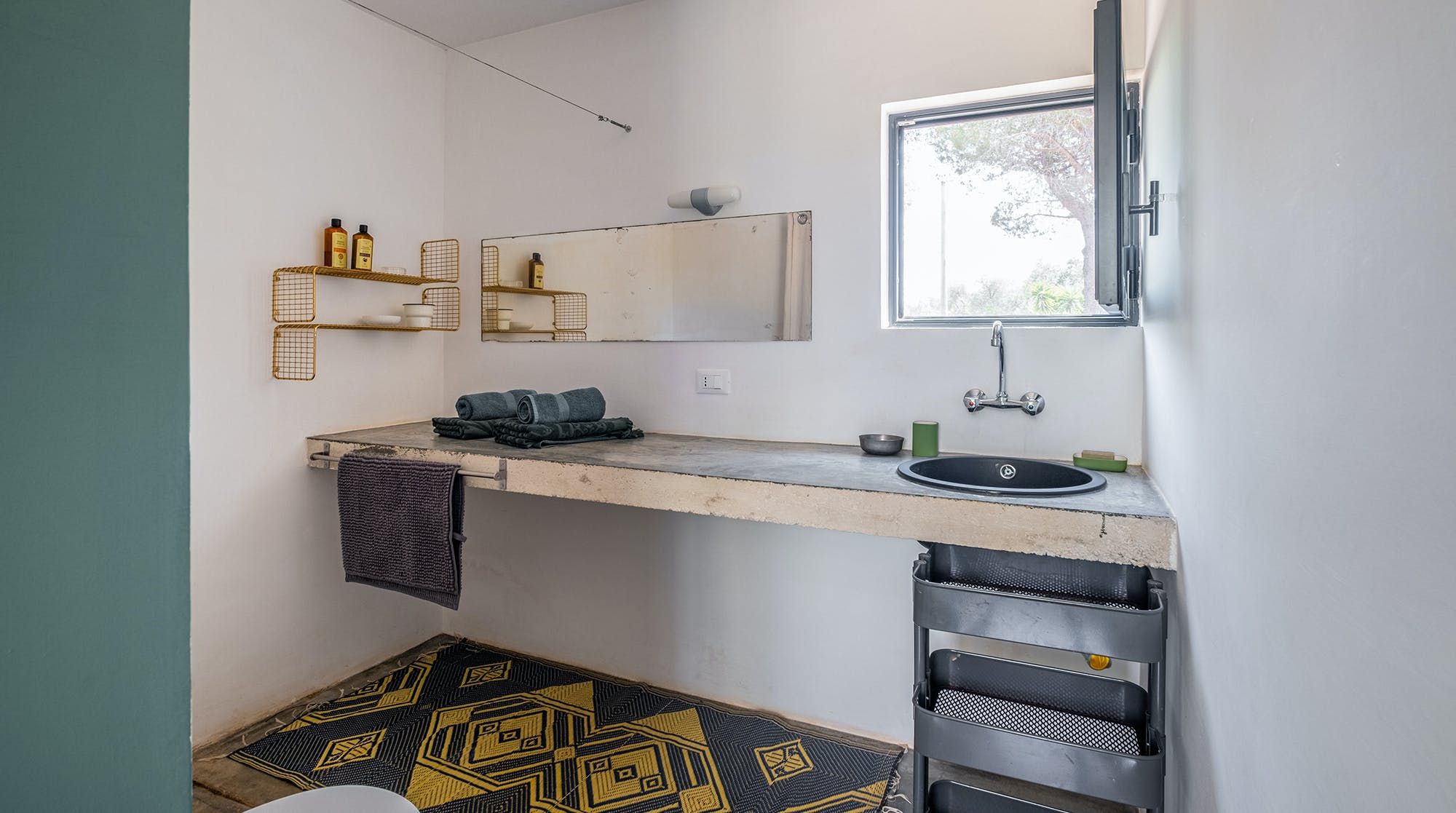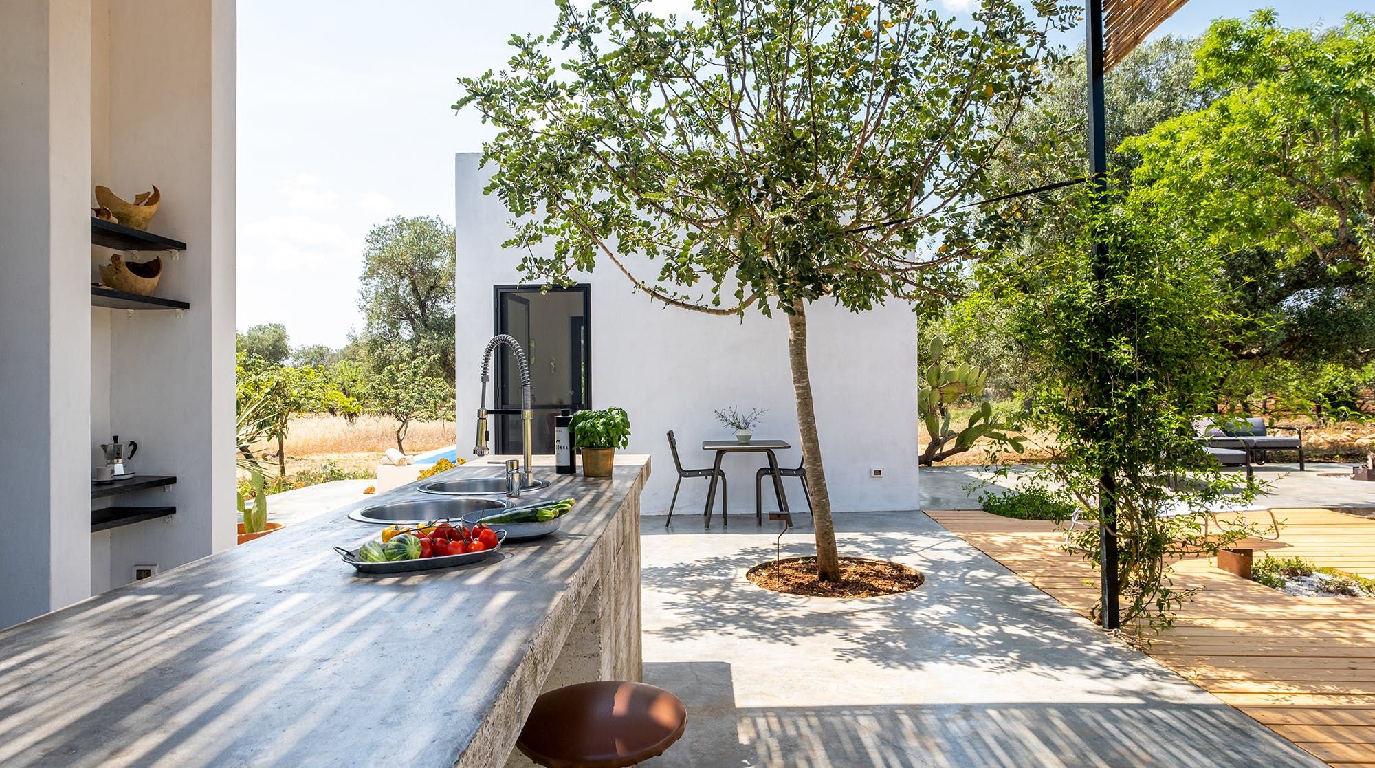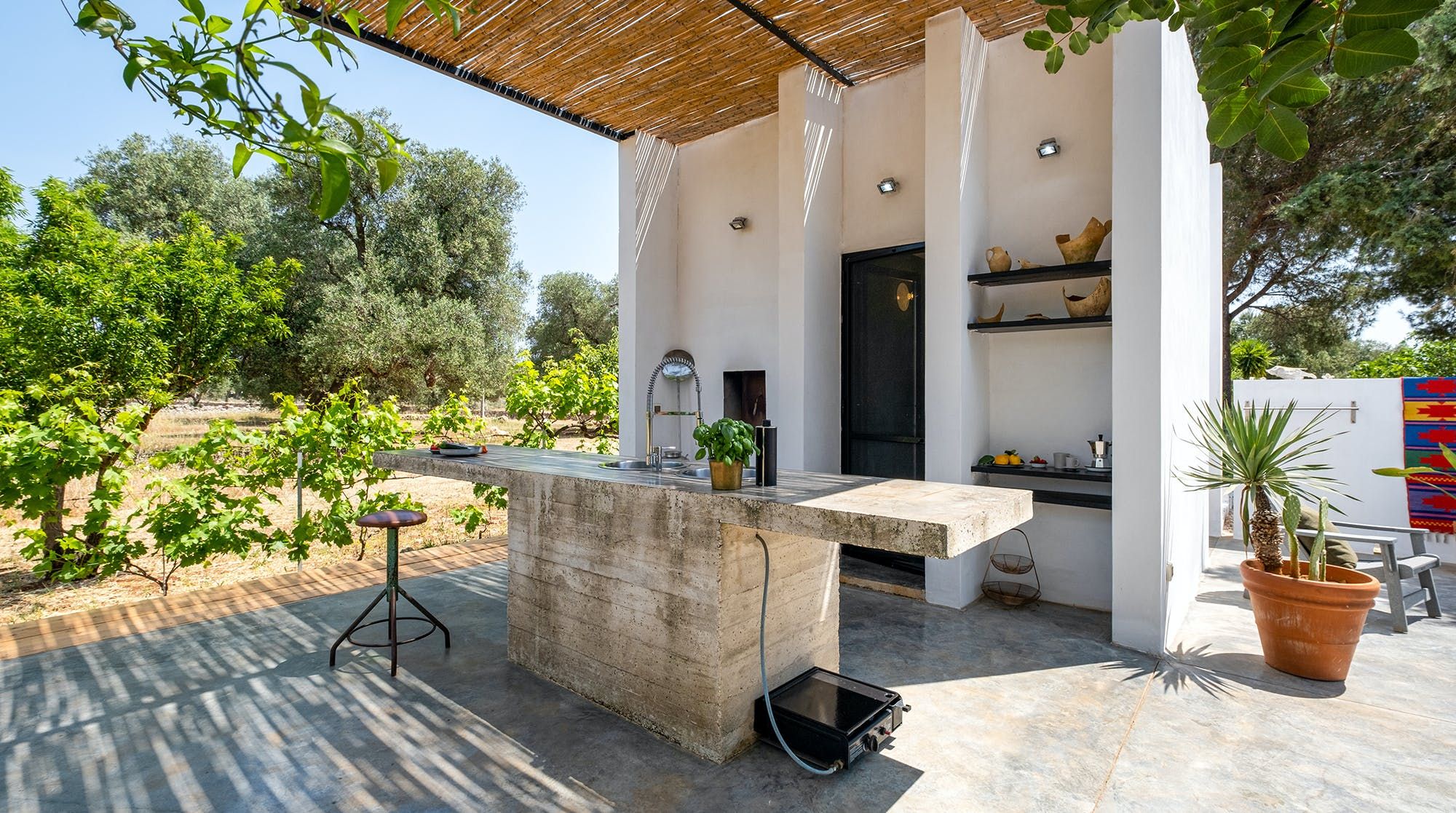 The only thing you’ll find inside is the bedroom and bathroom. It’s a world of sleek concrete in here, with a desk should you fancy a spot of writing (there’s no Wifi, it’s time to take it easy). There’s a small sofa should the weather take a turn, and it’s set by the picture-frame window so you can still enjoy a glimpse of the rust-red land. But this place is designed for living outdoors, under the warmth of the southern Italian sun.