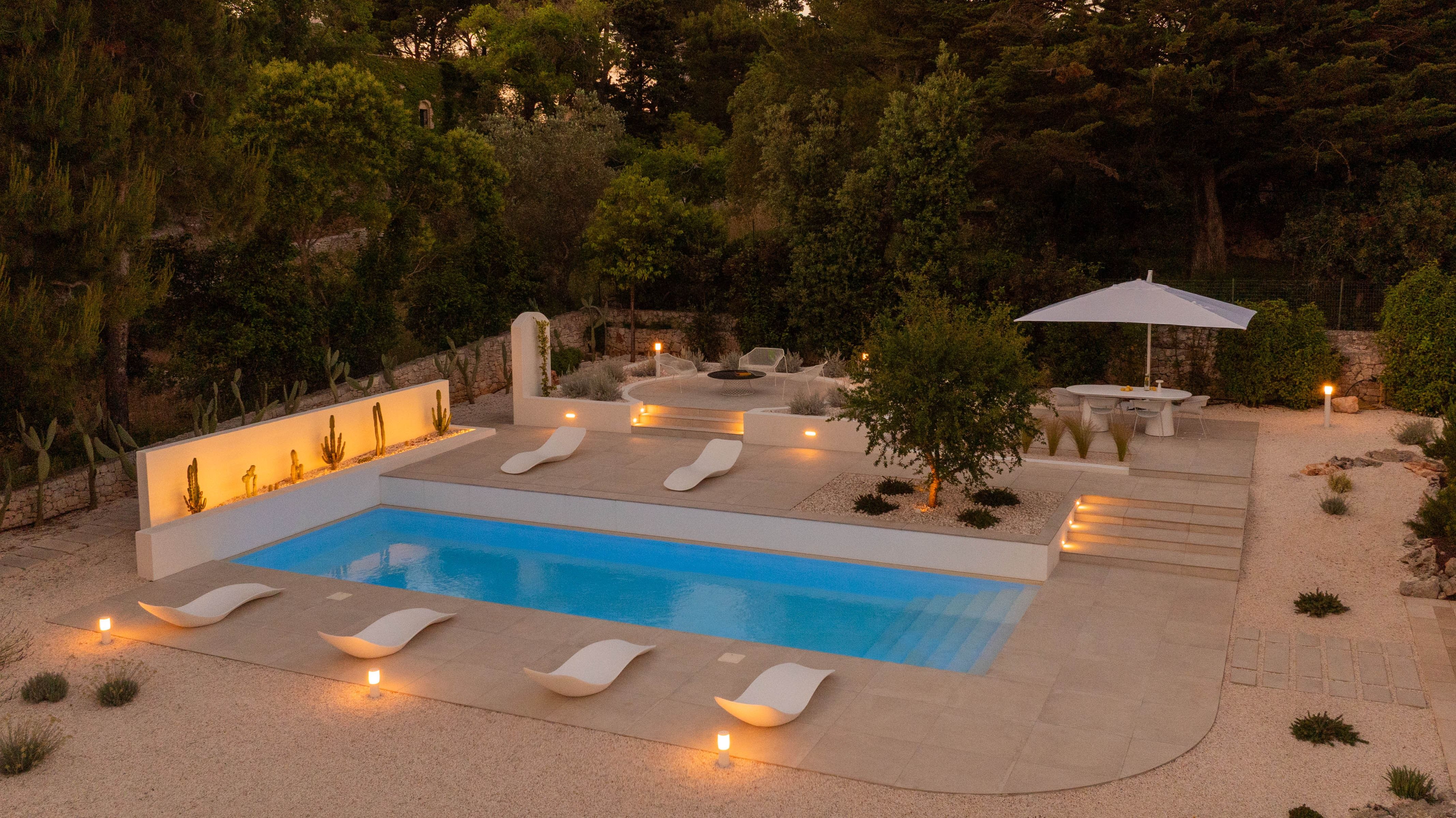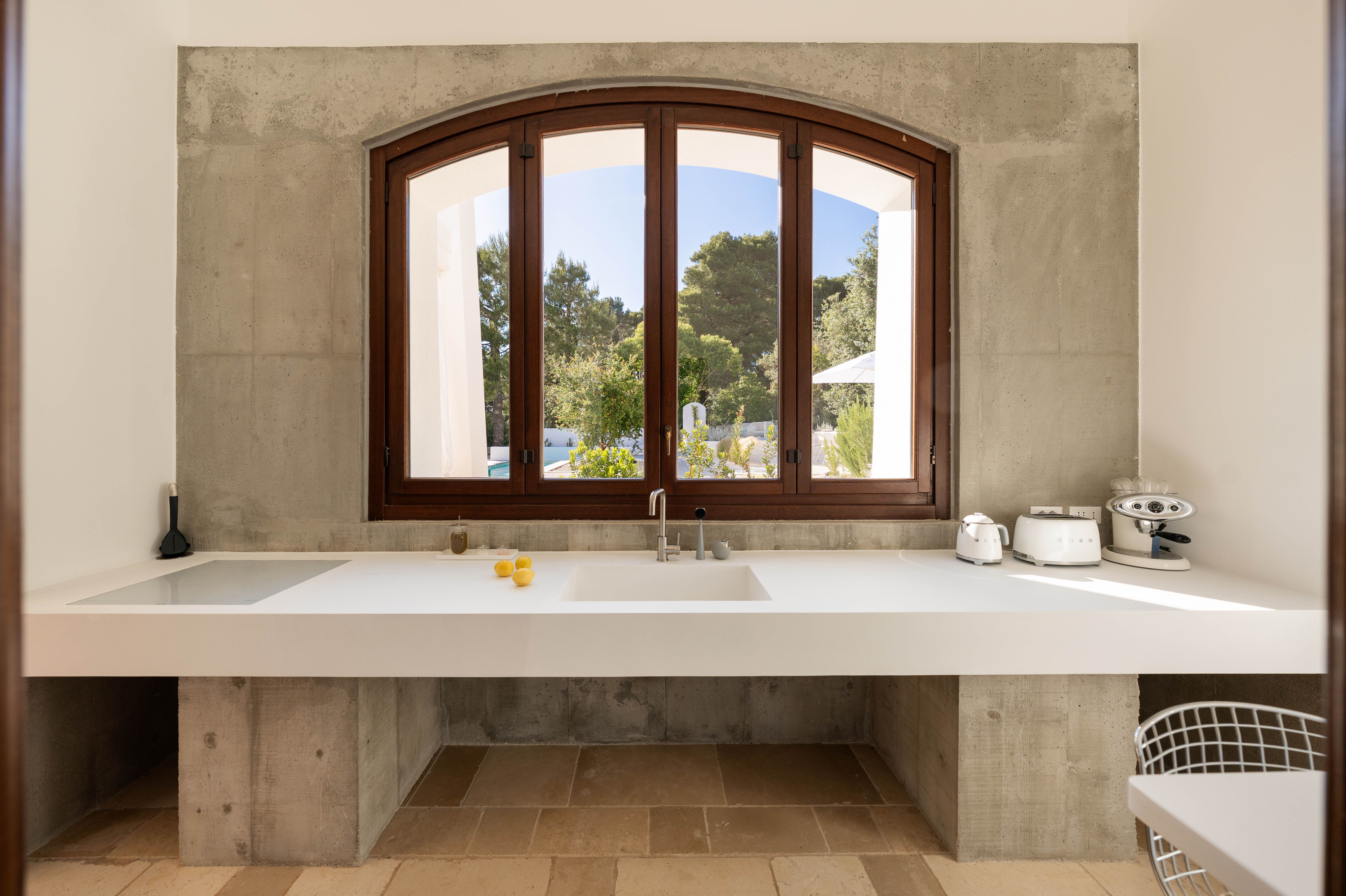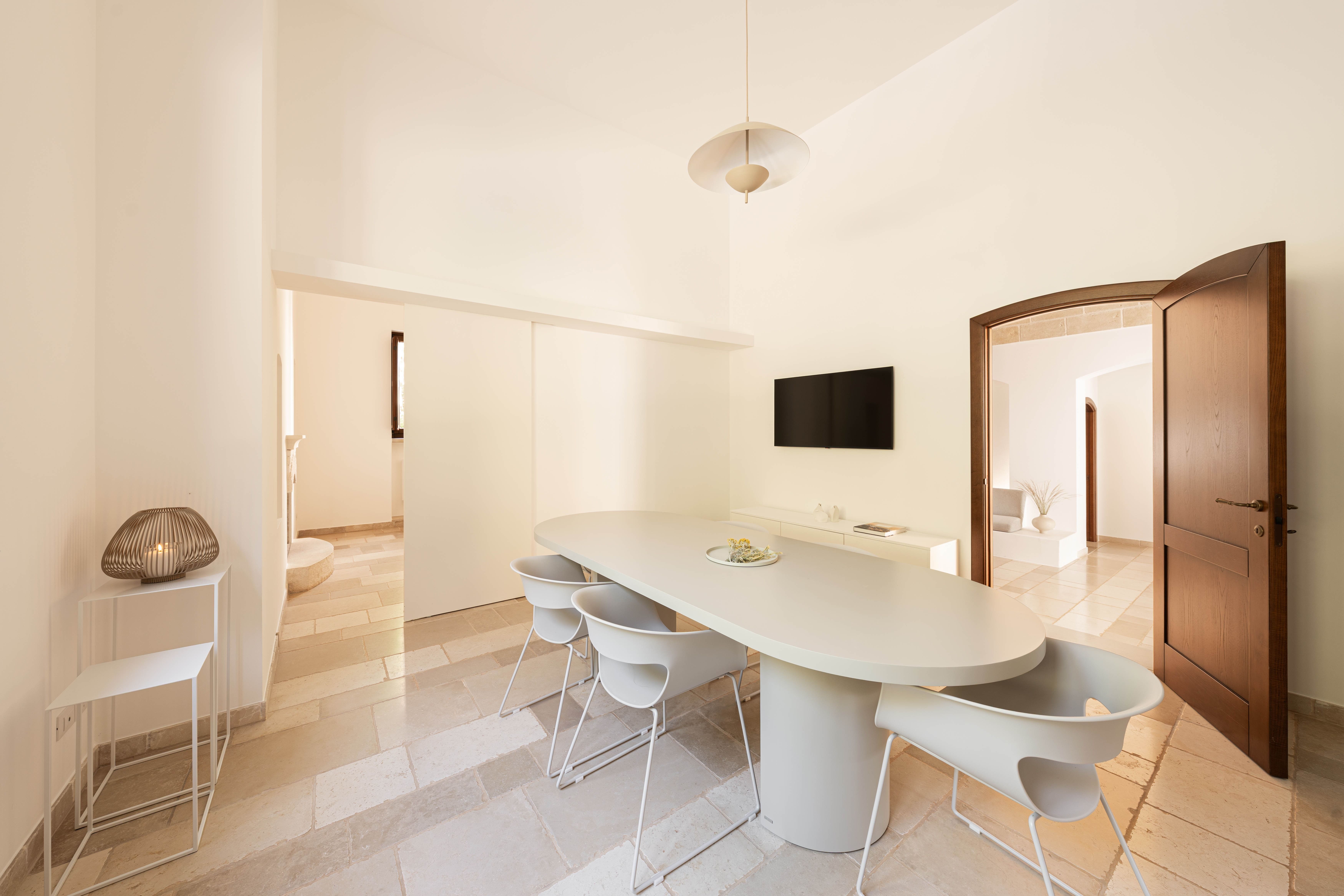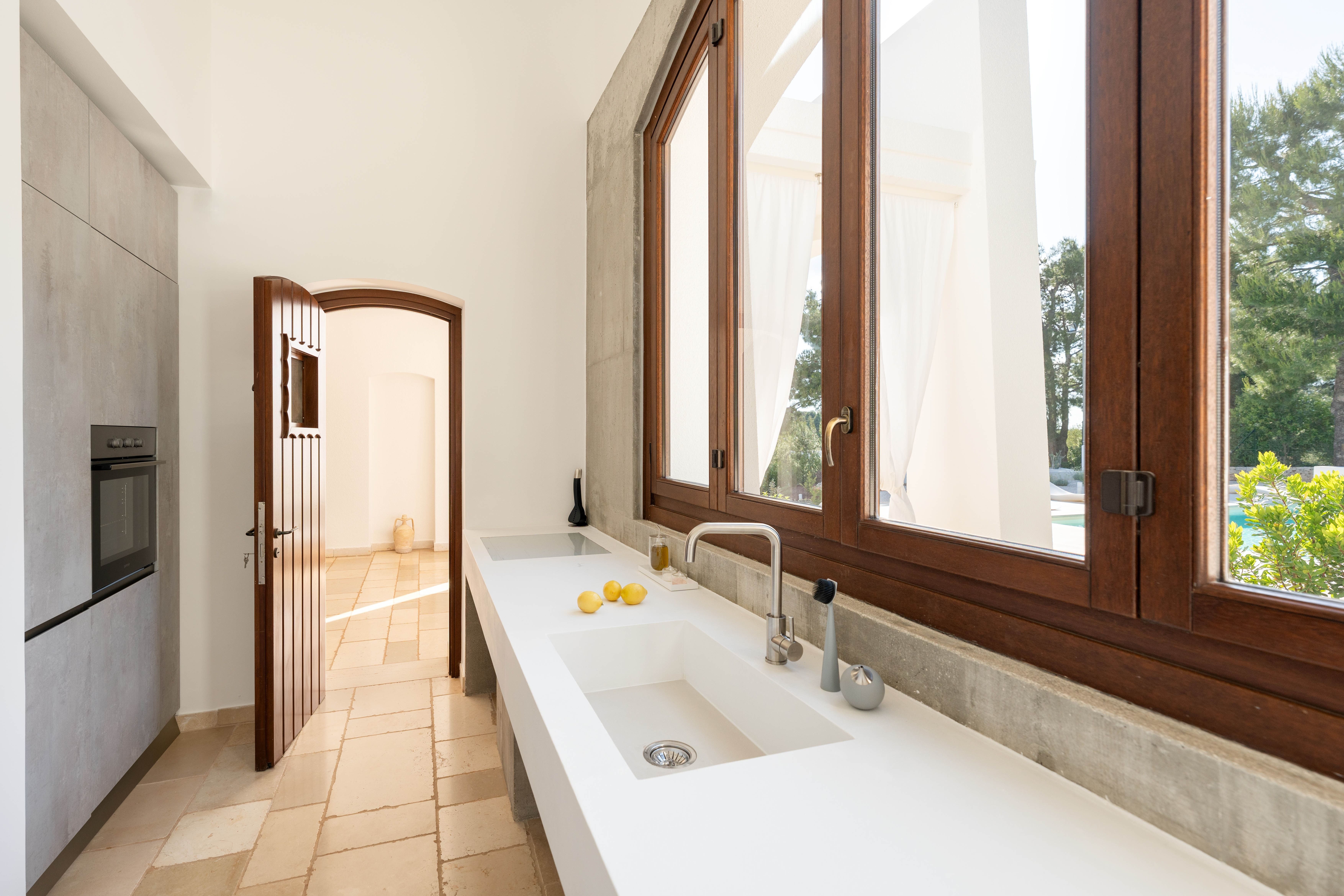 An oasis of relaxation, this white-washed villa invites you to unwind in style. There's no doubt that the outdoor area is the biggest highlight. Between the private pool, fire pit, and sun-kissed seating areas, you'll want to spend every spare second basking in the fresh air. Indoors, the contemporary aesthetic is stylish and sophisticated, boasting all the essentials you'll need to feel at home. Location-wise, Monopoli, Polignano a Mare, and Ostuni are all within driving distance – no wonder it caught our ever-so-discerning eye.