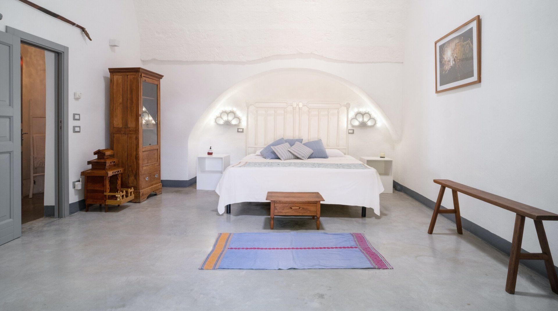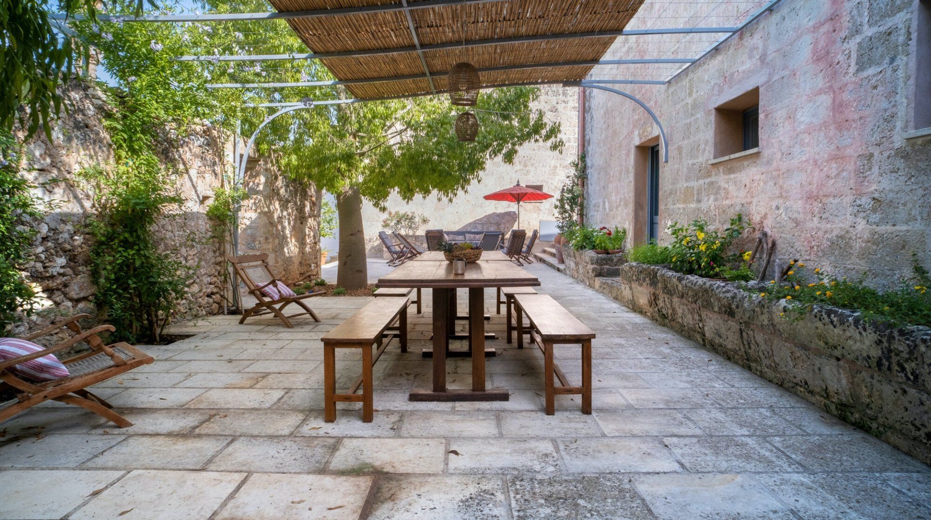 A hidden gem in the far south of Italy's heel, this peaceful Puglian getaway is the stuff dreams are made of. Located in the enchanting village of Specchia, you're sandwiched between the Adriatic and Ionian seas, a twenty-five-minute drive from the picture-perfect azure waters and white sand of Pescoluse aka. The Maldives of Salento. Your marvellous Masseria boasts five suites divided across four units around the property, each with a private entrance. So while there's more than enough space for ten of you to gather together to relax and recharge, you're also guaranteed some much-needed privacy. The outdoor areas are where this home comes into its own – life is meant to be lived outside. Long, lazy days can be spent lounging by the stunning swimming pool set within a lush walled garden, gather together for family feasts in the shade of the pergola, and spend afternoons relaxing in the outdoor lounge. Here in Salento, the best plan is no plan at all.