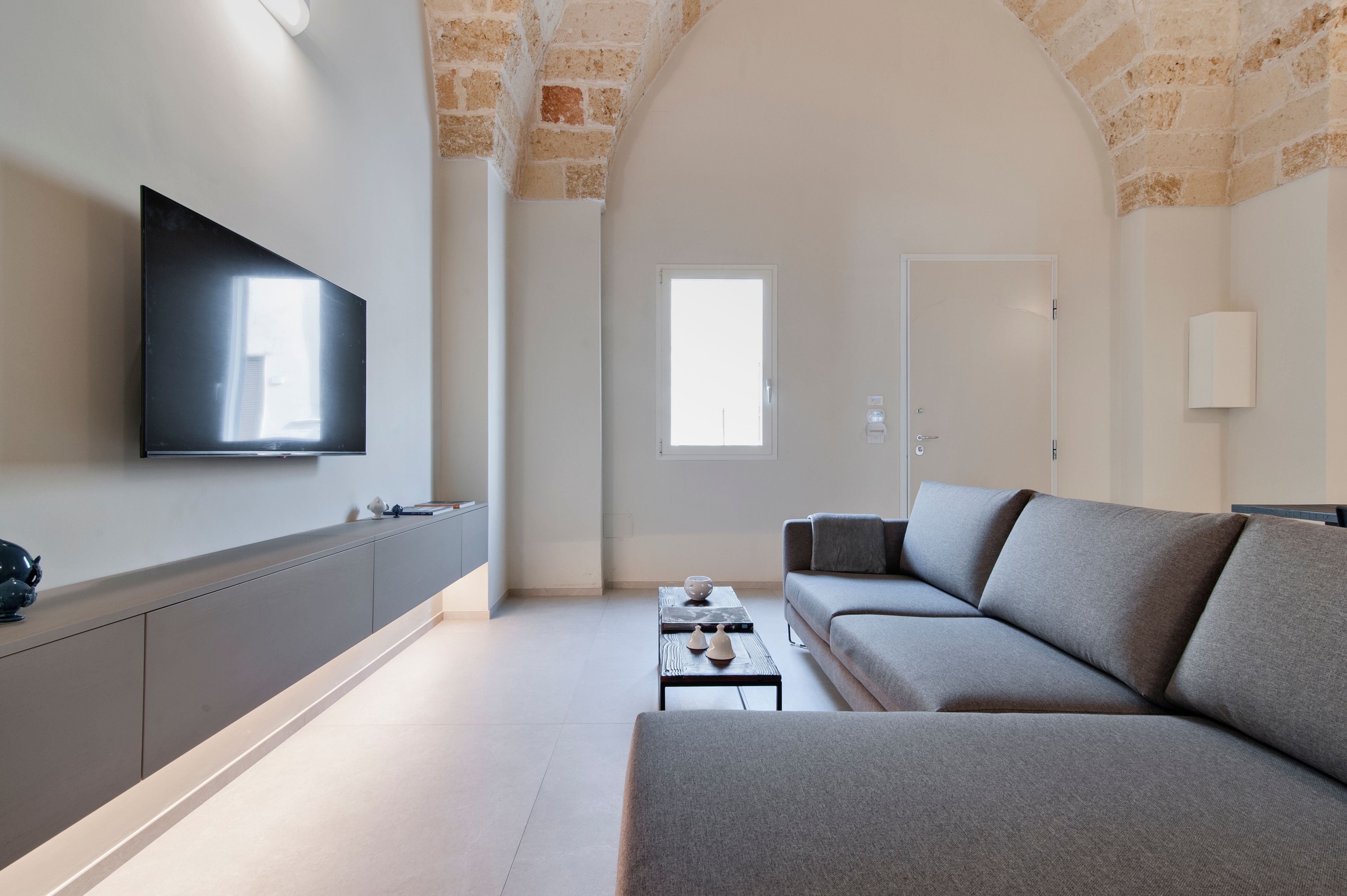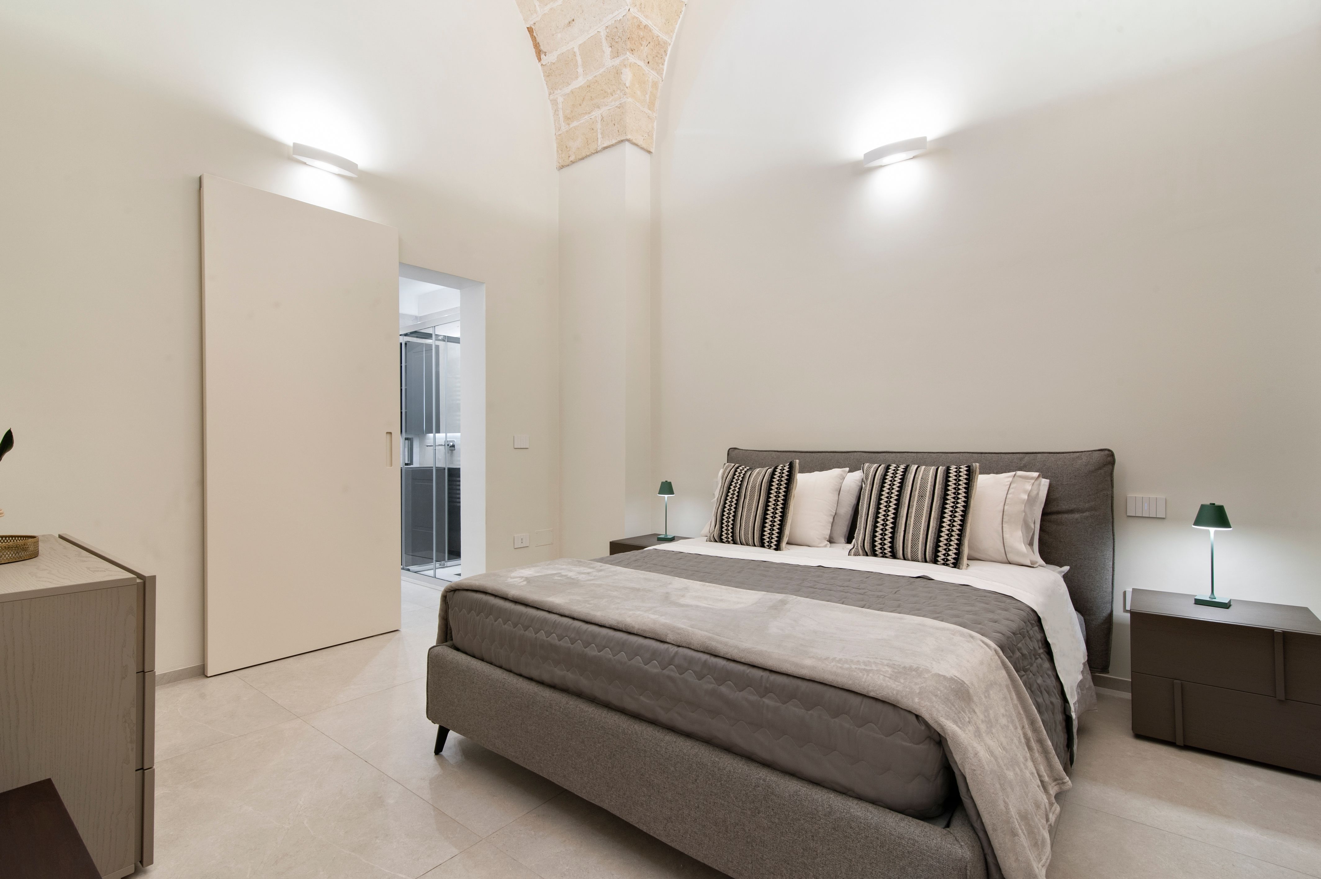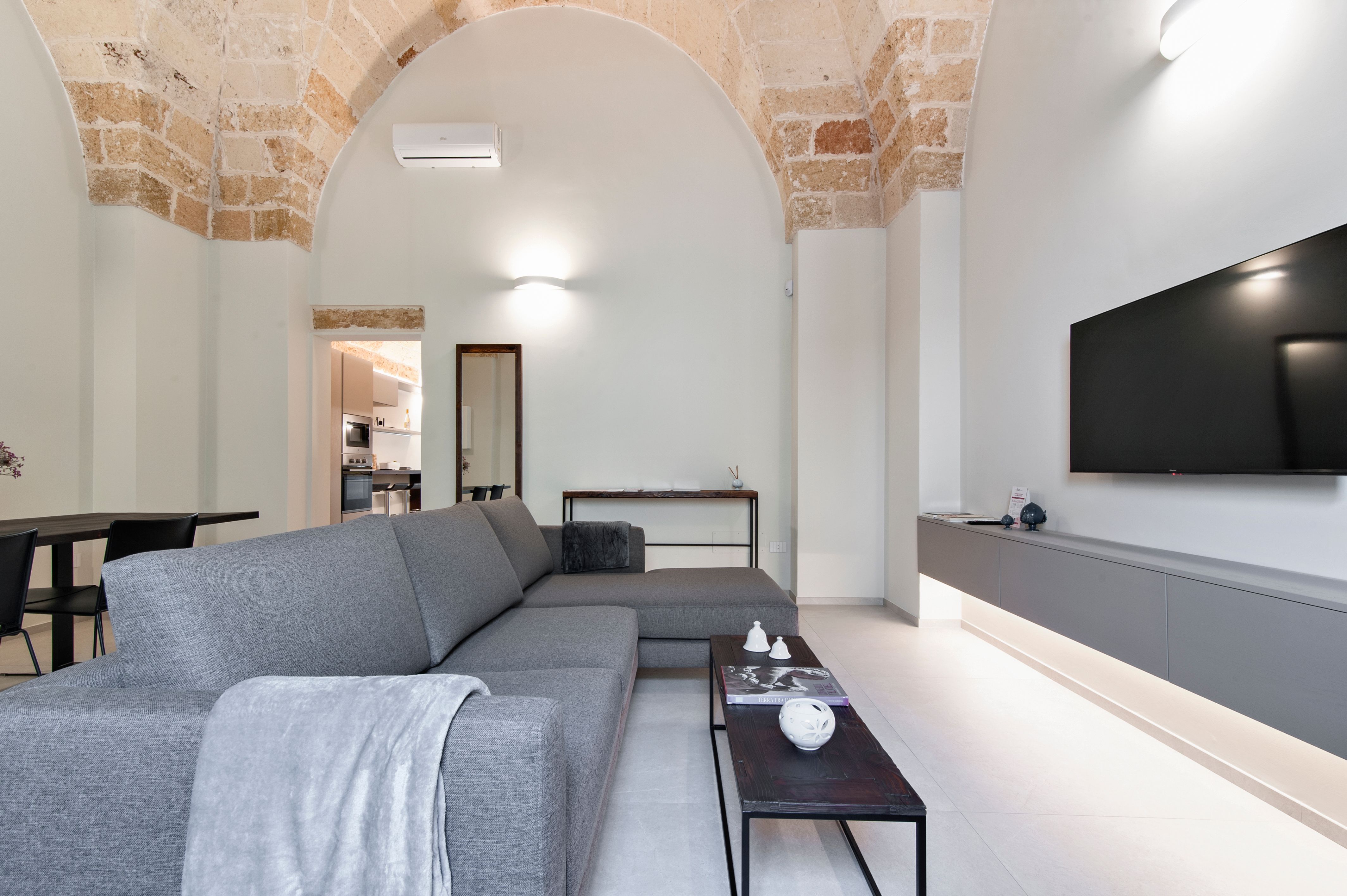 Situated in the town of Squinzano, just a twenty-minute drive from Lecce, this home is handy for exploring the local area. There are shops and restaurants within walking distance, and you can reach the coast in less than half an hour – a winning combo when it comes to location. As for the apartment, it features fuss-free decor and modern furnishings, although there are still hints of the building’s heritage (like the vaulted ceilings). There’s a kitchen too, but with excellent eateries on your doorstep, you can easily take a break from cooking in favour of fabulous local cuisine.