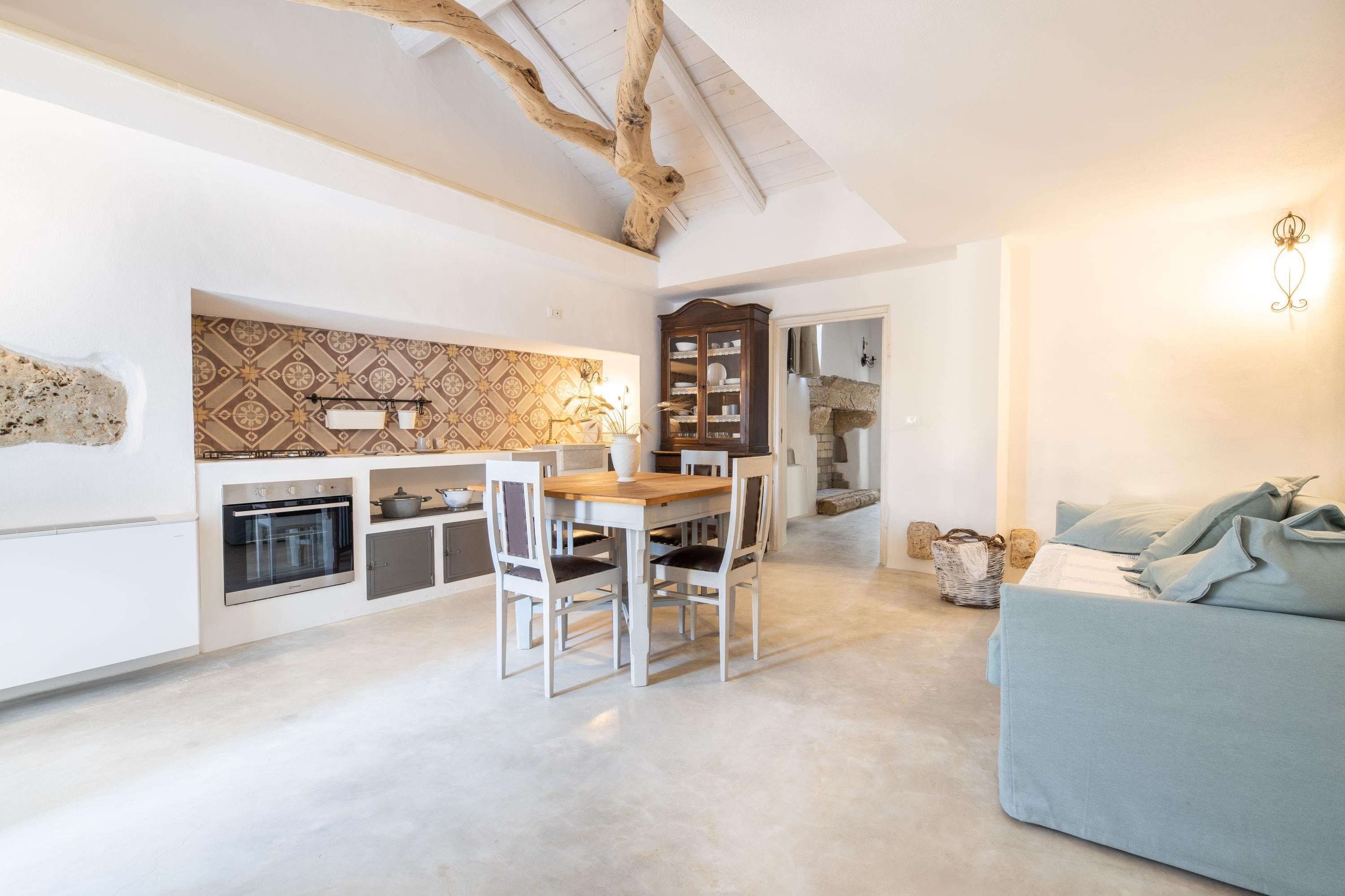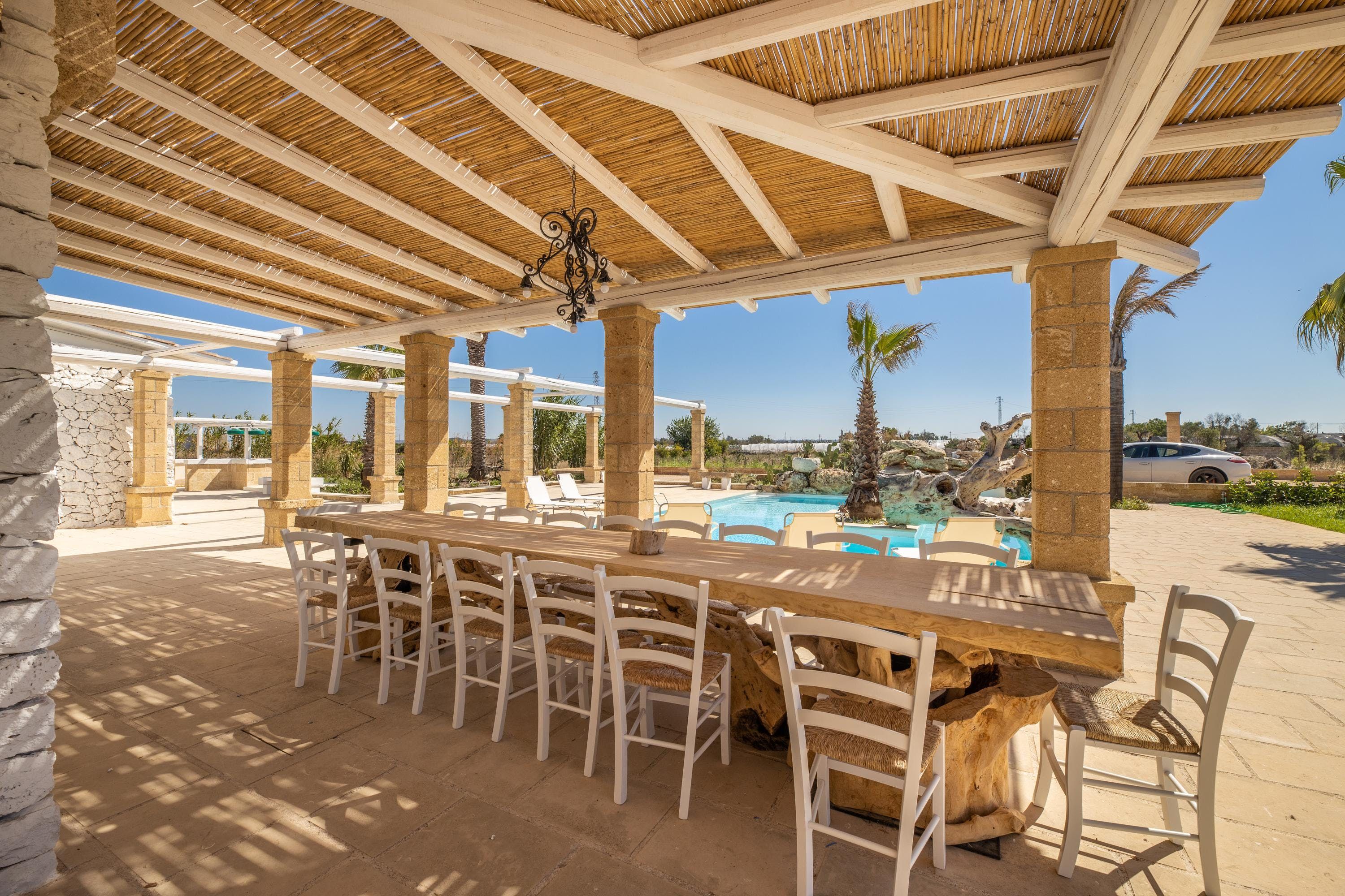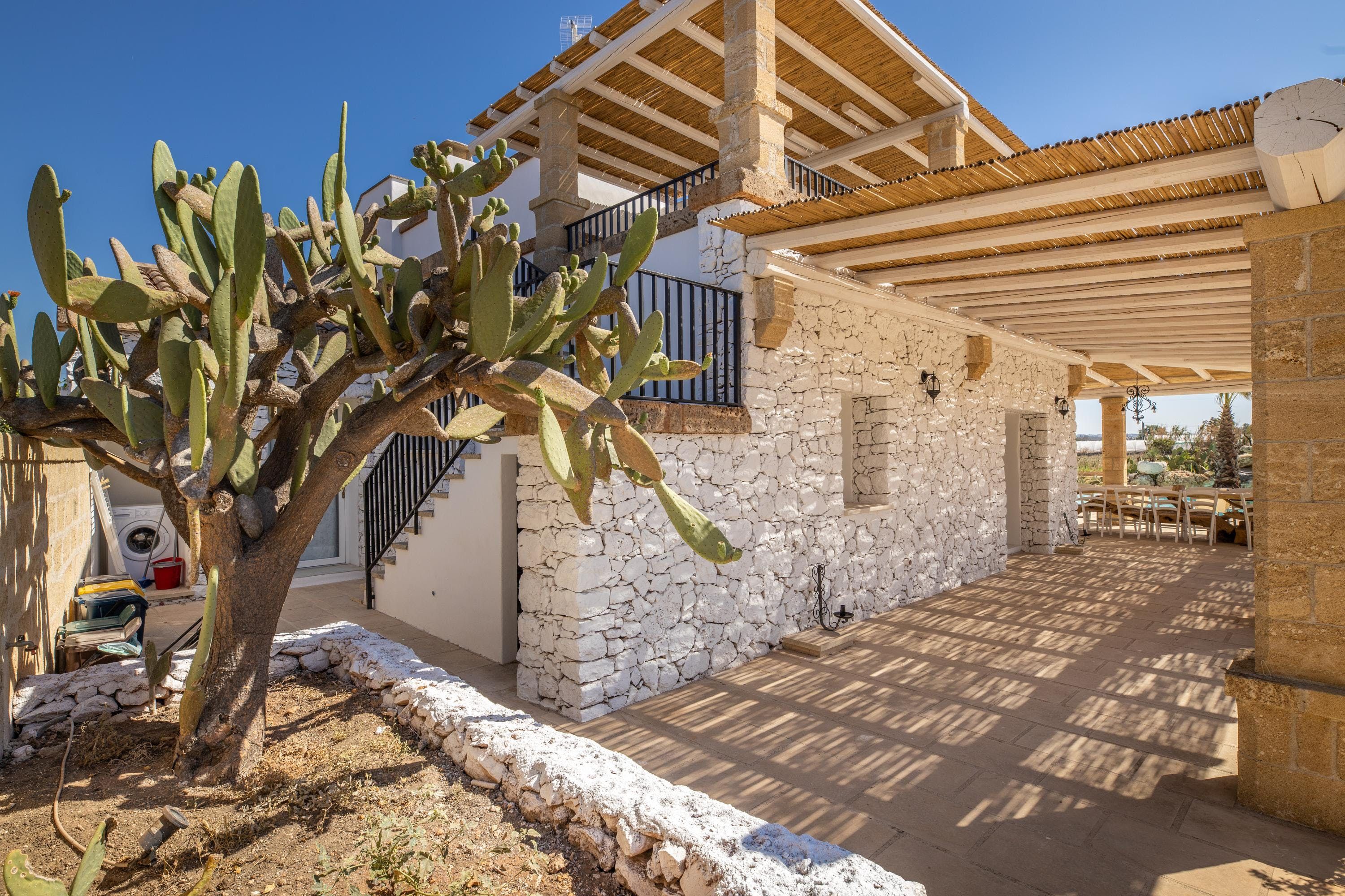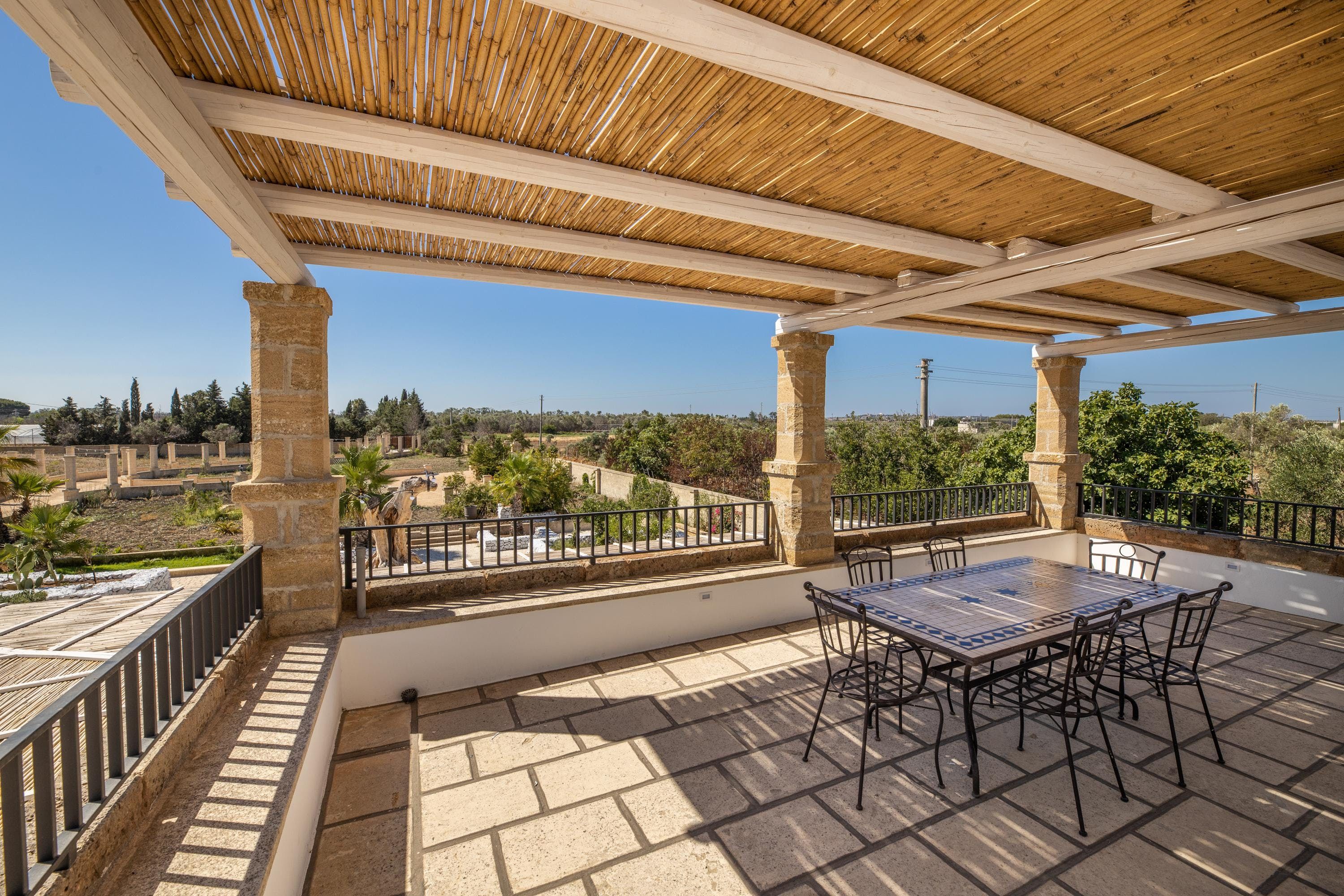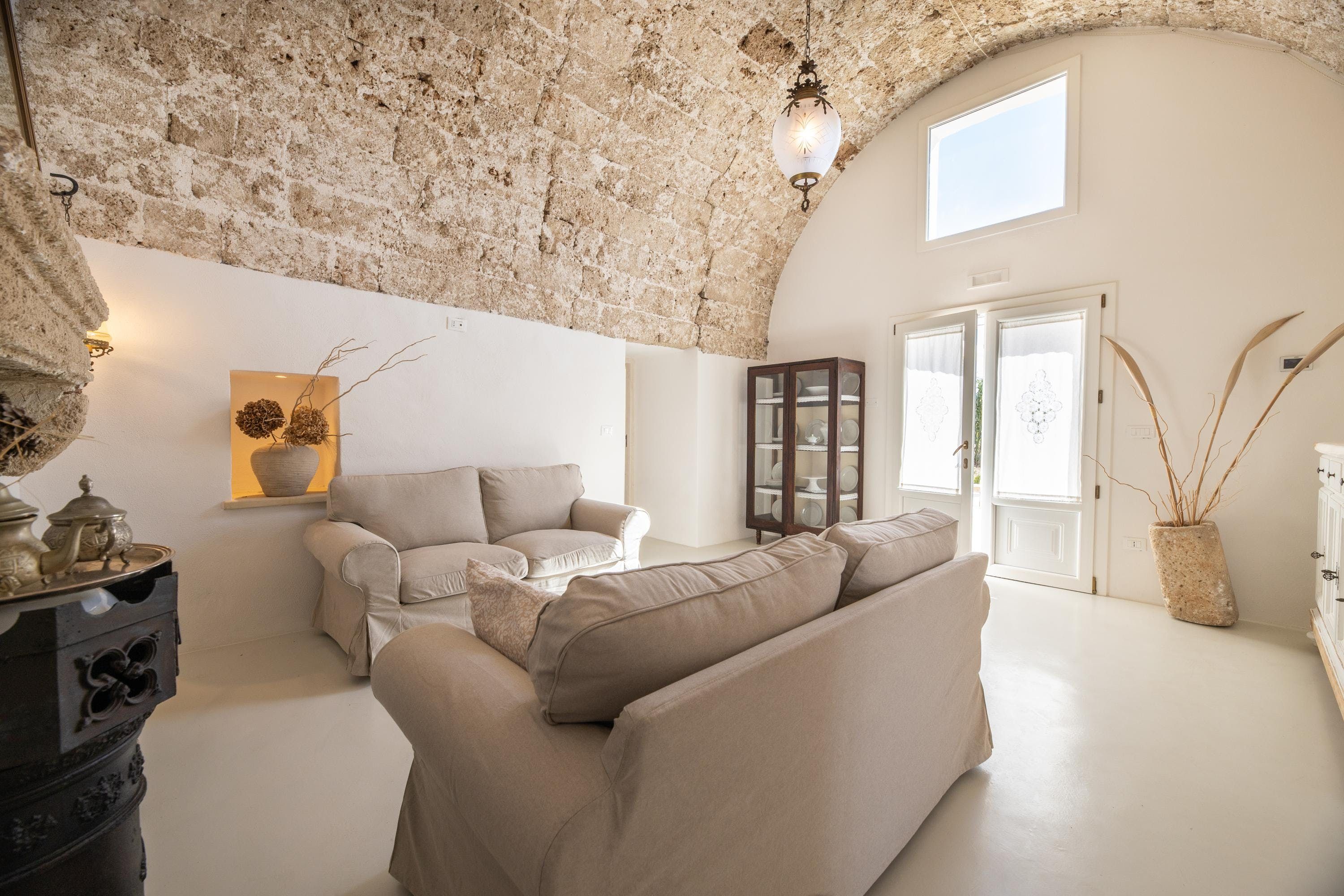 Spend a serene stay at this incredible villa in Taviano, a picturesque town based in the province of Lecce and nicknamed the ‘city of flowers’ for its famous flower fields. You’ll love exploring the Old Town, where sugar-cube buildings sit next to Baroque palaces, and you can find delicious restaurants, trendy bars and quaint cafes. You’re also a short drive from the beaches of Gallipoli, home to classy beach bars and crystal-clear waters.