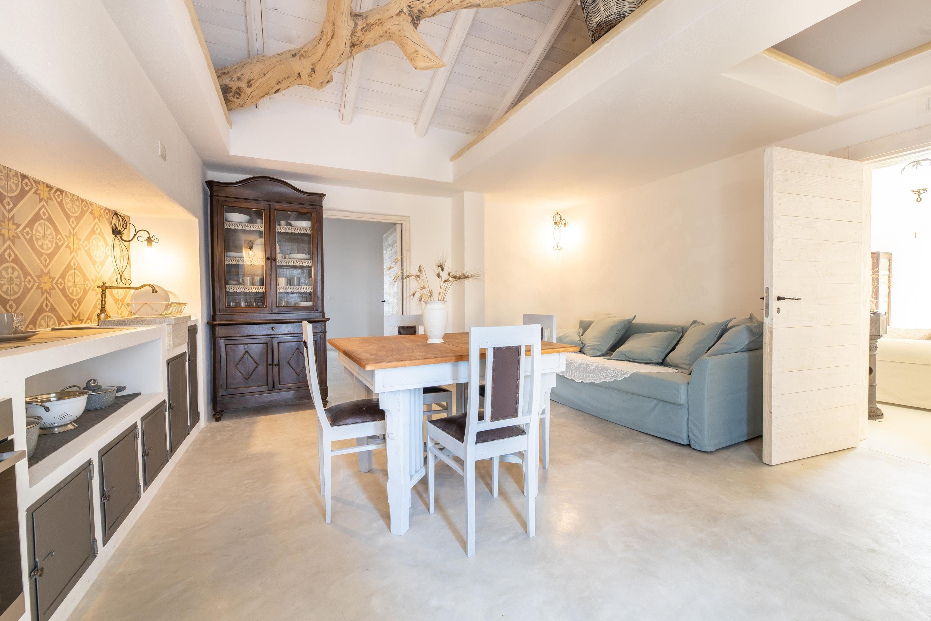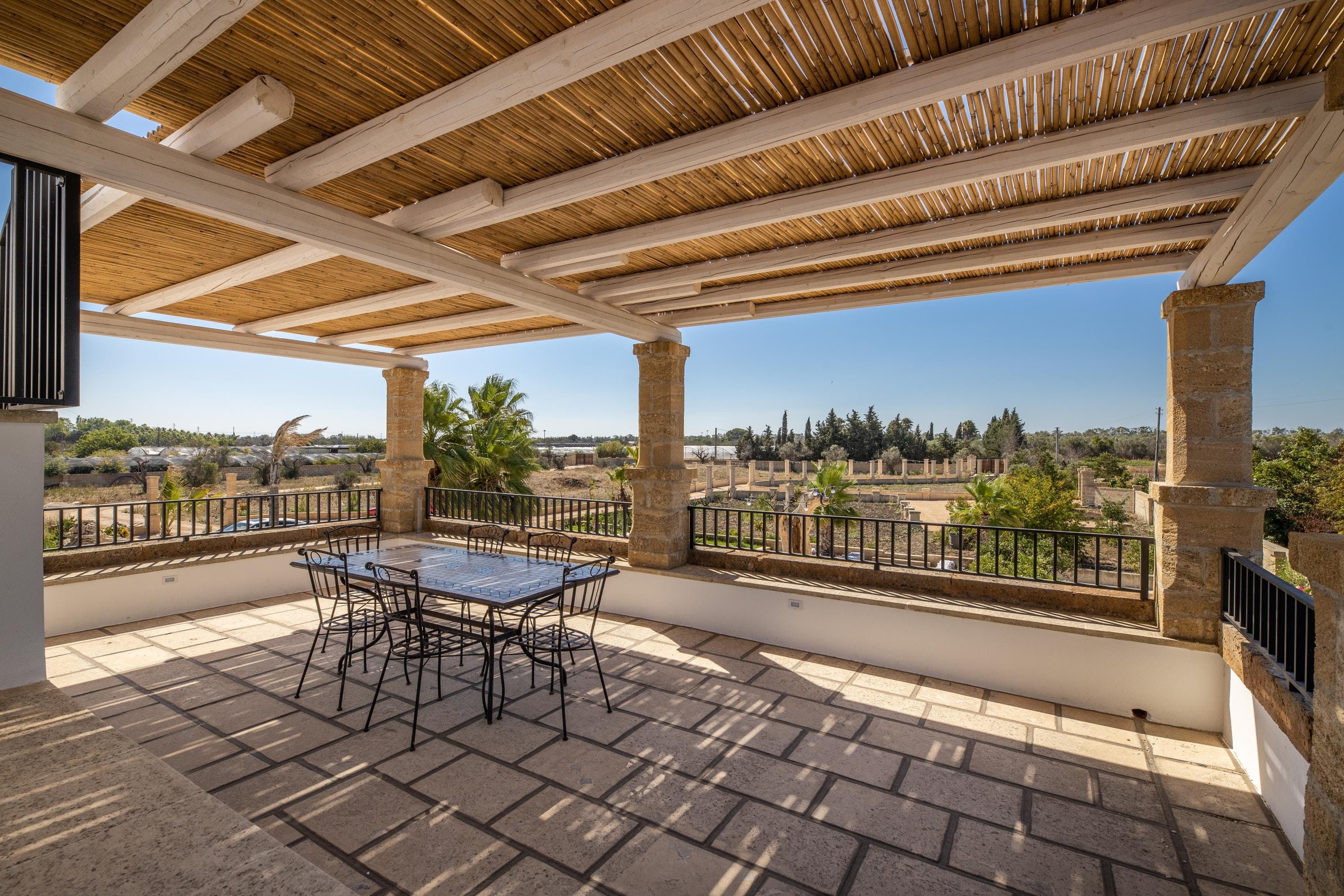Characterful touches such as beam ceilings, reclaimed driftwood and natural stone brickwork await inside, along with a neutral colour scheme that invokes a real sense of calm. This is all combined with modern amenities that make your stay feel seamless. You’ll be even more wowed by the outside, with a large garden featuring a stunning outdoor pool where you can swim and splash under the hot sun. There are also plenty of places to chill out, all speckled with palm trees to make it feel like you’ve entered true paradise. The sun loungers invite you to relax poolside with a cocktail on hot summer days, while the covered dining terrace provides the ideal place to feast with family and friends. There’s also a dining area on the rooftop terrace that makes for a great sundowner spot.