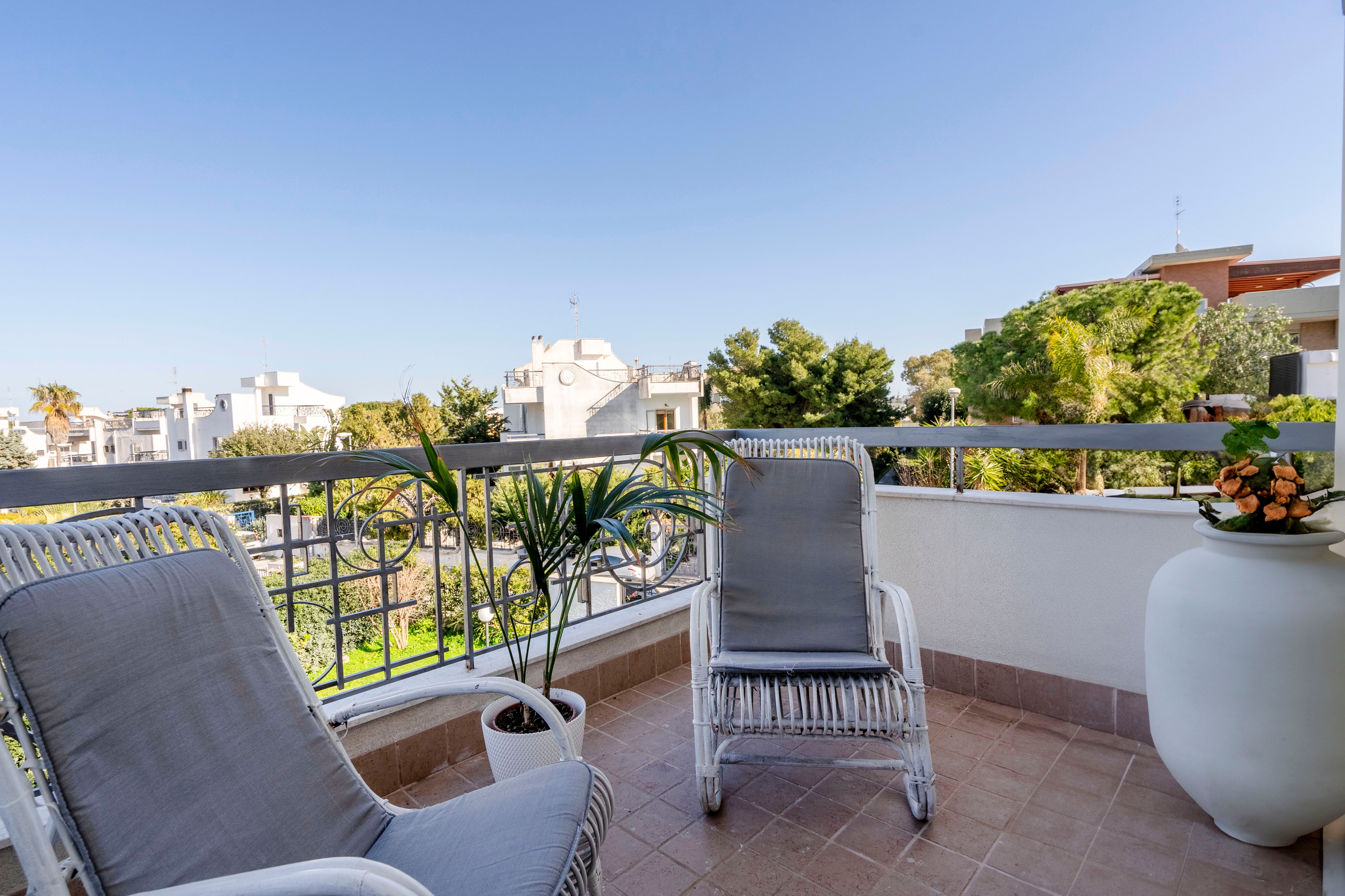 Right next to the seaside in idyllic Torre a Marre, this charming apartment is a lovely escape on the Puglia coast. Combining comfort, style and sustainability – with thoughtful touches like solar panels and thermal insulation for an eco-friendly stay – it’s a getaway you can feel good about. The private balcony is a real gem, where you can look out over the surrounding rooftops and enjoy an aperitivo in the afternoon sun. And the cherry on top is Marley, the building’s friendly on-site dog, who greets you at the gate with a smile.