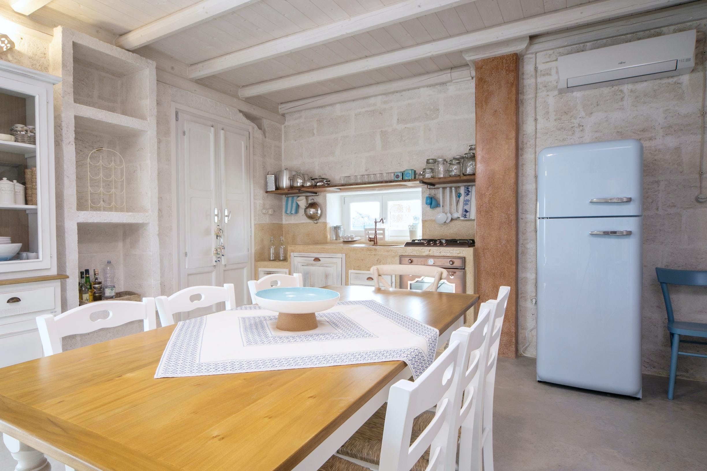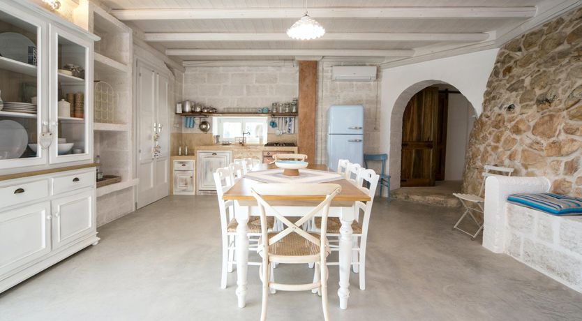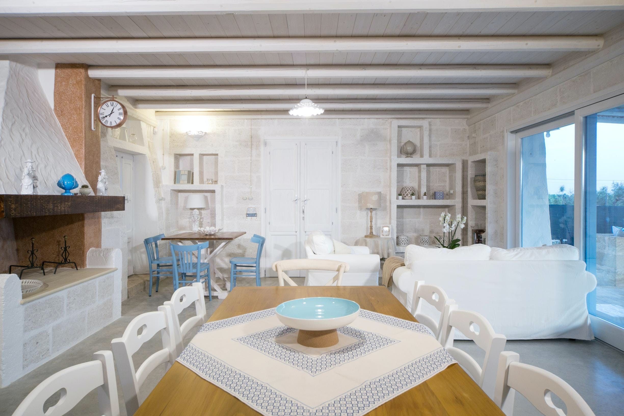 Located near Marina di Mancaversa, this villa is just a short drive away from the stunning beaches of Gallipoli and Torre San Giovanni. Set across one floor, this home is ideal for those with reduced mobility, while any kids in the group have plenty of space to run around in the fenced garden. You’ll have 4600 square metres to enjoy, which includes a private swimming pool, sun loungers, and a covered seating area. Inside you’ll fund plenty of traditional Puglian charm thanks to exposed stonework and vaulted ceilings.