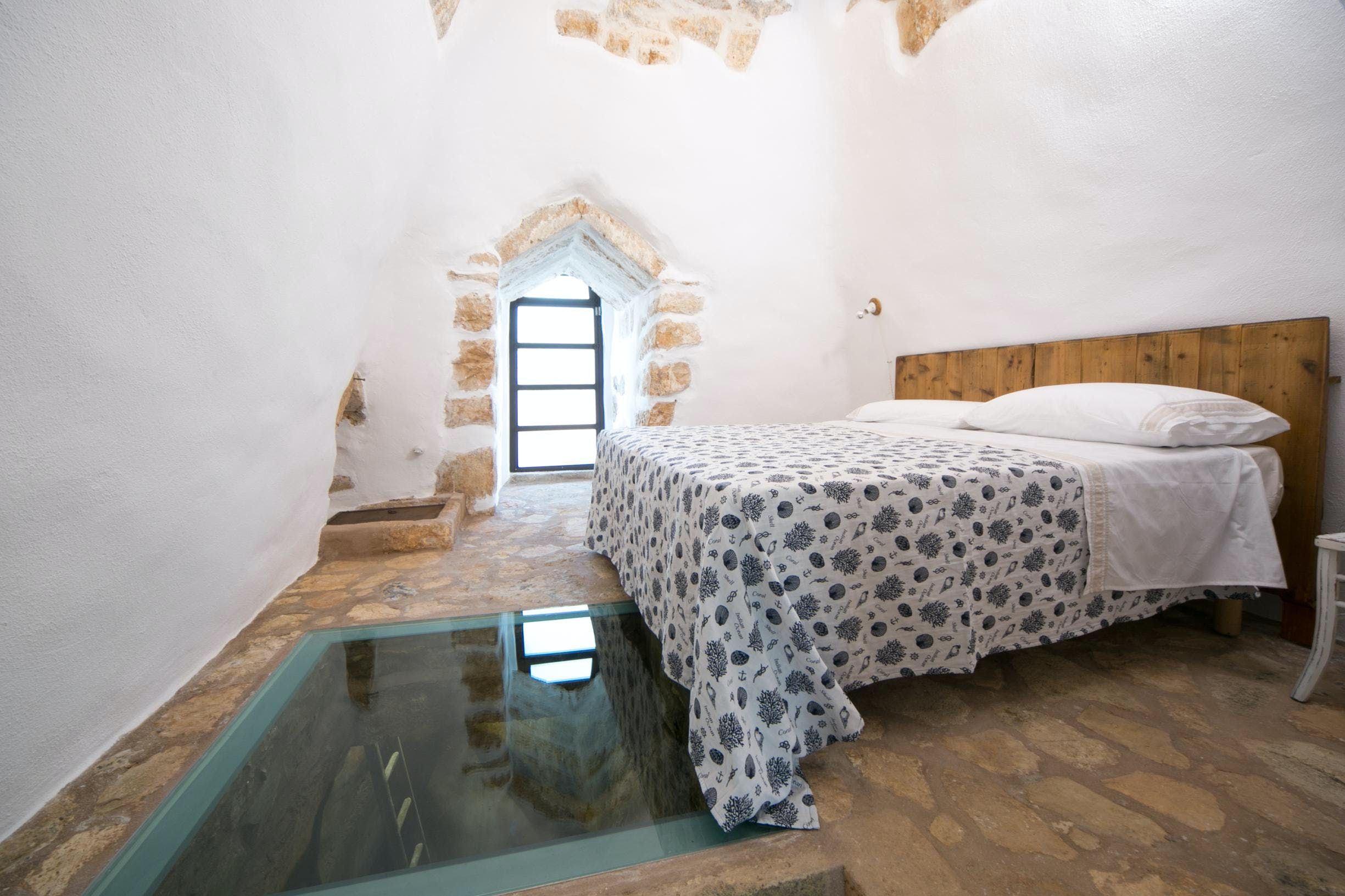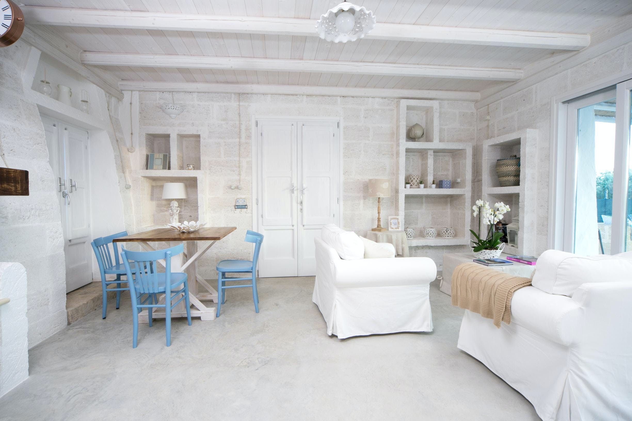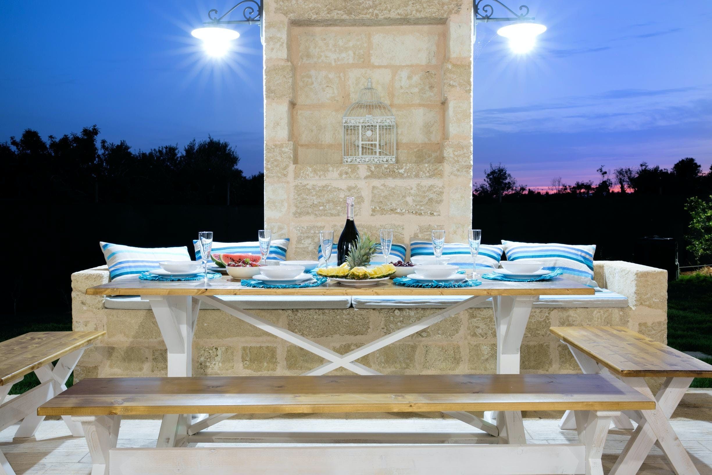 Located near Marina di Mancaversa, this villa is just a short drive away from the stunning beaches of Gallipoli and Torre San Giovanni. Set across one floor, this home is ideal for those with reduced mobility, while any kids in the group have plenty of space to run around in the fenced garden. You’ll have 4600 square metres to enjoy, which includes a private swimming pool, sun loungers, and a covered seating area. Inside you’ll fund plenty of traditional Puglian charm thanks to exposed stonework and vaulted ceilings.