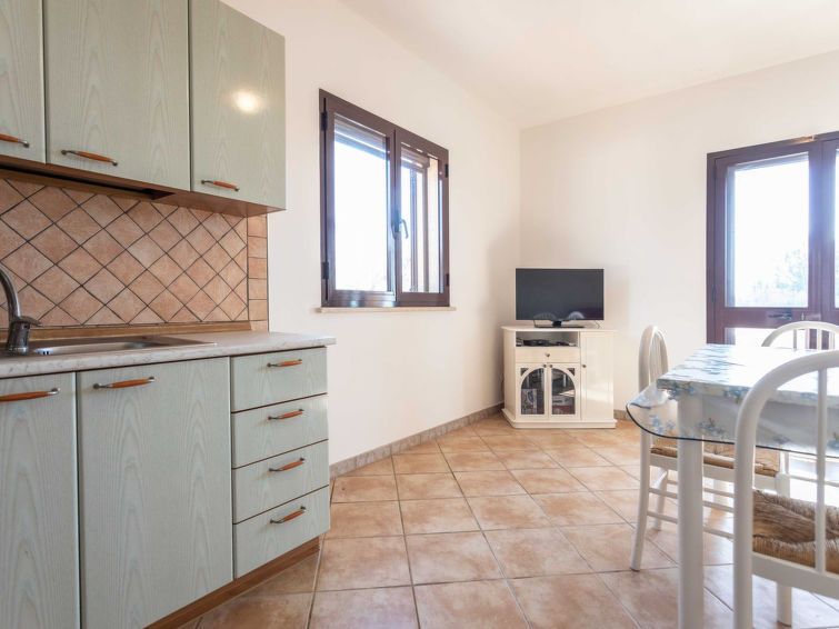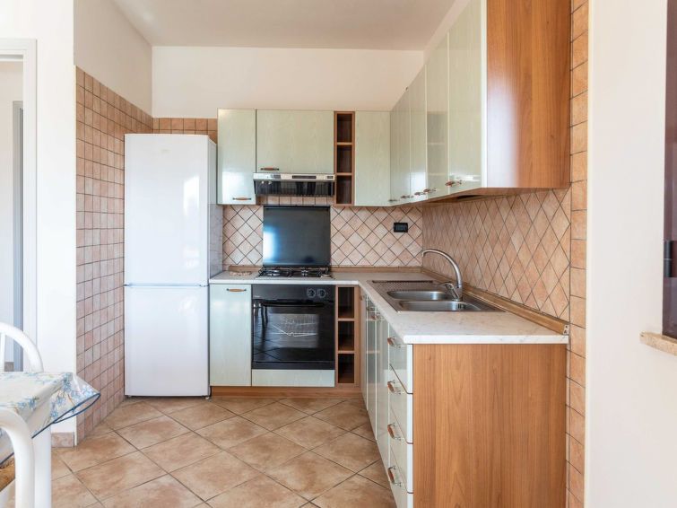 "Atena", 2-room apartment 60 m2, on the upper ground floor. Simple and practical furnishings: living/dining room with 1 double sofabed and TV. Exit to the terrace. 1 double bedroom. Kitchenette (oven, 4 gas rings, freezer). Shower/bidet/WC. Air-conditioning. No heating option. Terrace roofed.