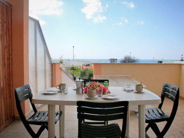 "Bilo Vista Mare 2", 2-room apartment 40 m2 on 1st floor. Simple and modern furnishings: living/sleeping room with 1 double sofabed, dining table and kitchen corner. Exit to the patio. 1 double bedroom. Kitchenette (4 hot plates, oven). Shower/bidet/WC. Air-conditioning. Patio. Terrace furniture.