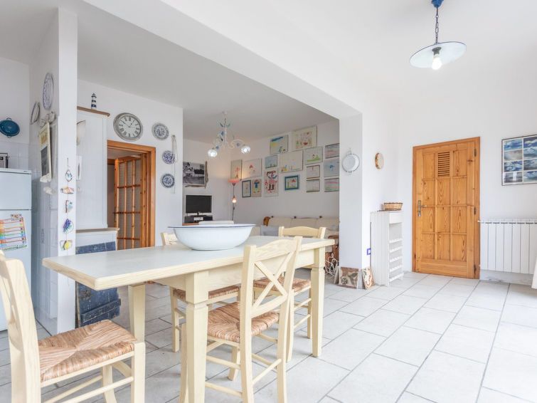 "Pisa 2", 3-room apartment 90 m2. Practical and comfortable furnishings: living/dining room with open-hearth fireplace and air conditioning. Exit to the garden. 1 double bedroom. 1 room with 2 beds. Open kitchen (4 hot plates, oven). Shower/bidet/WC. Patio, garden. Terrace furniture, barbecue.