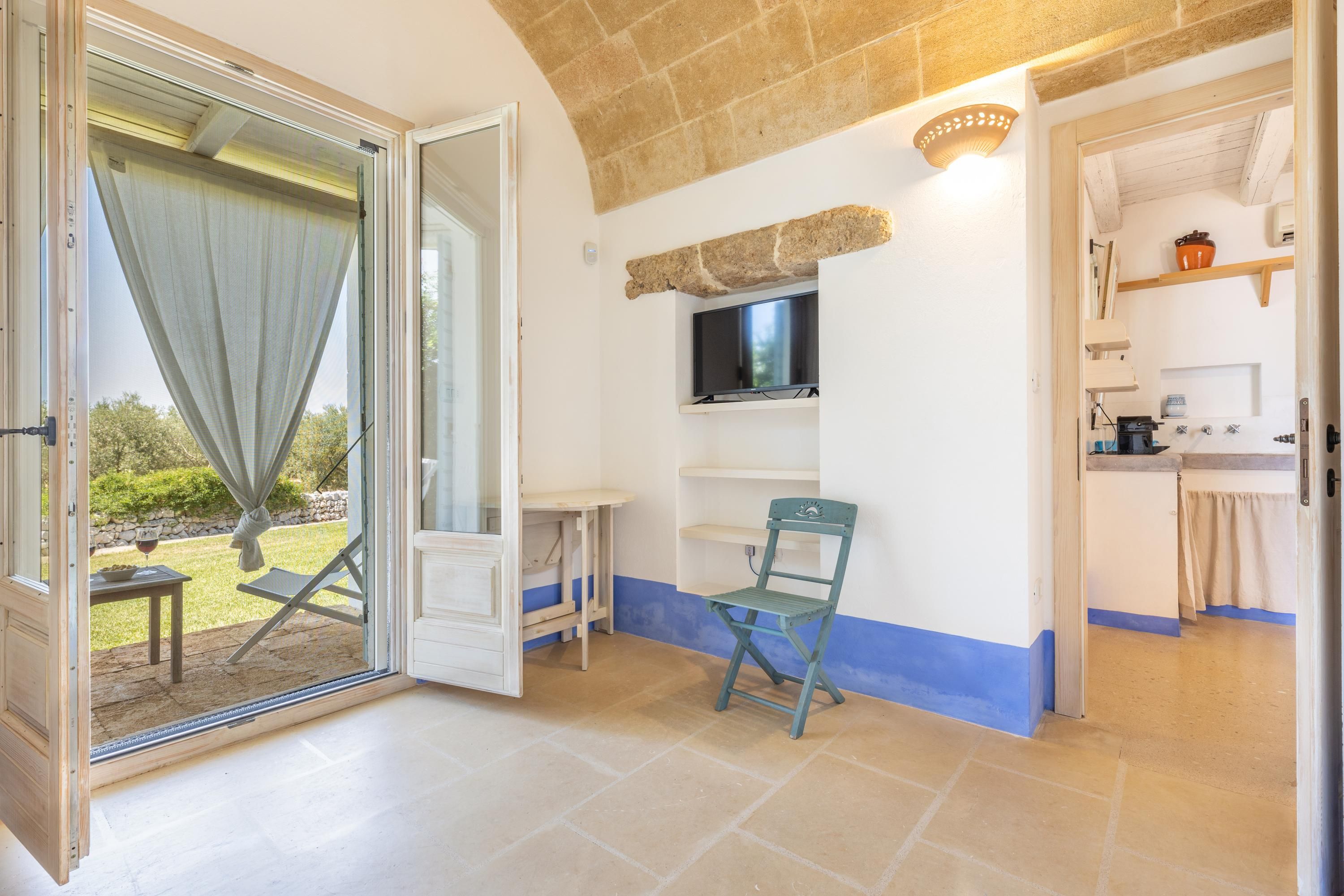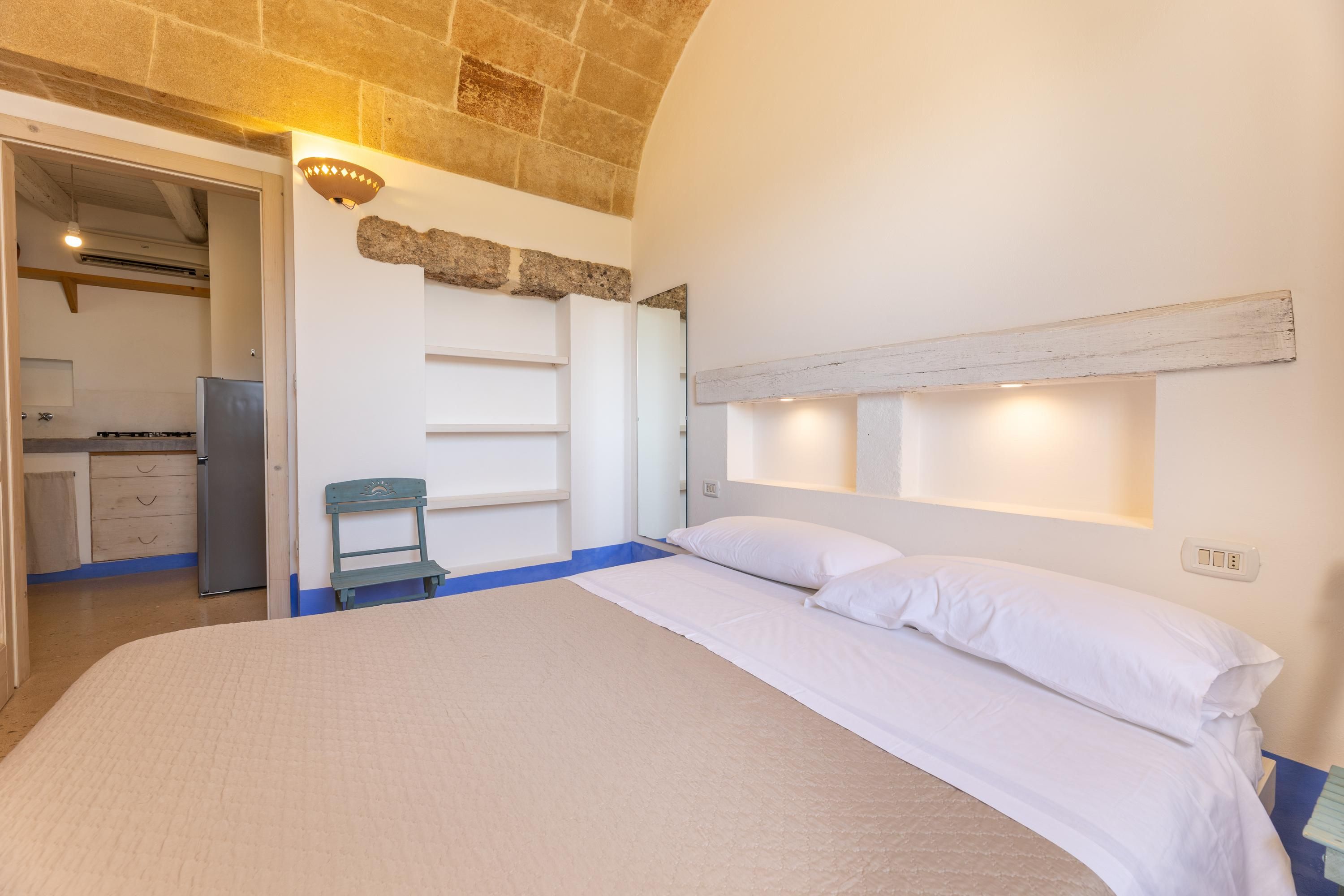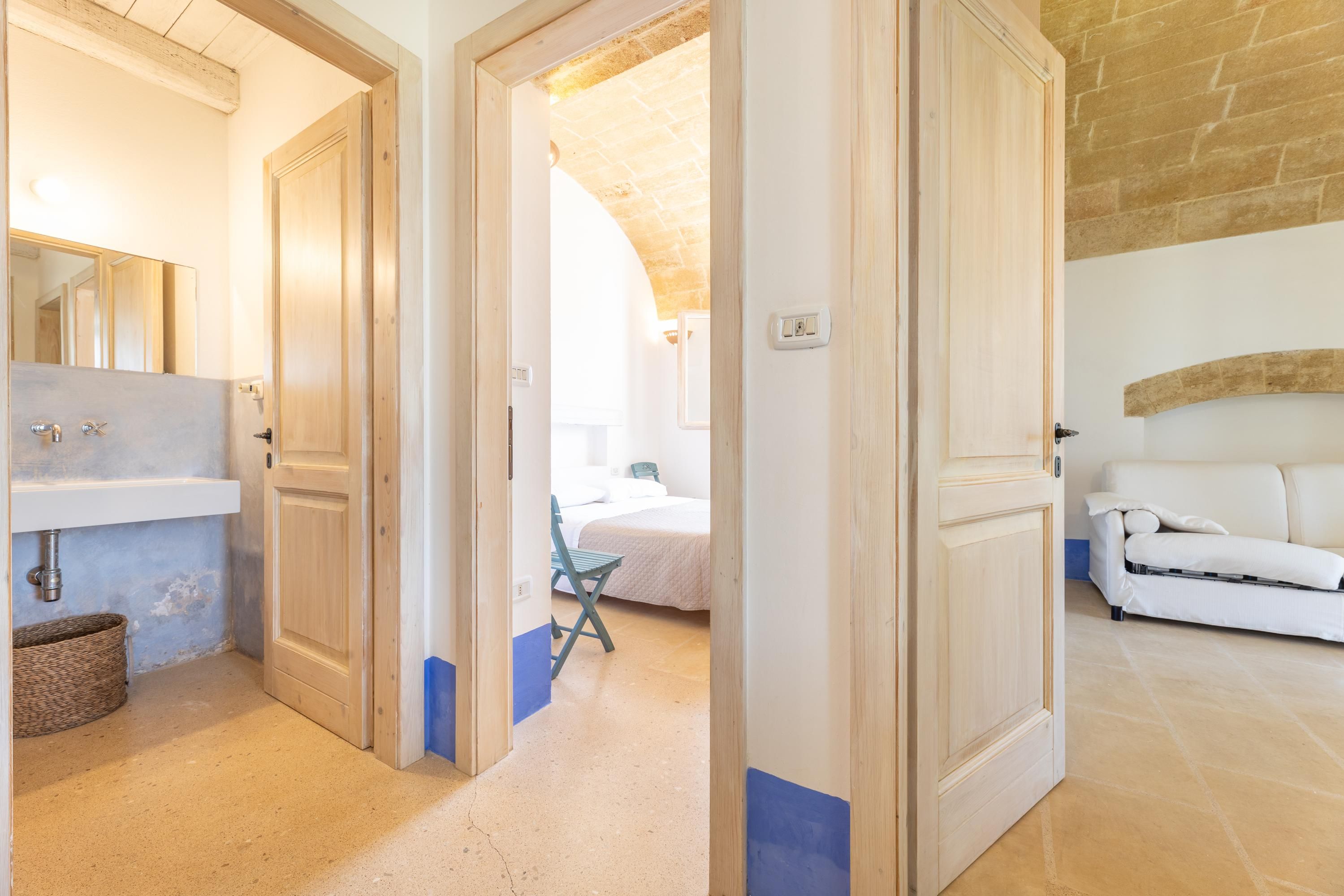 Found at the very bottom of the Salento peninsula, this small, cosy apartment is situated on attractive communal grounds. Its distinctive thin pool, also shared, is ideal for morning lengths and afternoons in the sun. You'll have multiple outdoor seating areas to choose from, perfect for alfresco dining using the grill, though the kitchen is on the smaller side and best for simple recipes using the gas hob. While a cot is available for little ones and the living room sofa bed means room for an extra visitor, we think this home is ideal for couples seeking to explore Lecce province, with coastal gems like Santa Maria di Leuca reachable in ten minutes by car.