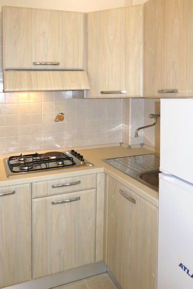 1-room terraced house 25 m2. Simple and practical furnishings: 1 room with 1 double bed (160 cm), TV. Exit to the terrace. Kitchenette (2 gas rings, freezer) with dining table. Exit to the terrace. Shower/bidet/WC. Heating (extra), air-conditioning (extra). Terrace roofed. Terrace furniture.