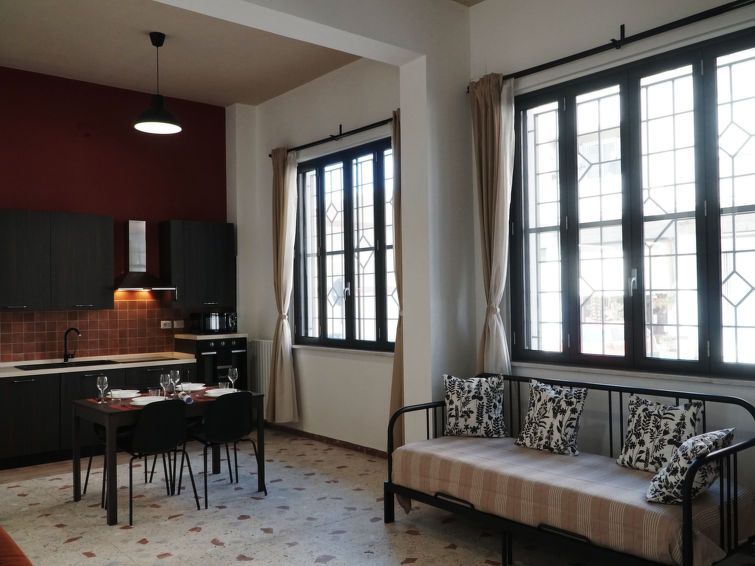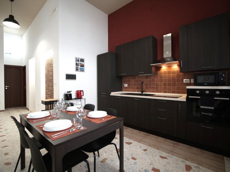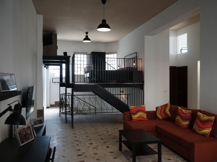 "Tra Mare e Antichi Borghi", 2-room Loft 100 m2 on 2 levels. Spacious, fully renovated in 2025, modern and tasteful furnishings: living/sleeping room with 1 double sofabed. Gallery with 1 double bed. Open kitchen (dishwasher, 4 induction hot plates, microwave, grill, electric coffee machine) with dining table.