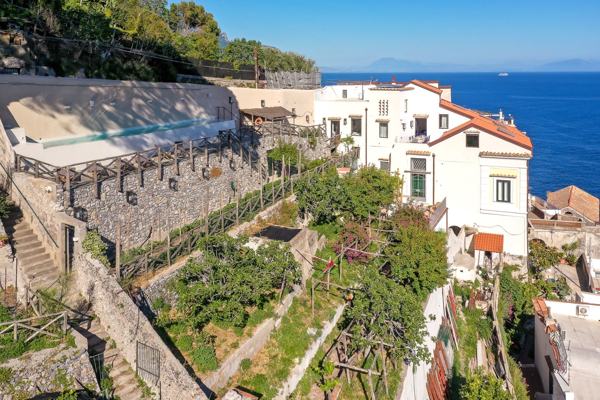 The views over the Amalfi Coast from this home’s infinity pool and whirlpool are incredible. There are a variety of terraces for relaxing and alfresco dining, while inside this place, dating from the 15th century, there’s a traditional feel with beams and handmade tiles. There's an open fire in the living room for cooler evenings and all of the bedrooms are en-suite (two also have a private terrace). Situated in the oldest part of Amalfi, it’s just a short walk down the steps to the centre of the town or you can take one of two public lifts.