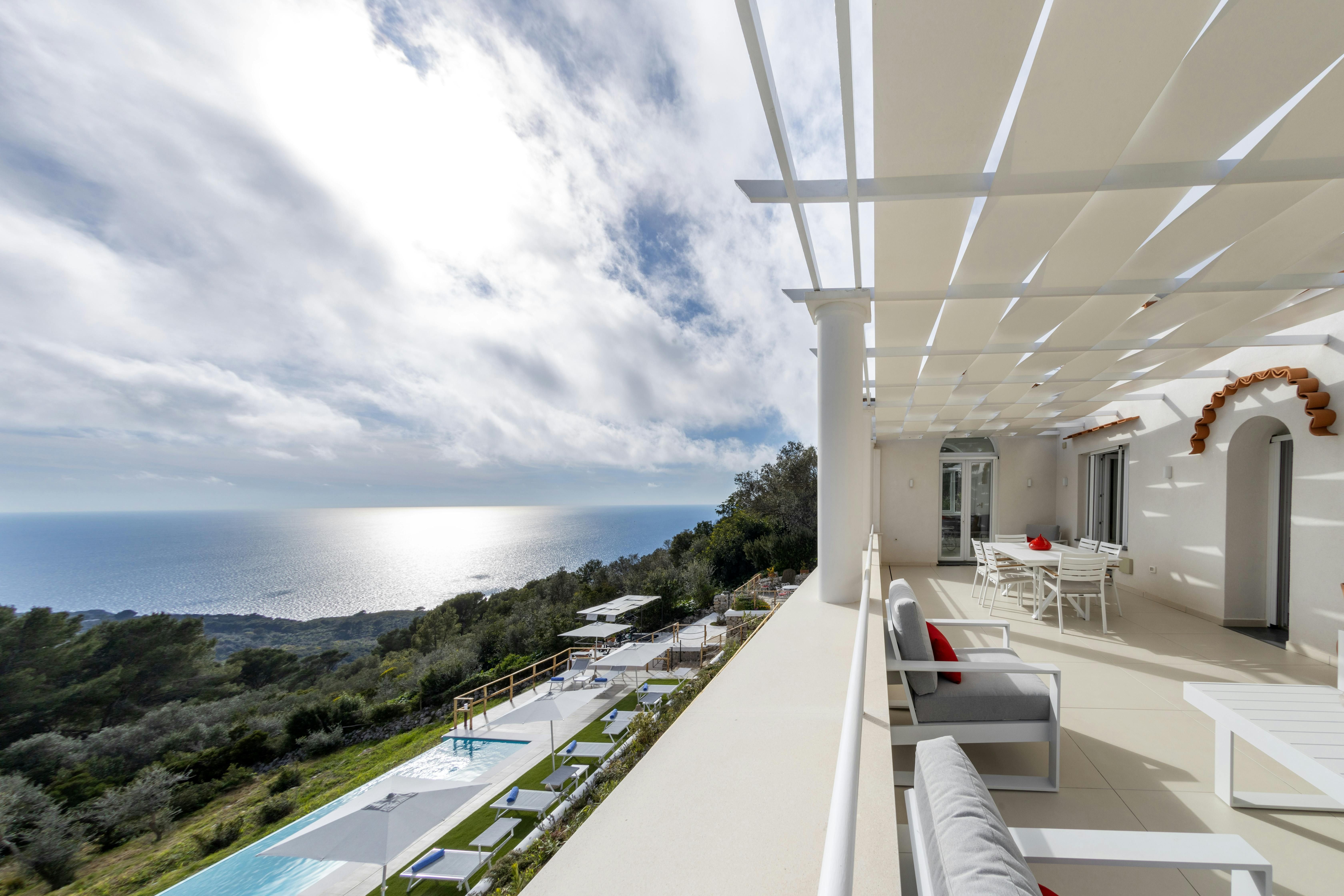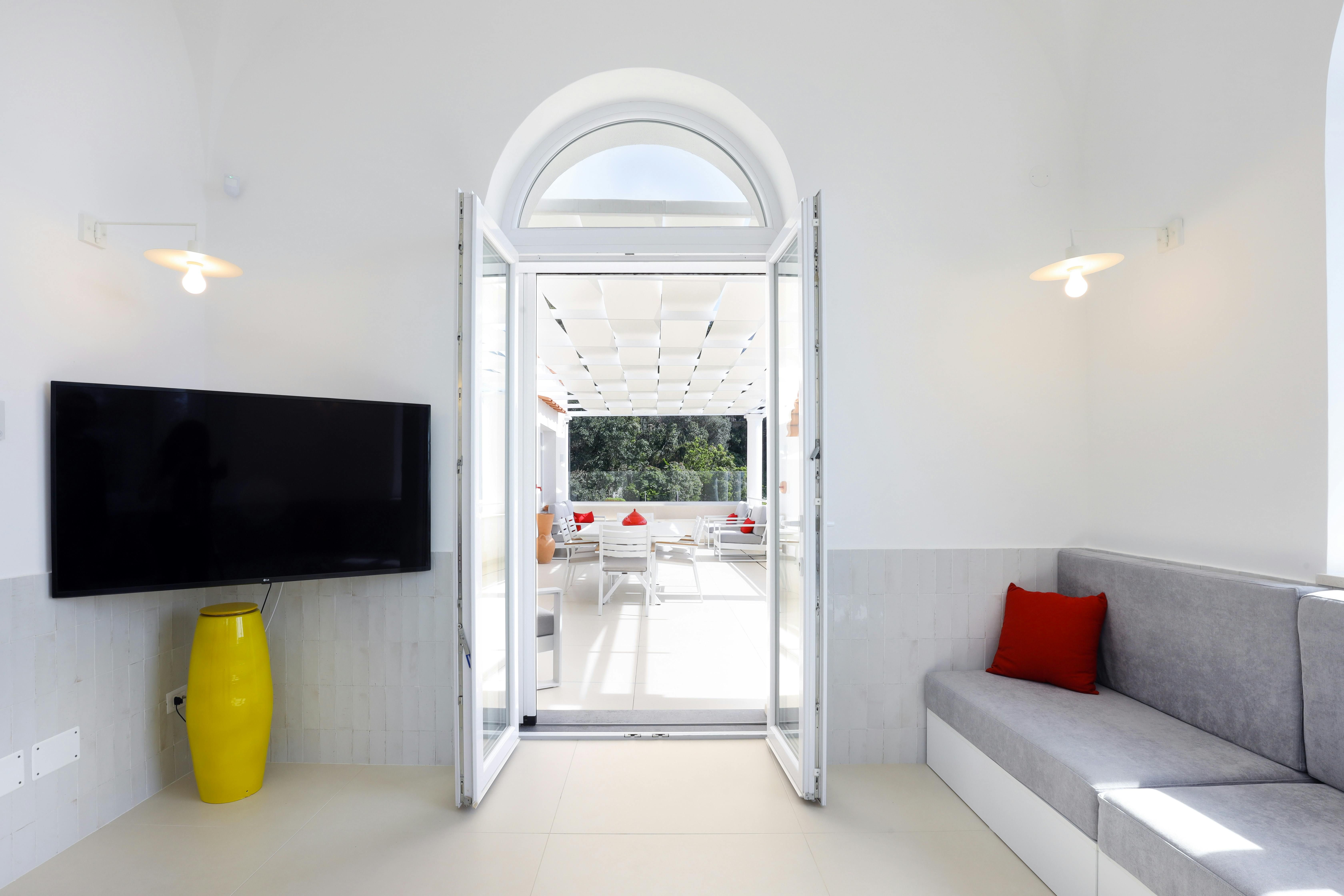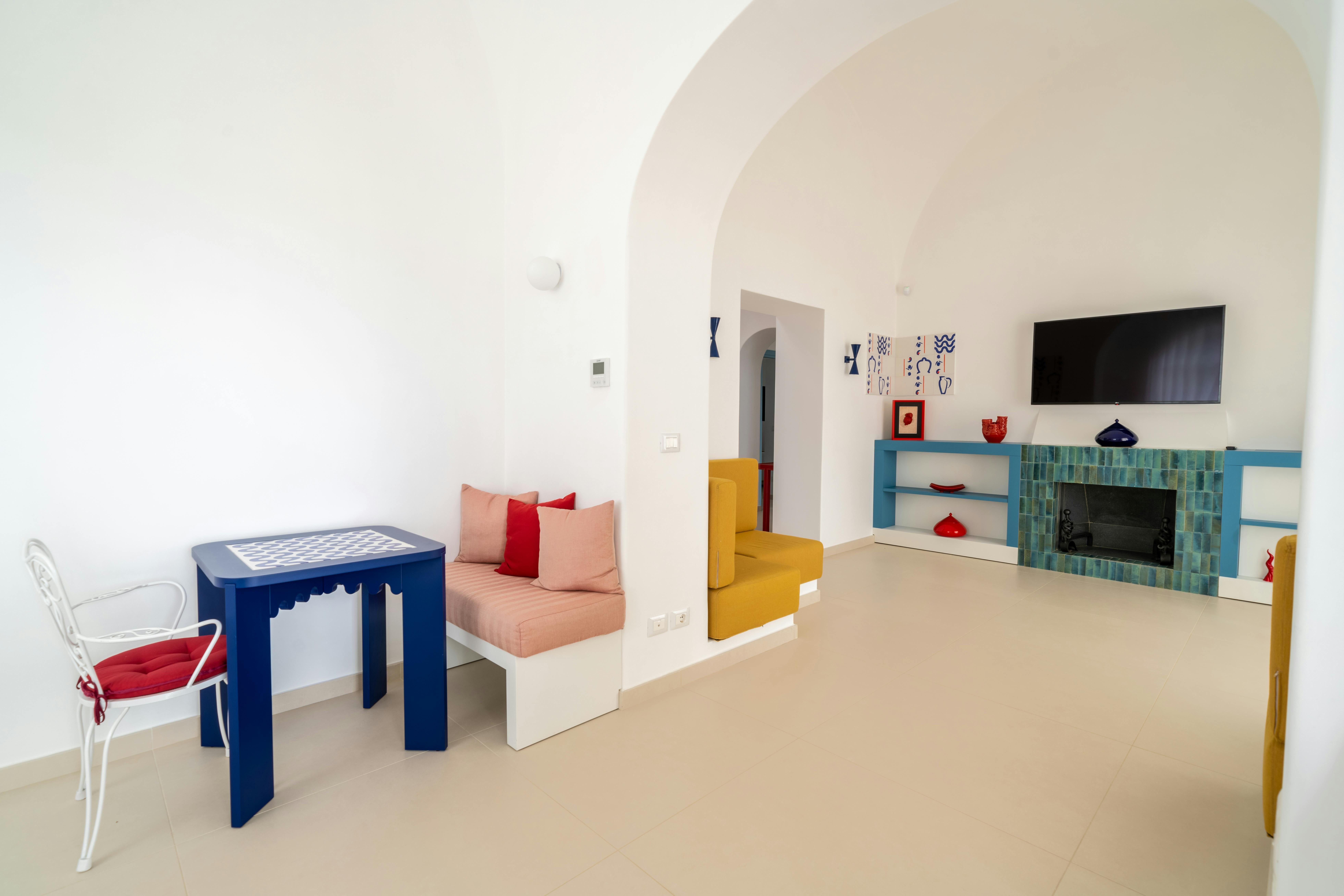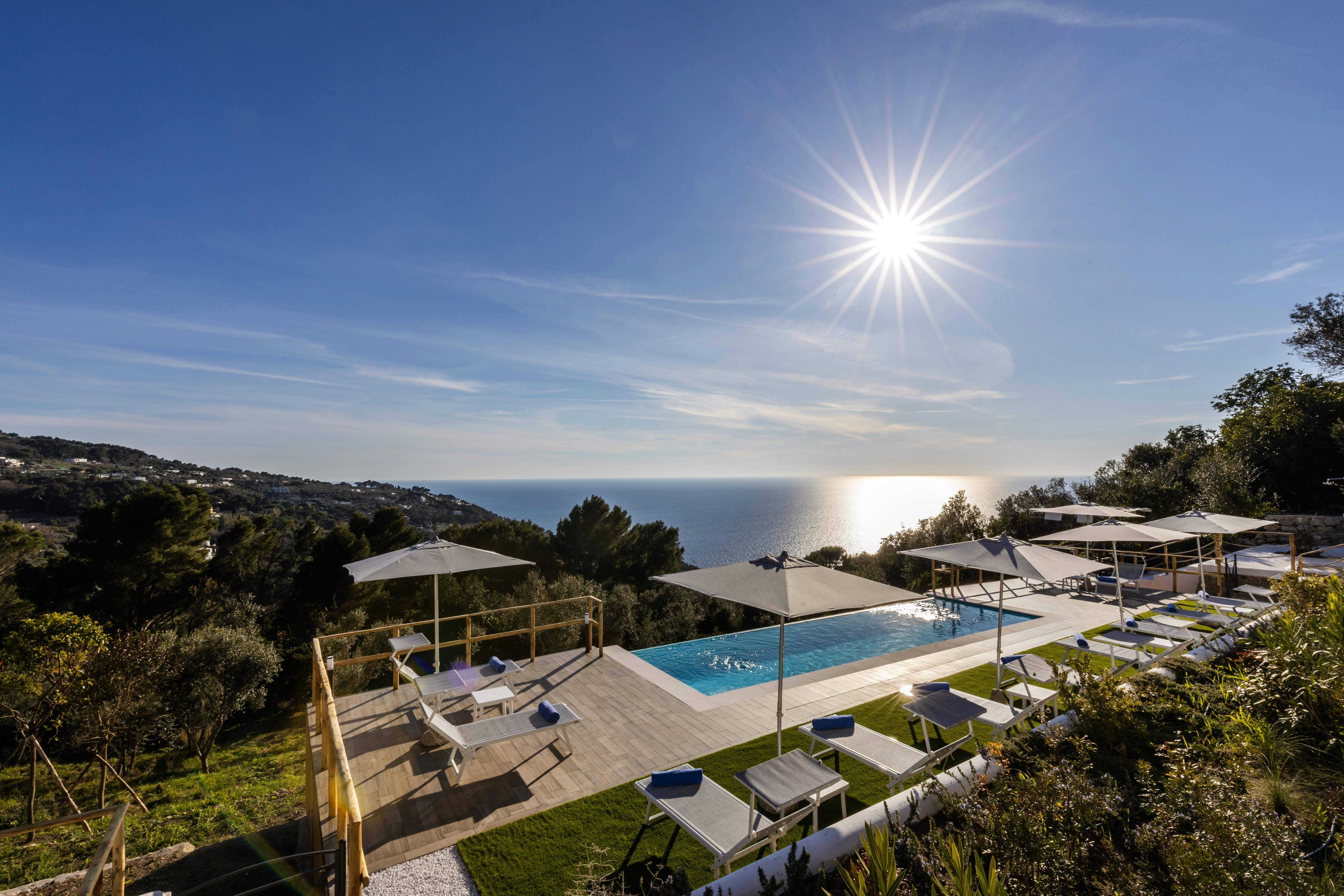 This beautiful villa boasts a glorious position in Anacapri, offering views of Mount Solaro and the sea. There’s a swimming pool, hot tub, and a terrace that’s perfect for alfresco dining. The verdant garden is full of olive and carob trees, and holm oaks – this is a tranquil, relaxing home. Inside, the contemporary villa is as cool as can be. We love the bold splashes of colour and the arched doorways and windows.