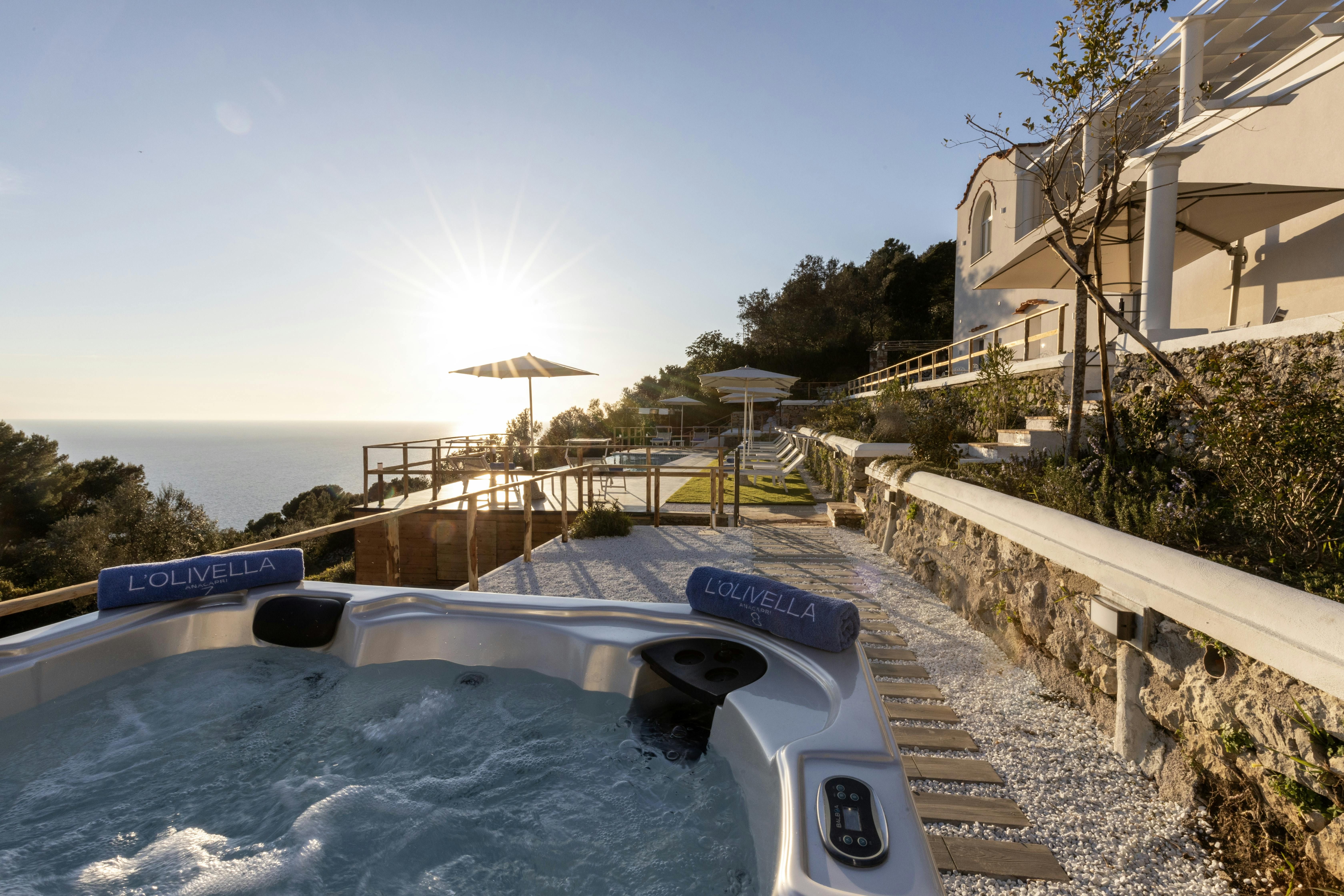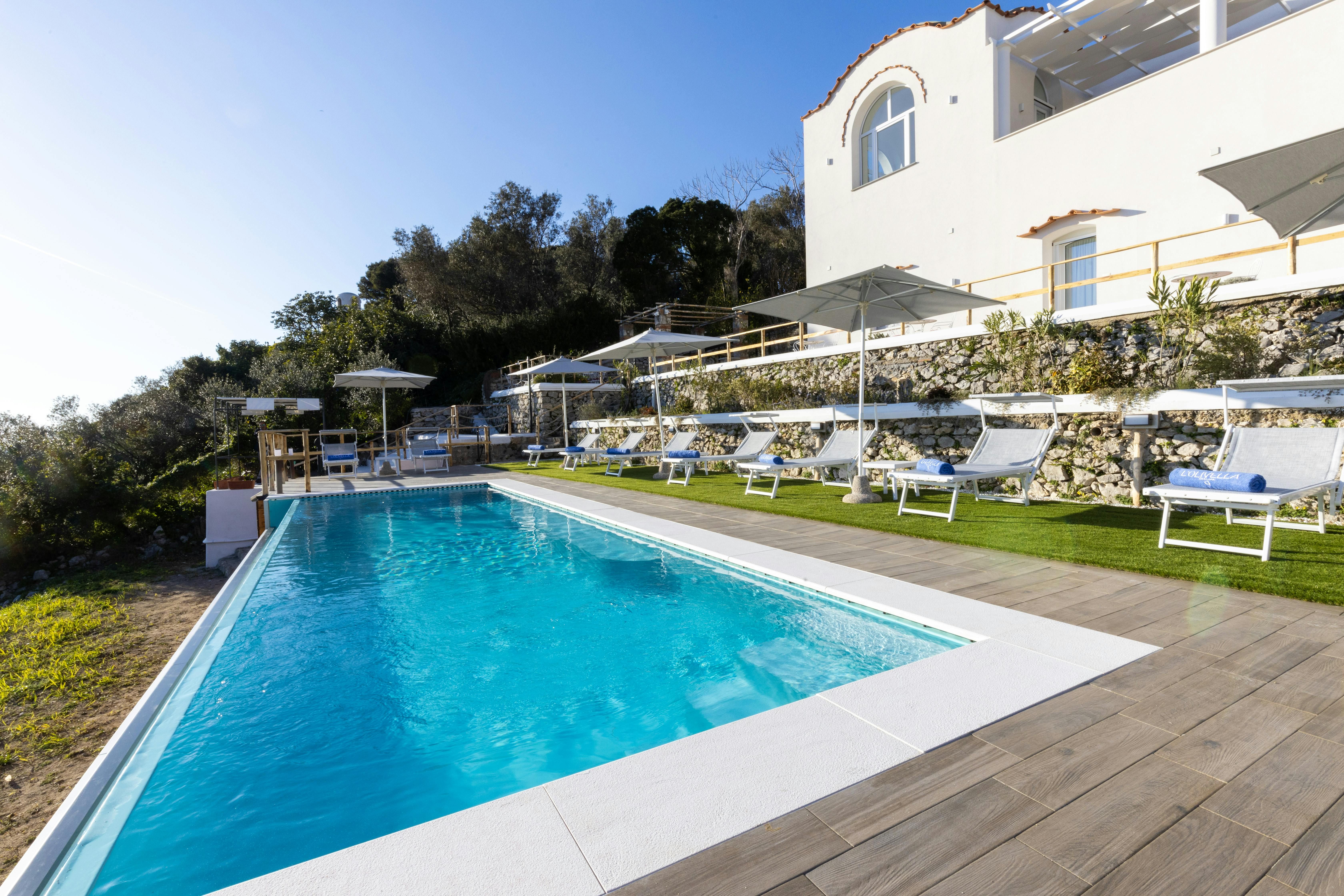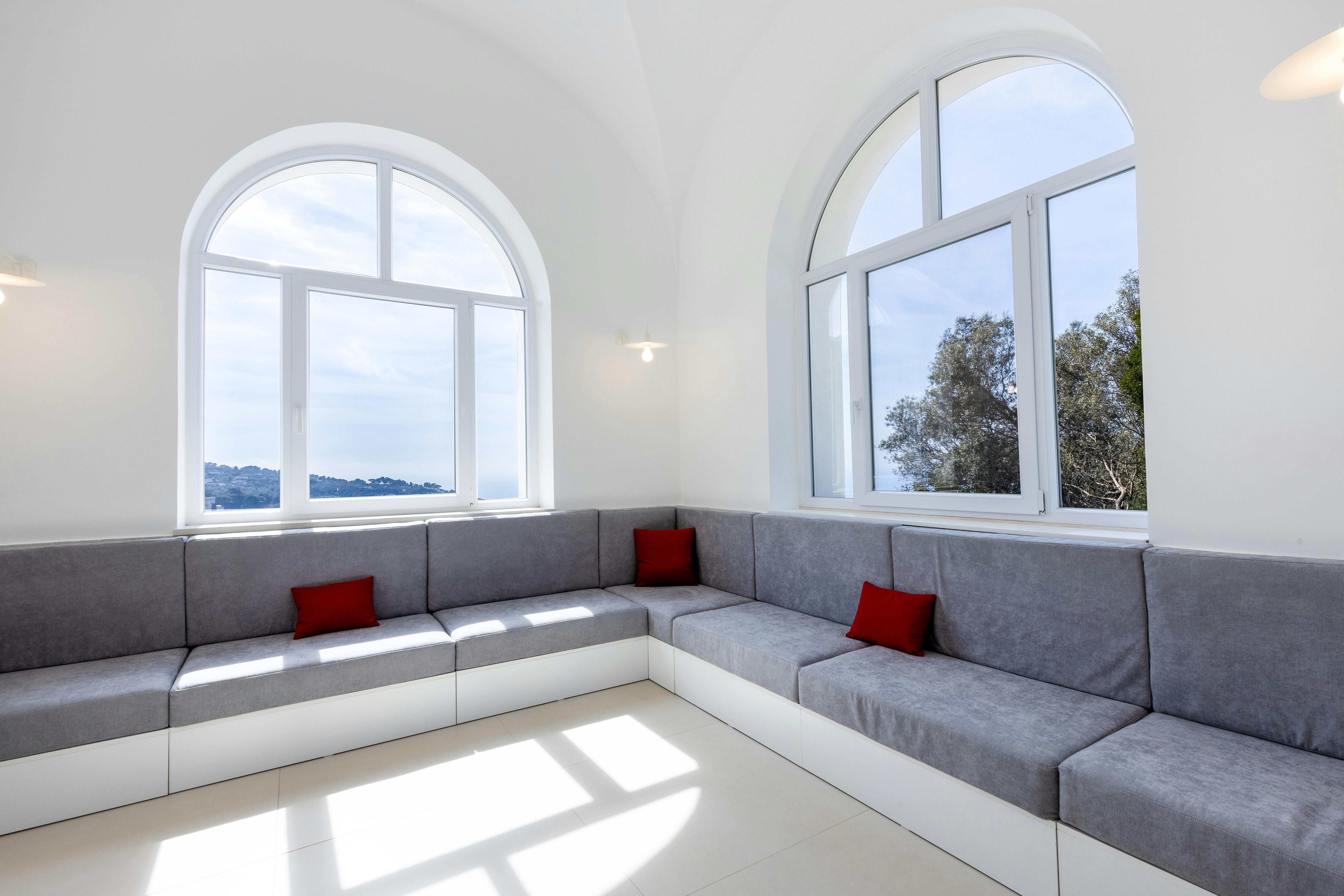 This beautiful villa boasts a glorious position in Anacapri, offering views of Mount Solaro and the sea. There’s a swimming pool, hot tub, and a terrace that’s perfect for alfresco dining. The verdant garden is full of olive and carob trees, and holm oaks – this is a tranquil, relaxing home. Inside, the contemporary villa is as cool as can be. We love the bold splashes of colour and the arched doorways and windows.