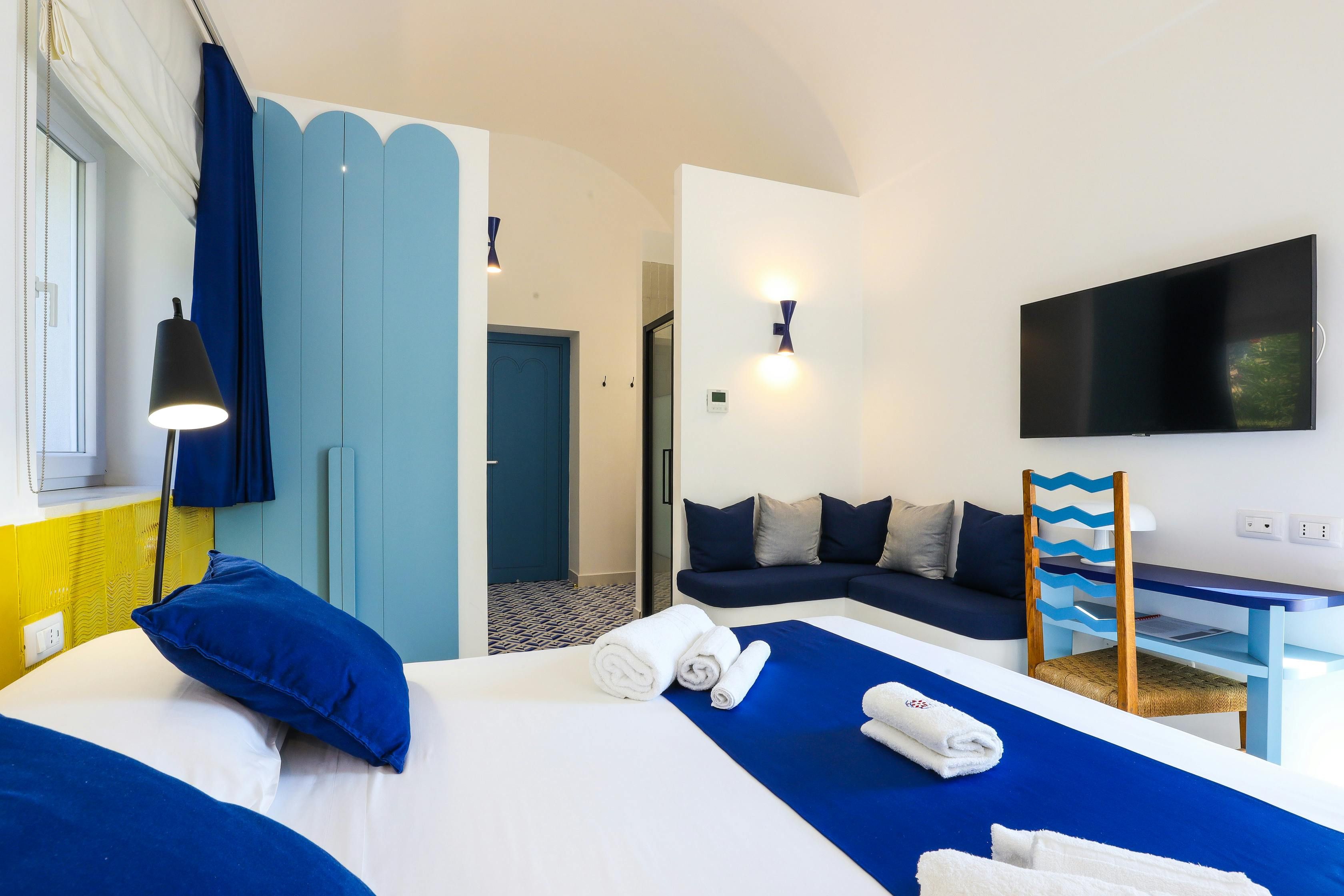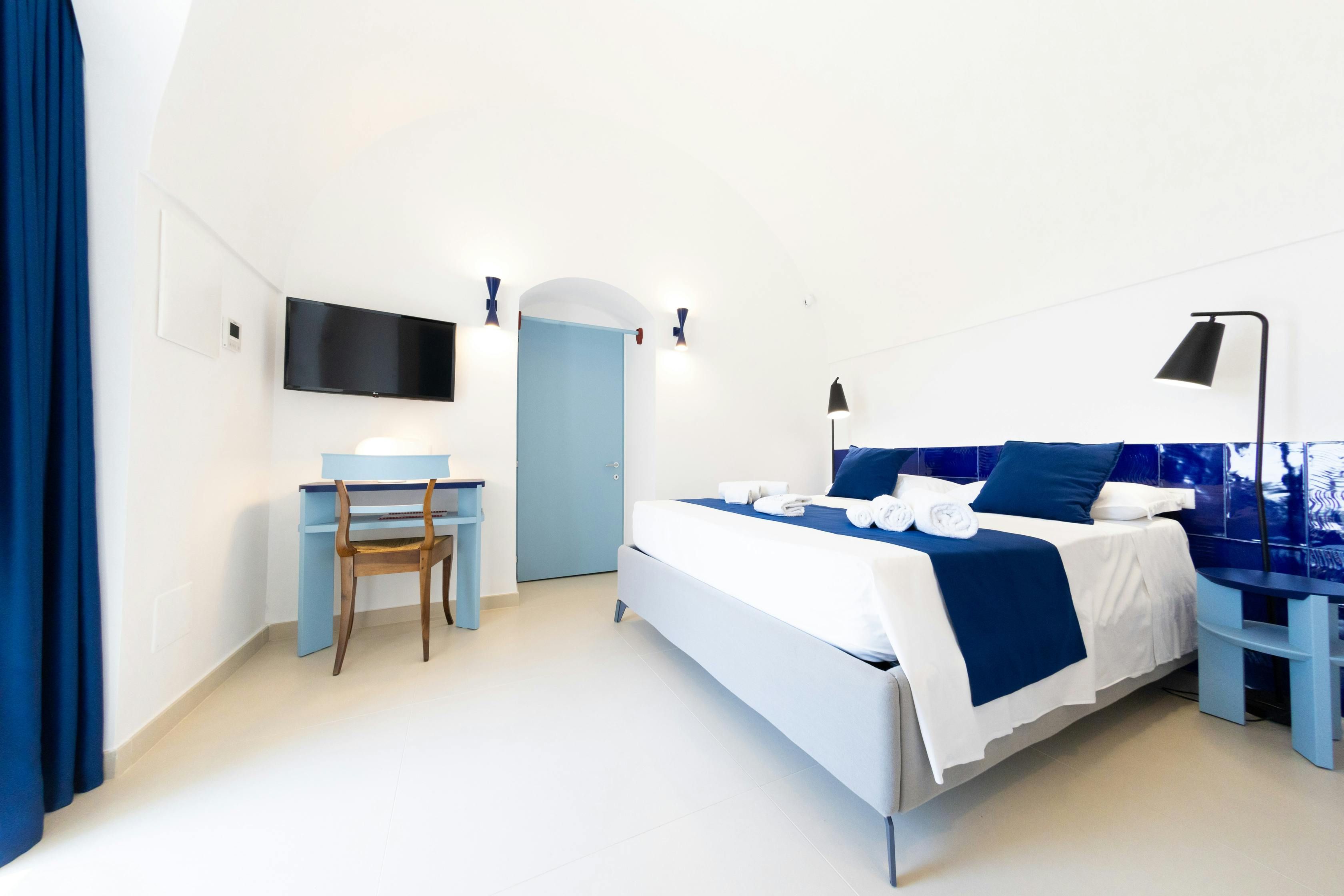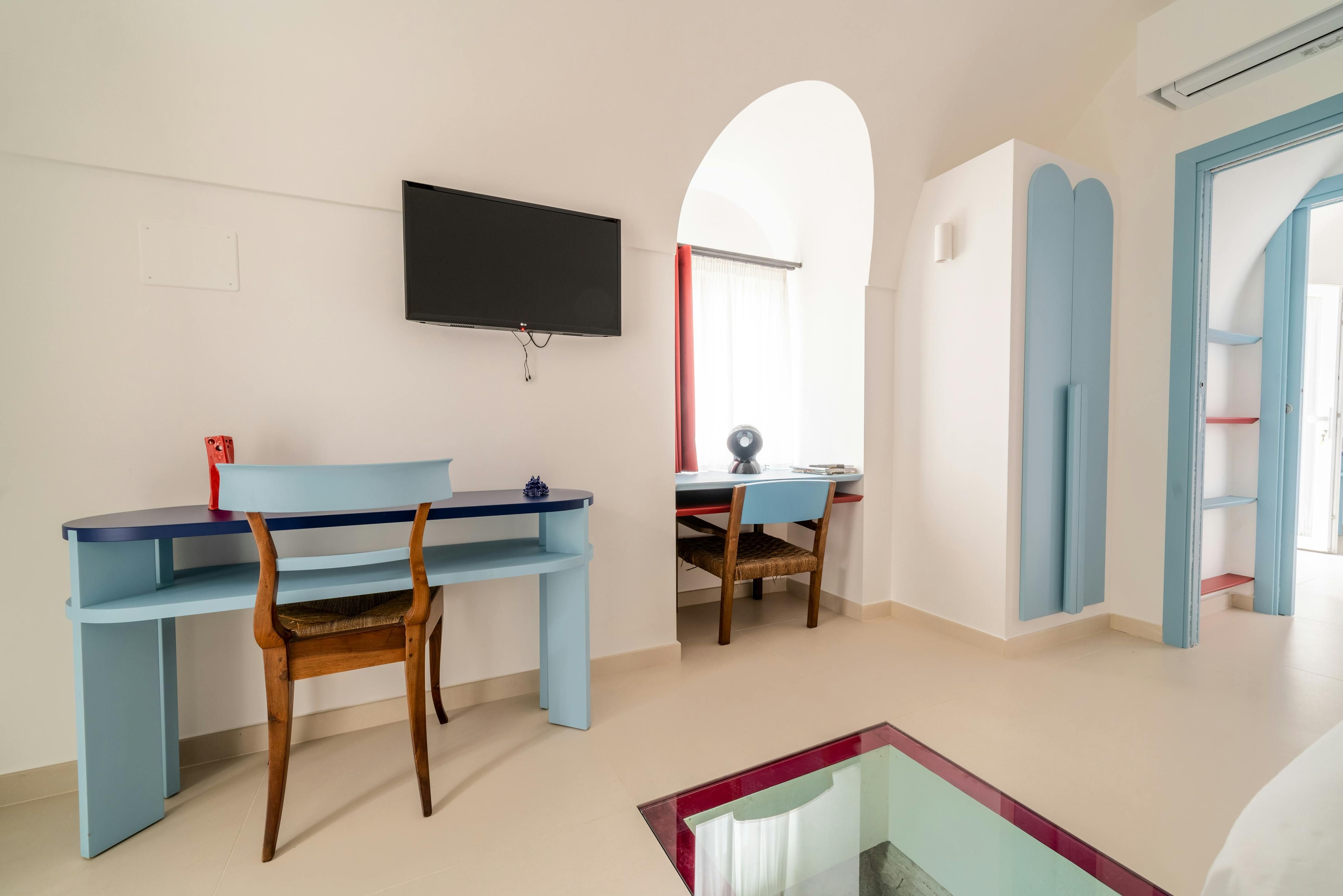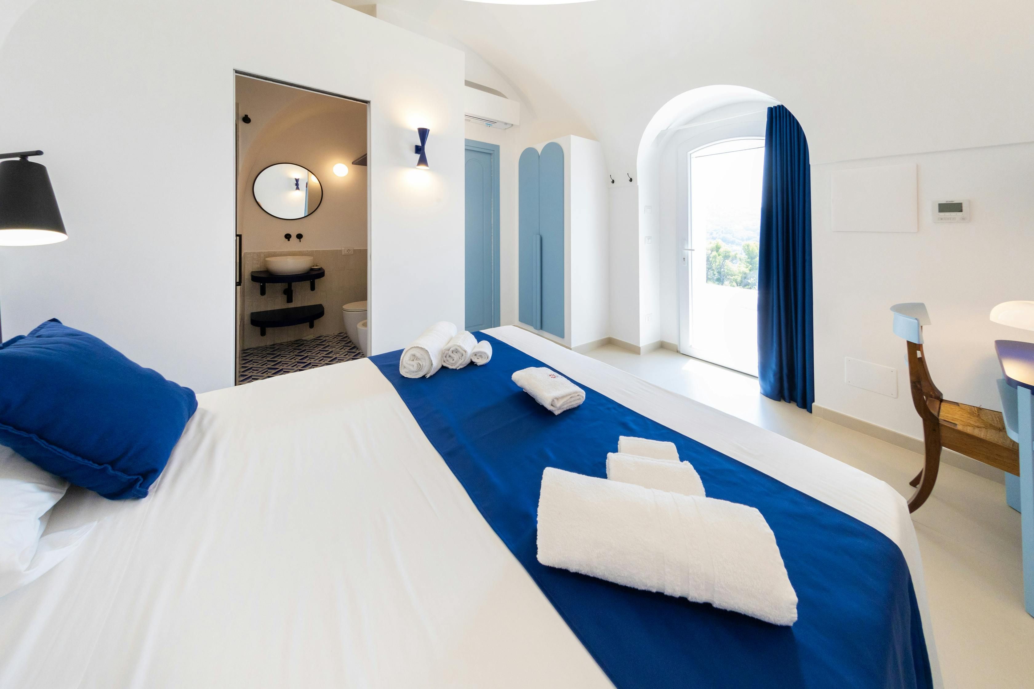 This beautiful villa boasts a glorious position in Anacapri, offering views of Mount Solaro and the sea. There’s a swimming pool, hot tub, and a terrace that’s perfect for alfresco dining. The verdant garden is full of olive and carob trees, and holm oaks – this is a tranquil, relaxing home. Inside, the contemporary villa is as cool as can be. We love the bold splashes of colour and the arched doorways and windows.