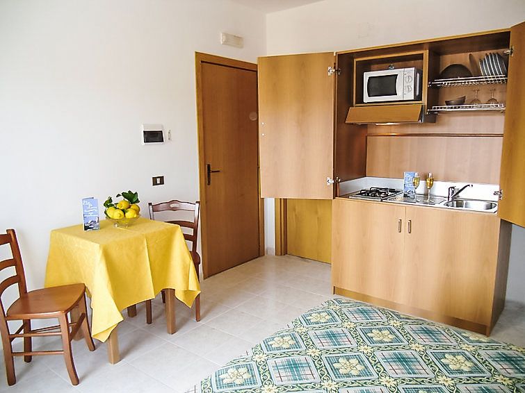 1-room apartment 20 m2. Simple and practical furnishings: 1 room with 1 french bed, dining table and TV (flat screen). Kitchenette (2 hot plates, microwave, freezer). Shower/bidet/WC. Air-conditioning, forced-air heating. Balcony. Balcony furniture. Facilities: hair dryer. Internet (WiFi, free).