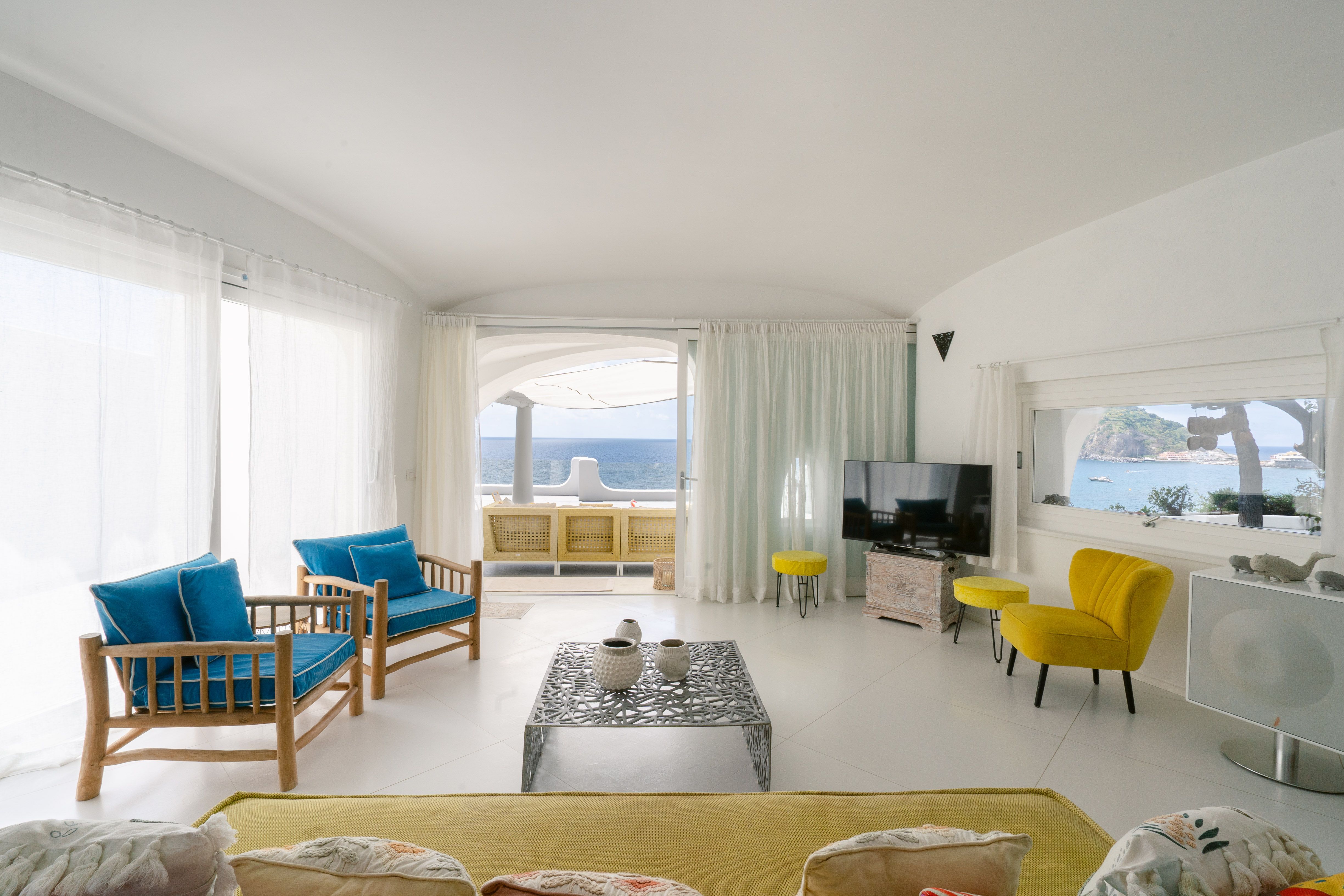 Perched right on the shores of Maronti Beach, the location of this villa is hard to beat. Everything is just a short stroll away – local trattorias, the ancient Roman thermal springs of Cava Scura, and the Aphrodite Thermal Park. That said, the villa itself will be hard to leave. Homely interiors pair colourful tiles with whitewashed walls, with the bedrooms divided between the main house and a detached guest suite. But the real showstopper? The outdoor spaces – tiered terraces for dining and lounging, and a pool that melts into the horizon. There’s a little garden too, complete with a ping pong table and shady corners for afternoon dozing.