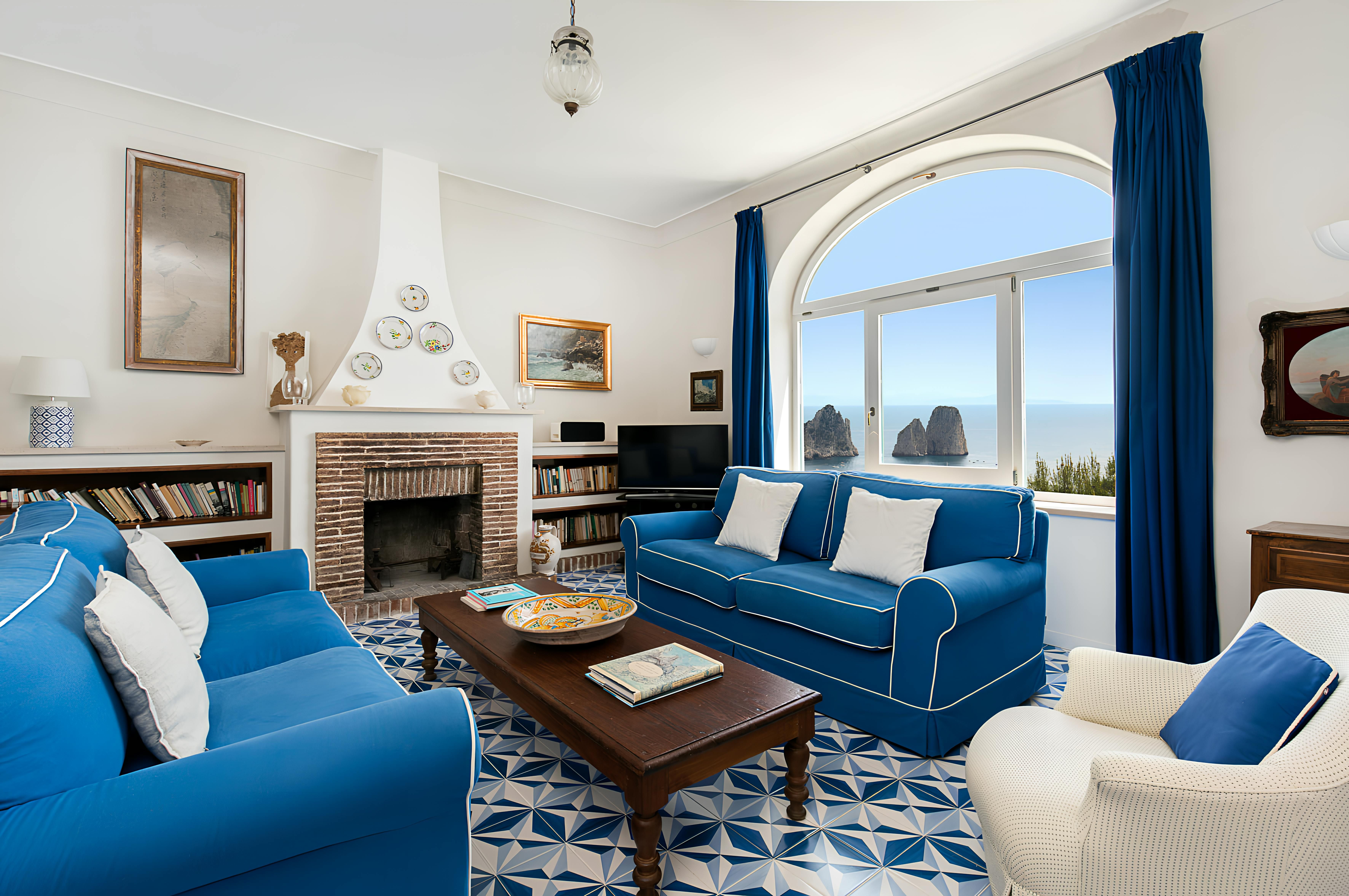 With breathtaking views of the sea and Faraglioni Island, it's no wonder this villa has a creative past. It's the former hideaway of Virgilio Lilli, a renowned Italian painter and journalist. As much as we love the Caprese character indoors – think blue and white tiles, exposed stone, and large windows showing off the scenery – it's the outdoor space that really packs a punch. Spend the afternoons by the private pool, tuck into an alfresco feast while watching the boats sail past, or retreat to the lemon grove for some peace and quiet. Keen to explore the island? The famous Piazzetta is a fifteen-minute stroll away, and the beach is walkable in thirty.