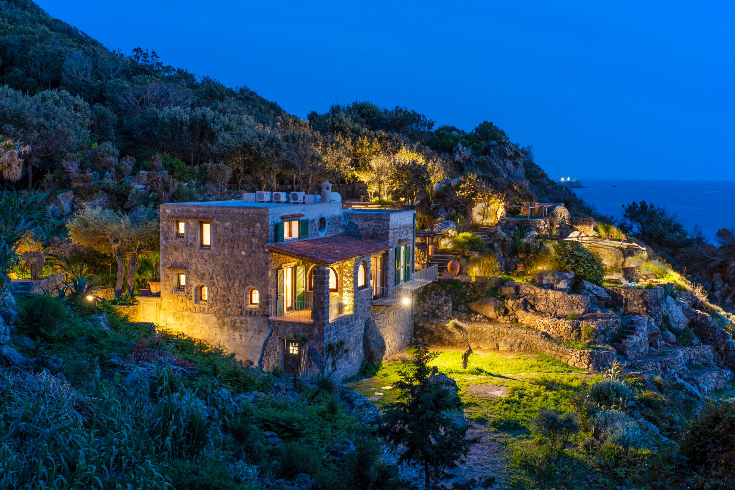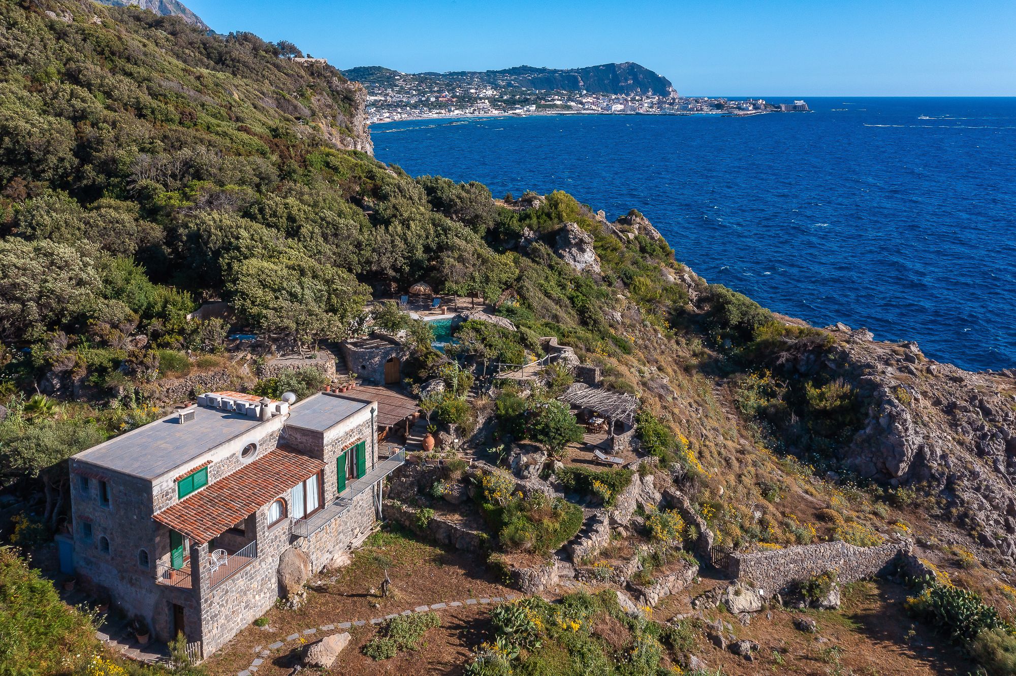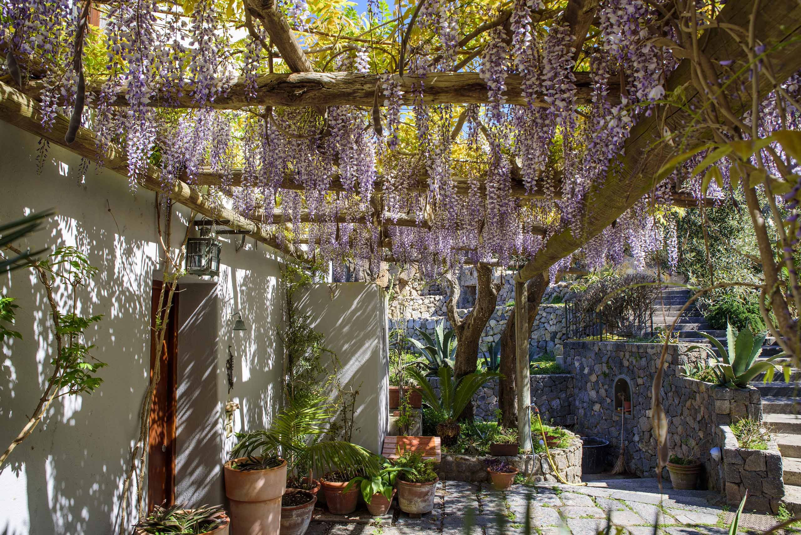 This stunning home is situated between the sea and the woods, in a tranquil spot on the island of Ischia. Drink in sea views and vistas of San Francesco Bay, Forio, and Ventotene from the sun loungers, the alfresco dining area, and the other pretty corners of the garden. There’s a Jacuzzi with sea views on the upper terrace, and a path leads directly to the sea. The villa is cheerful and pretty, with splashes of blue bringing the sea inside.