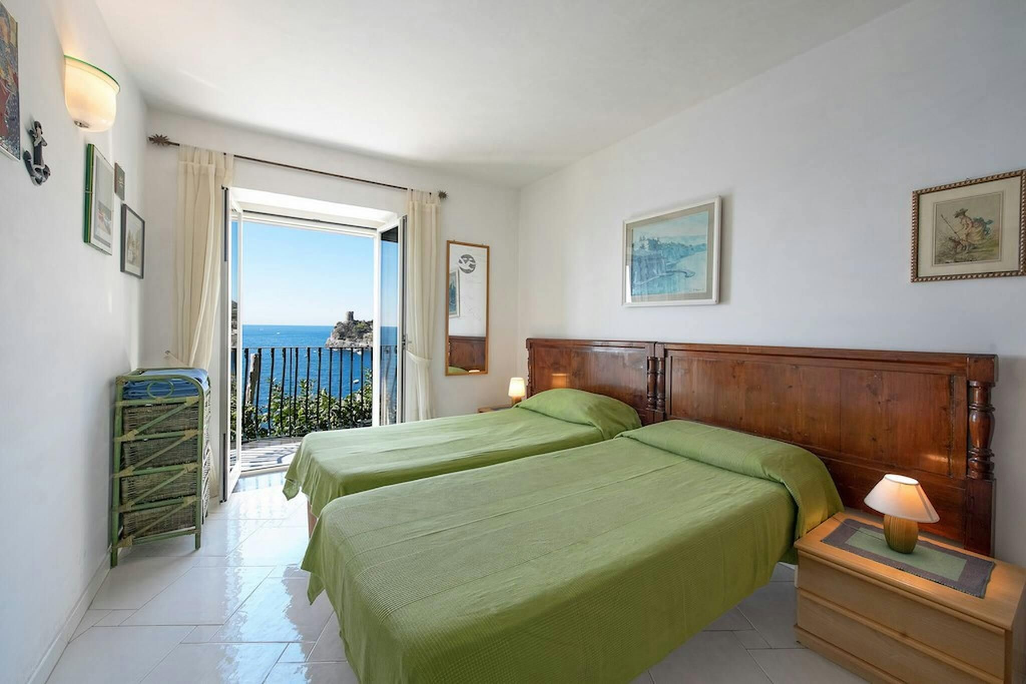 Escape to the Amalfi Coast in this welcoming villa by the sea. It's packed with charm, boasts panoramic views, and puts you a stone's throw from Praiano. The design is definitely traditional – it won't suit those who prefer more contemporary abodes – but multiple lounges (including one with a sofa bed) and a fitness room make it easy to settle in. Outside, the terrace is an ideal spot to enjoy a sundowner or Italian meal. There's also a swimming pool, though it's shared with a nearby villa. Lastly, you'll have access to a small communal platform right on the Mediterranean – just note the 135 steps to get there.