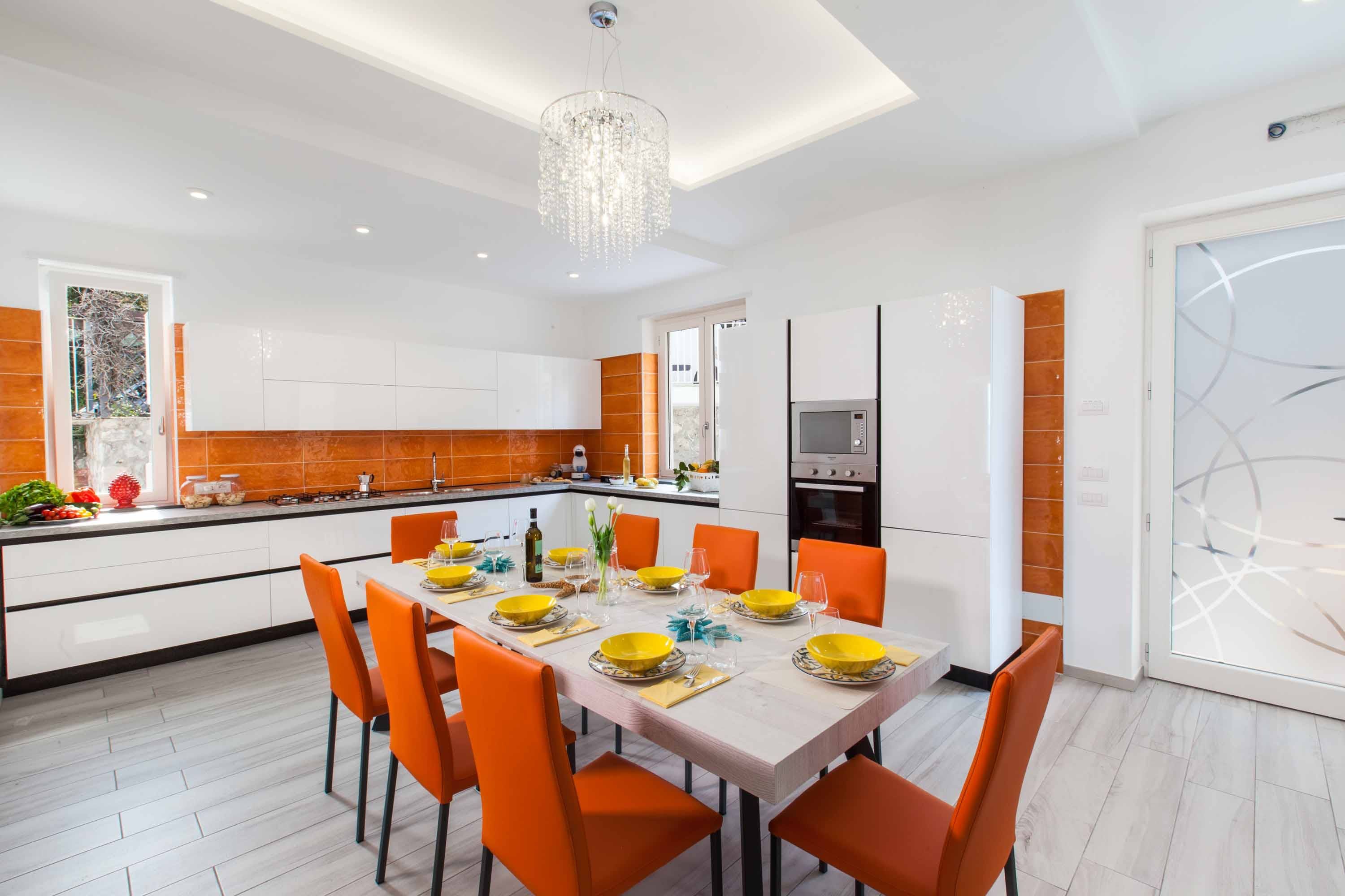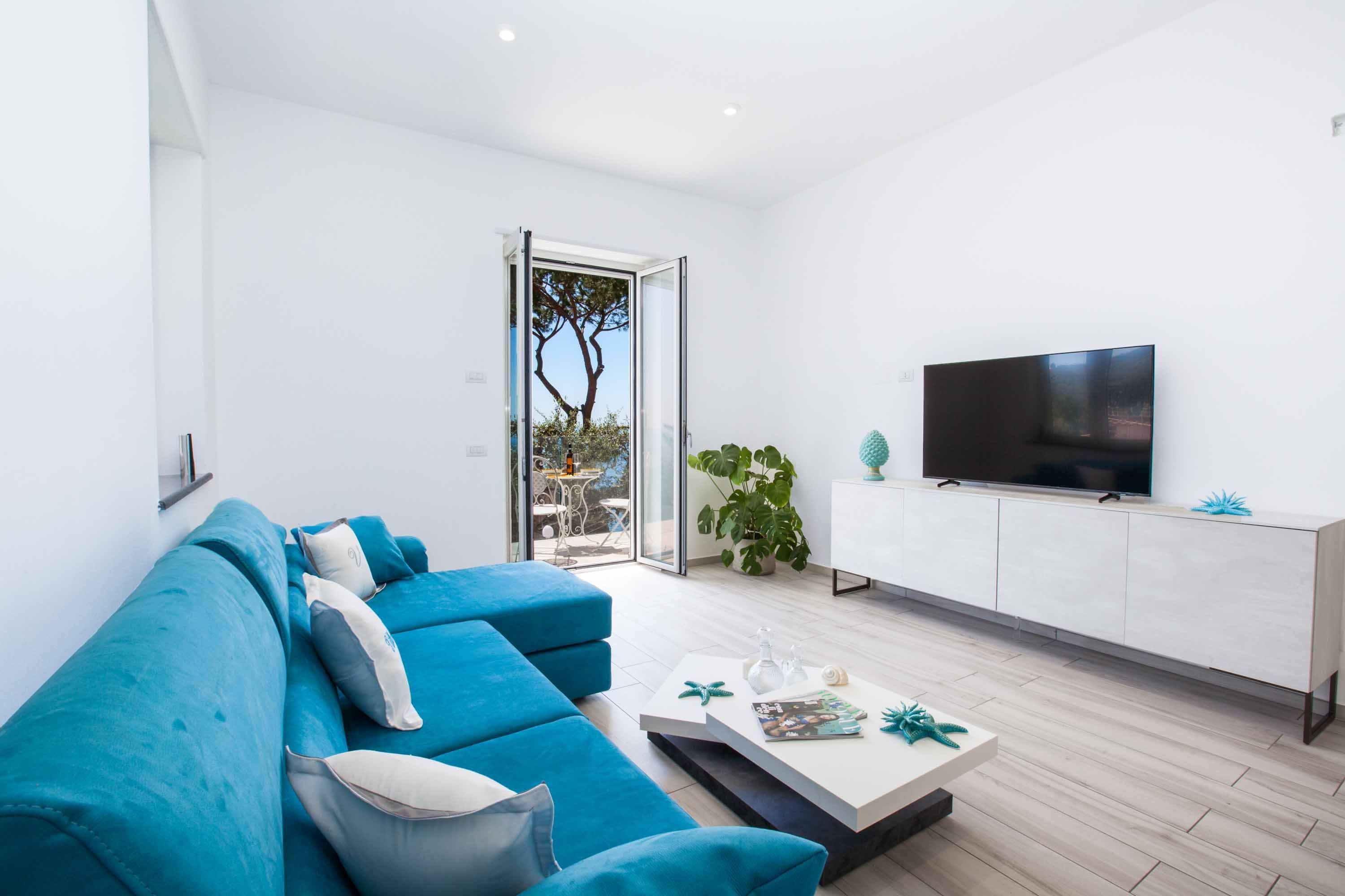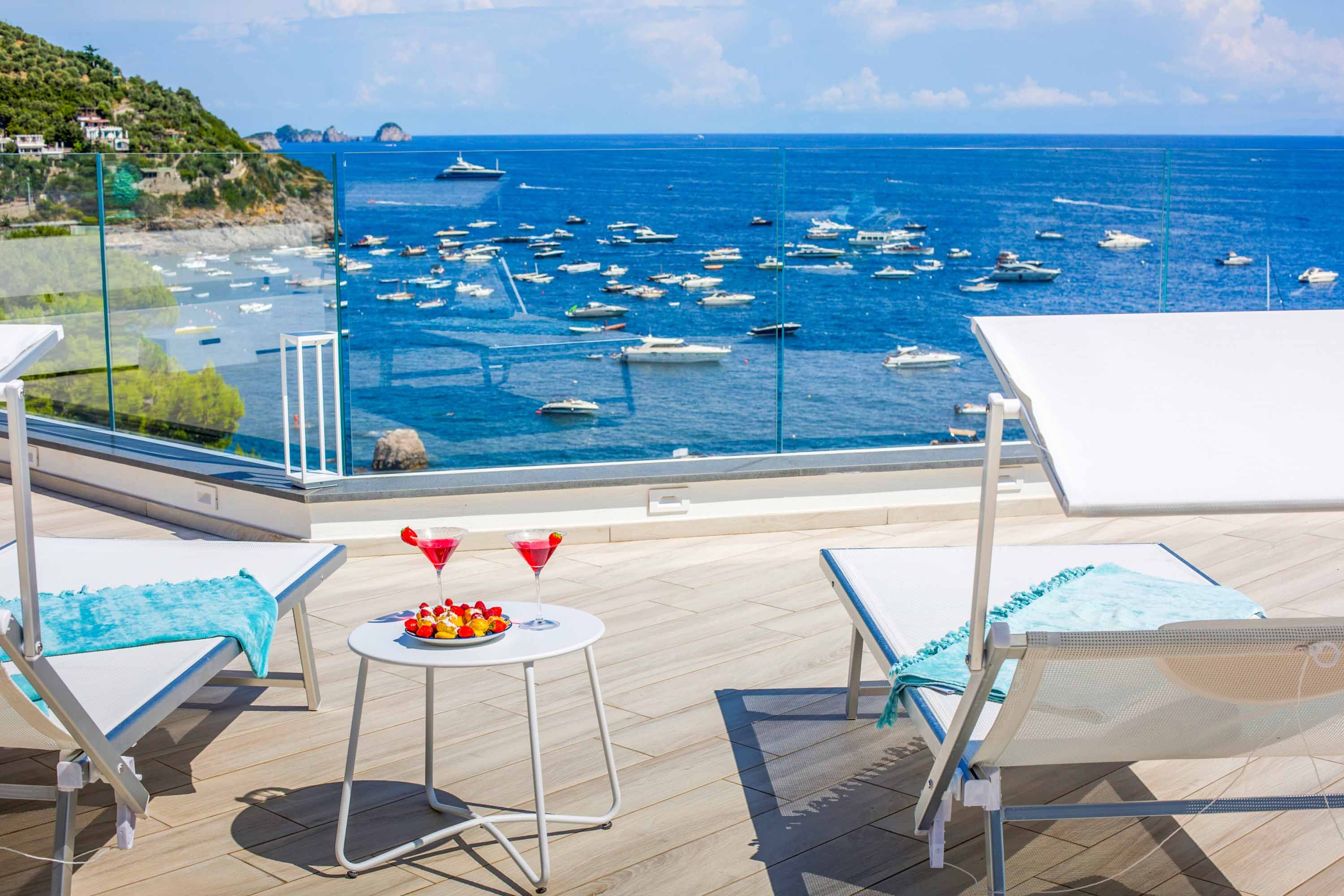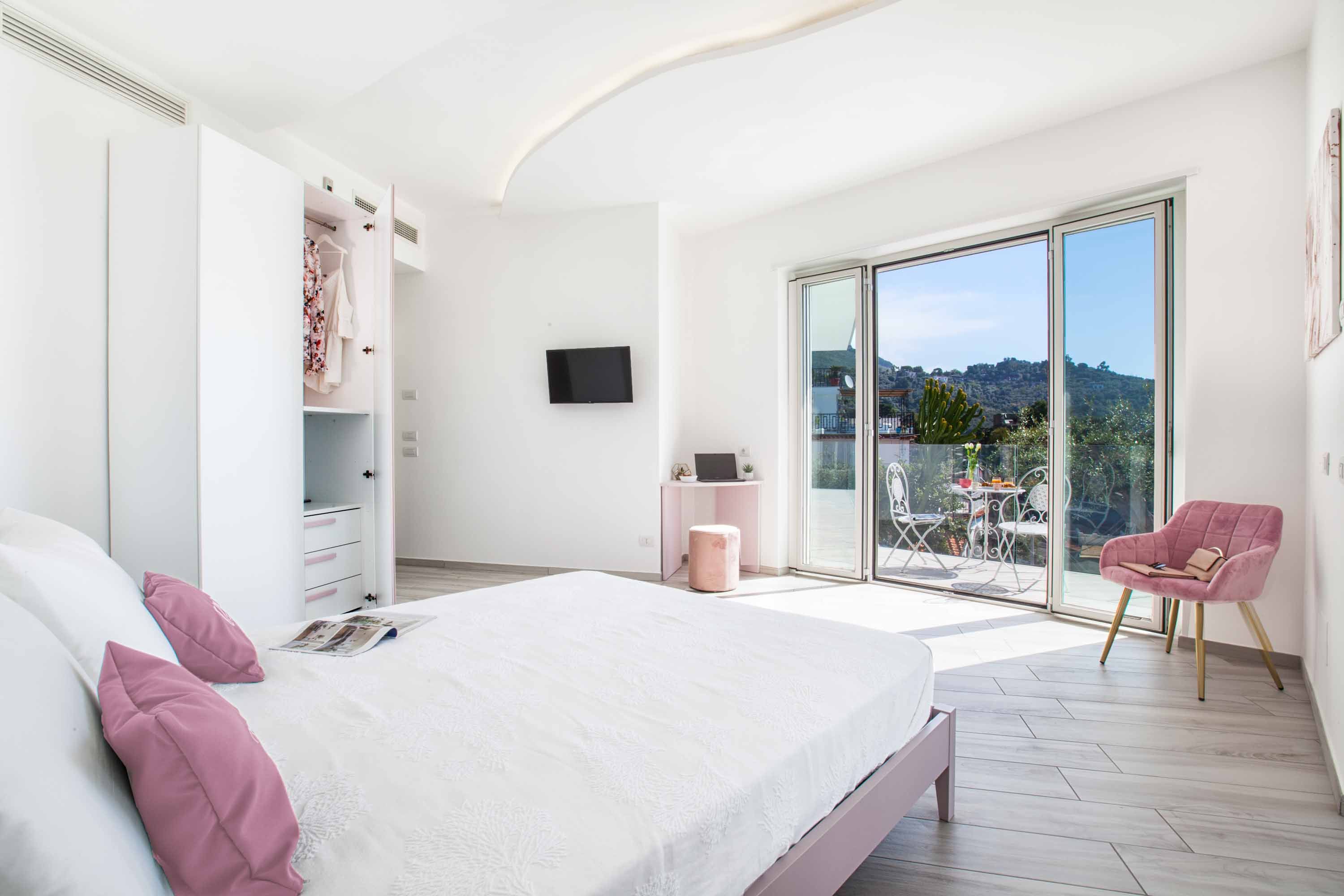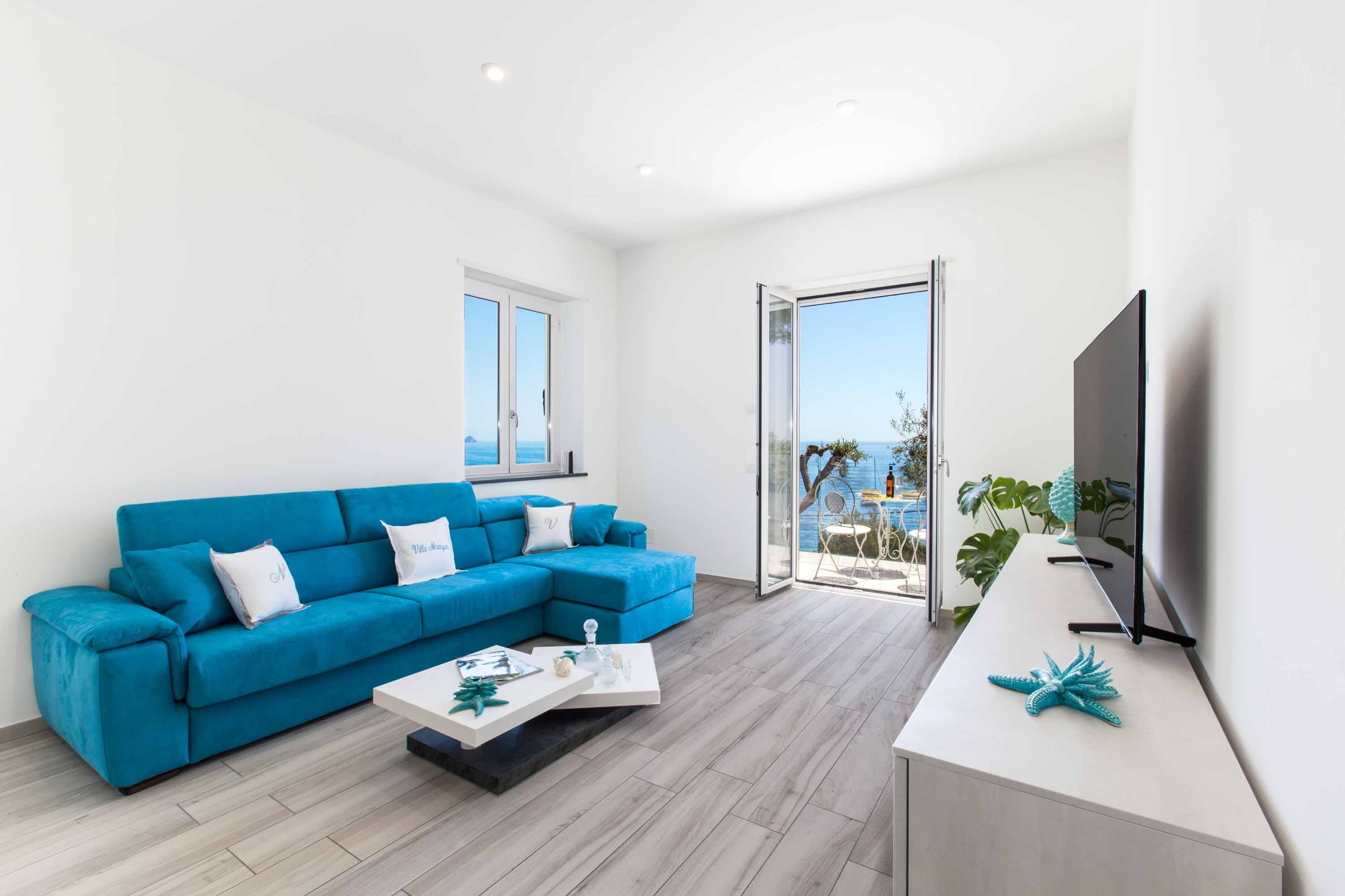Just outside of the charming village of Nerano, this exquisite villa offers incredible views over the Tyrrhenian Sea. A stone’s throw from rows of authentic seafood restaurants and a pretty pebble beach, a great time can be had close to home, but we recommend renting a car so you can enjoy day drips to Massa Lubrenese and Sorrento. The villa itself boasts several terraces and balconies, so you can take in the mountainscapes from several spots, from the balcony to the luxurious Jacuzzi. There’s even an outdoor gym if you’re keen on keeping up the fitness routine, and a kidney-shaped pool in the garden.