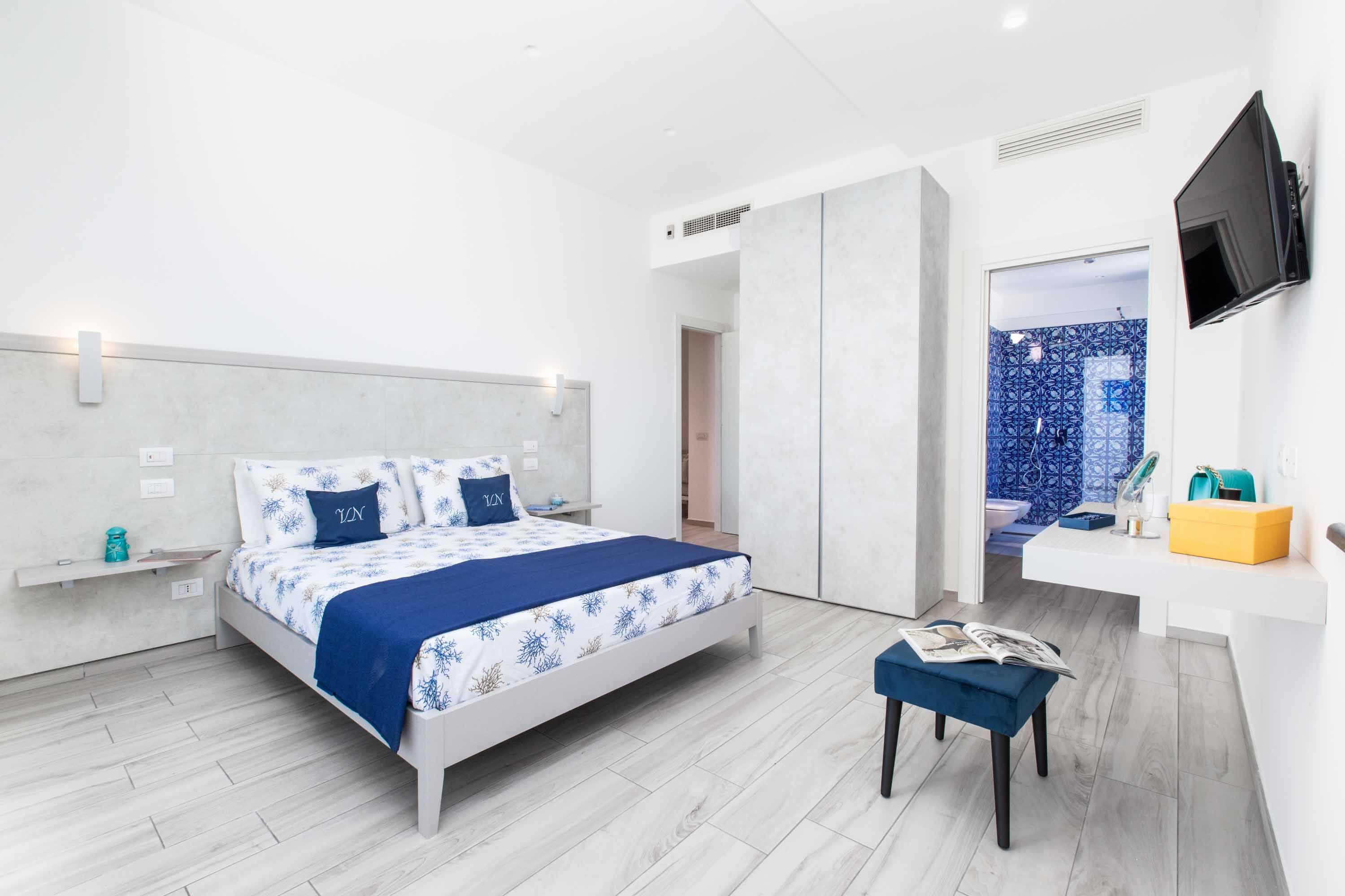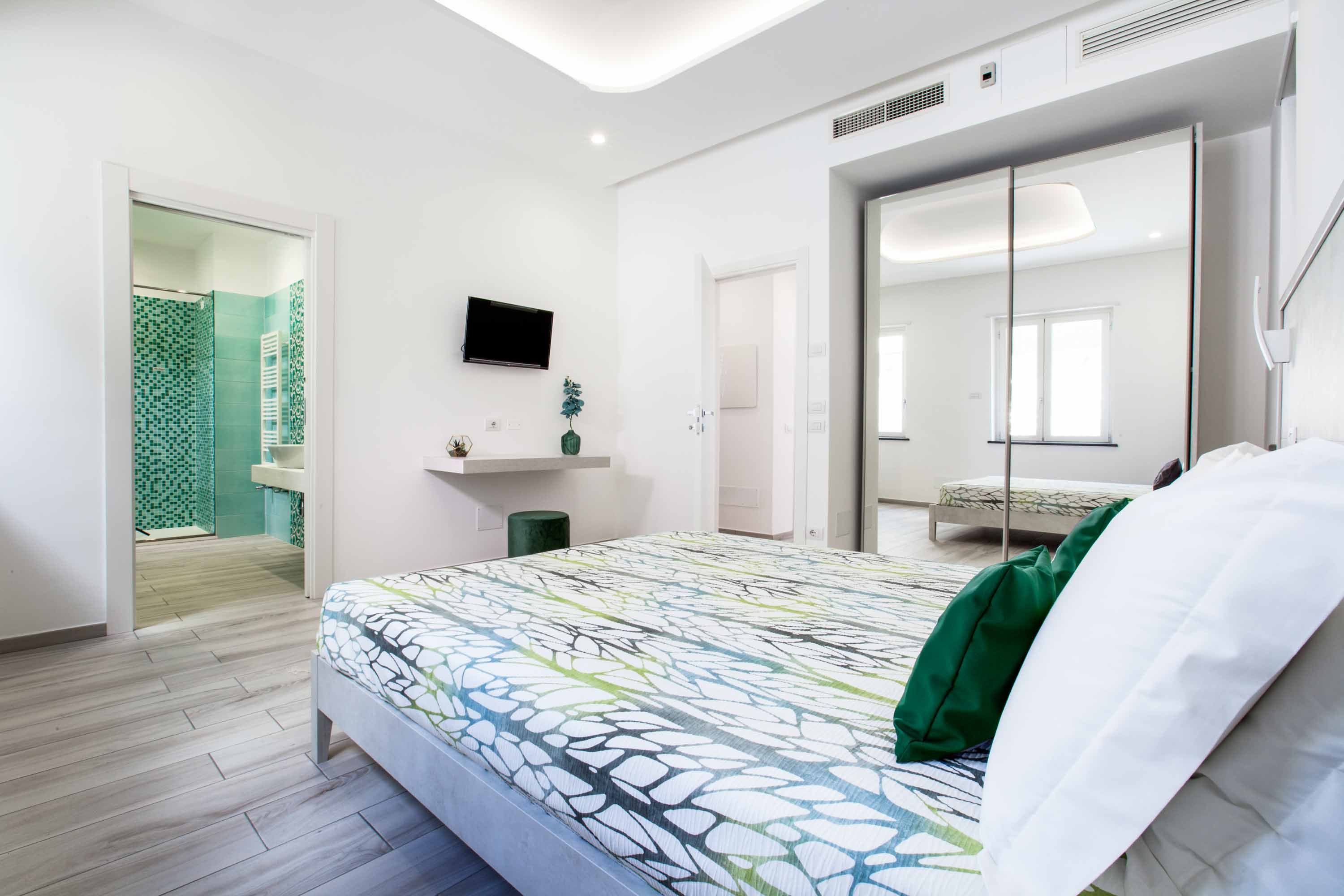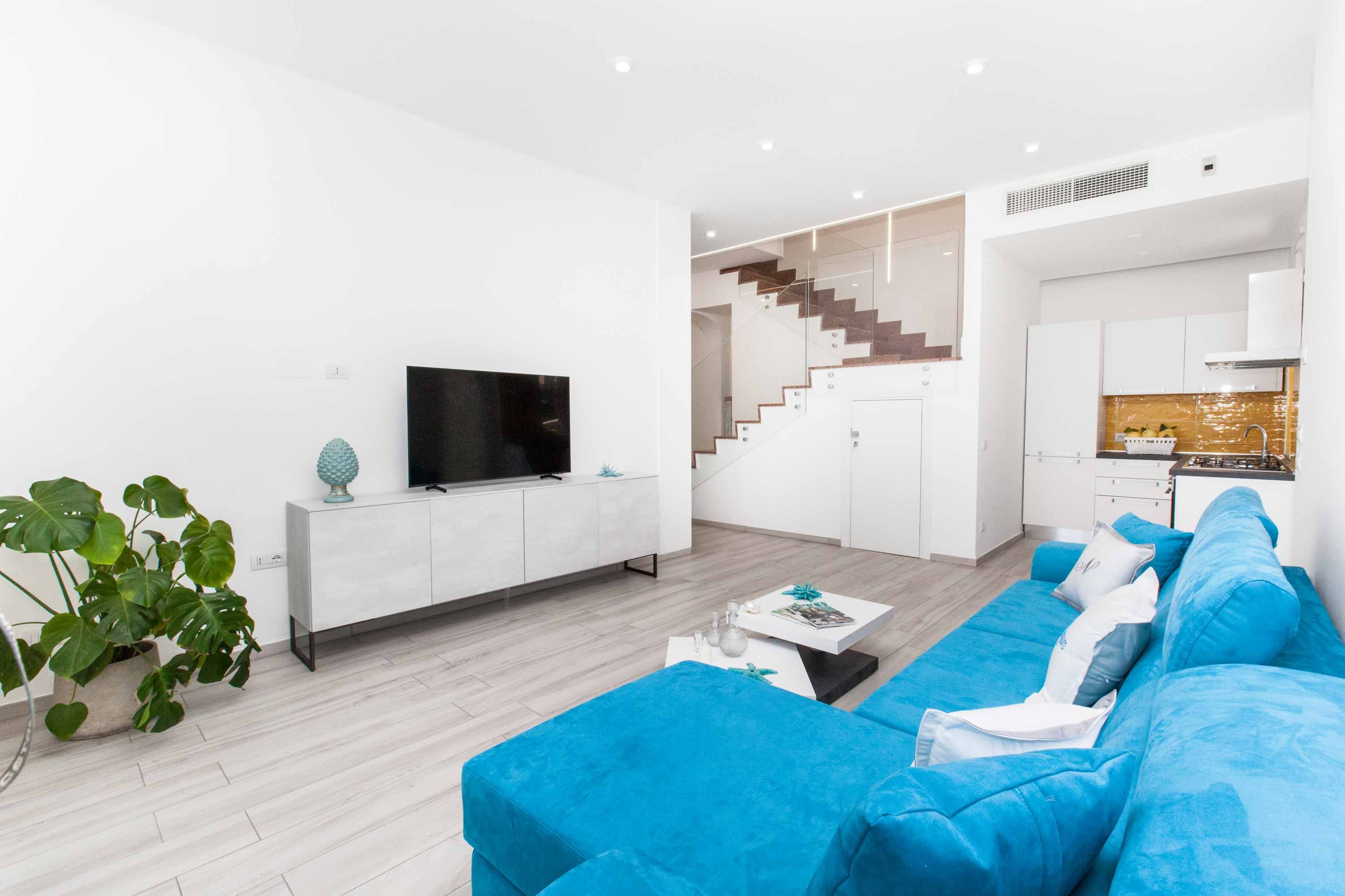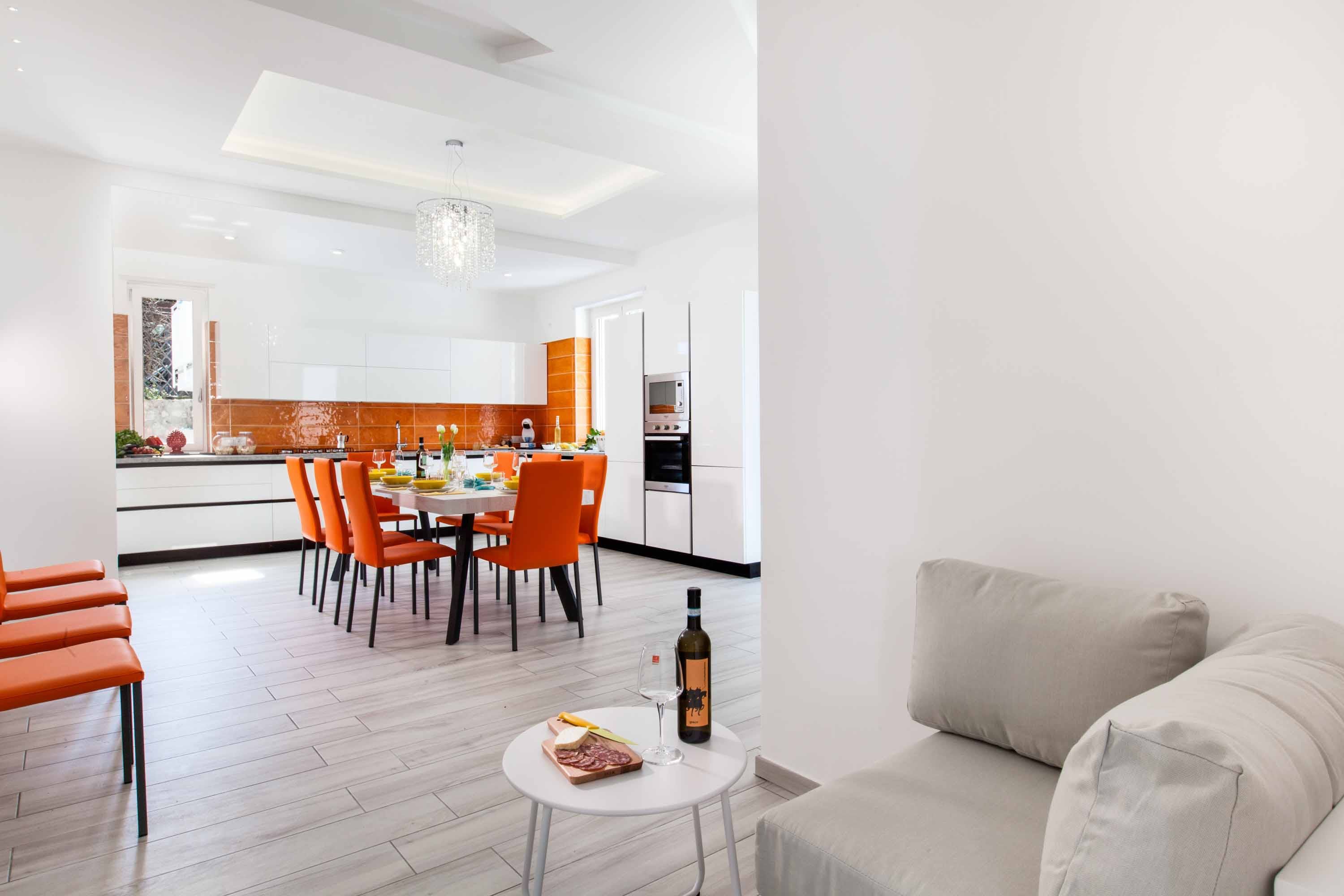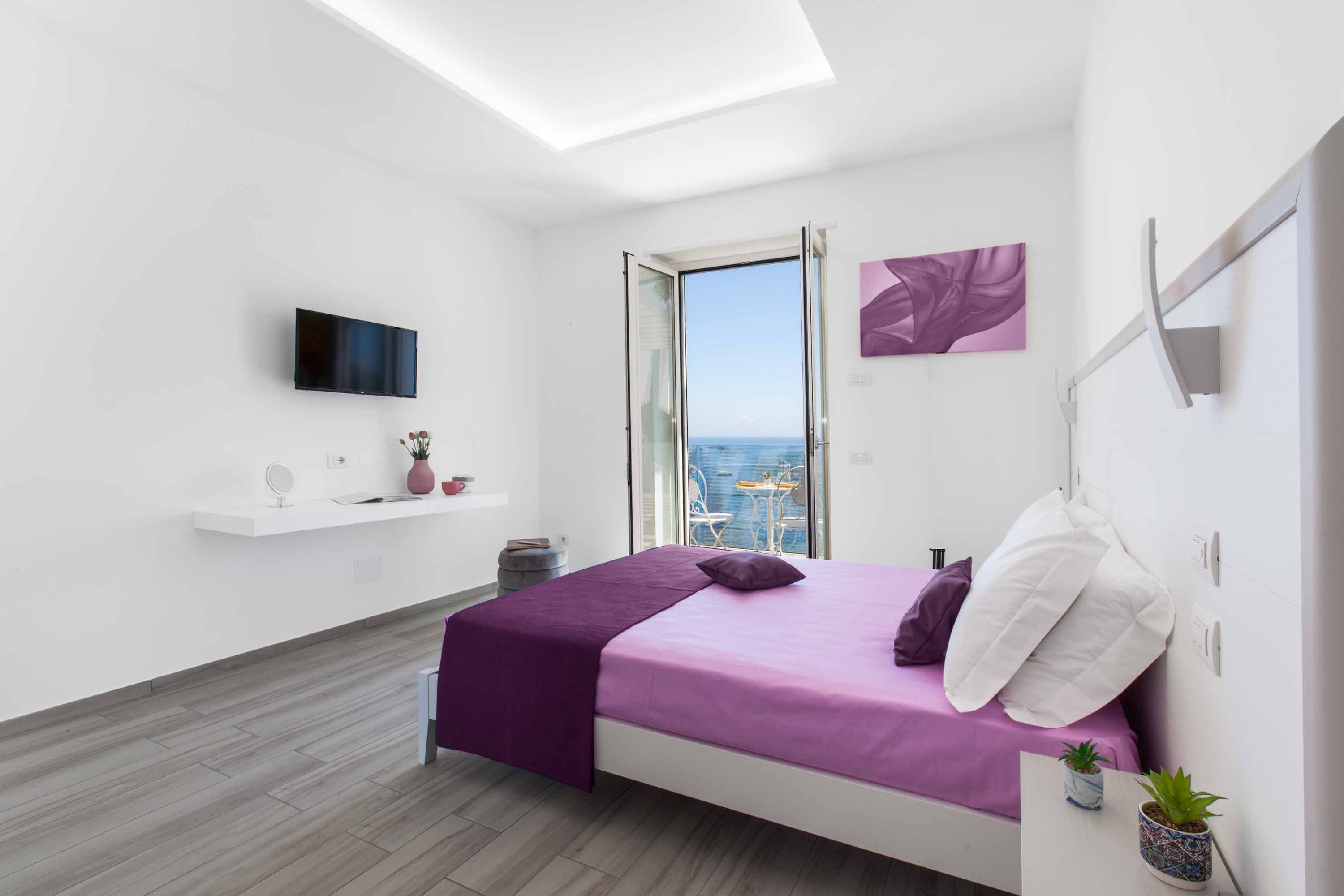 Just outside of the charming village of Nerano, this exquisite villa offers incredible views over the Tyrrhenian Sea. A stone’s throw from rows of authentic seafood restaurants and a pretty pebble beach, a great time can be had close to home, but we recommend renting a car so you can enjoy day drips to Massa Lubrenese and Sorrento. The villa itself boasts several terraces and balconies, so you can take in the mountainscapes from several spots, from the balcony to the luxurious Jacuzzi. There’s even an outdoor gym if you’re keen on keeping up the fitness routine, and a kidney-shaped pool in the garden.