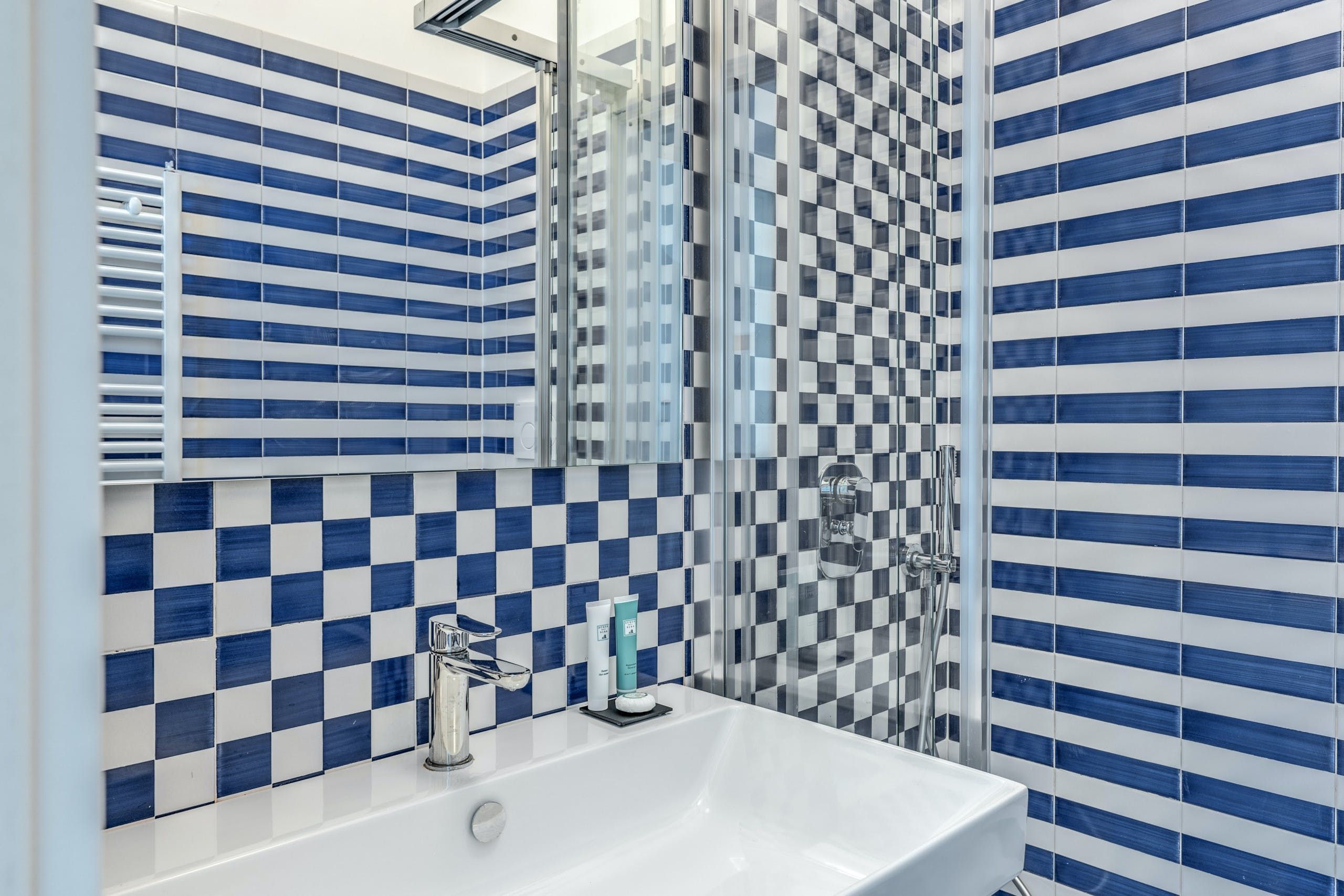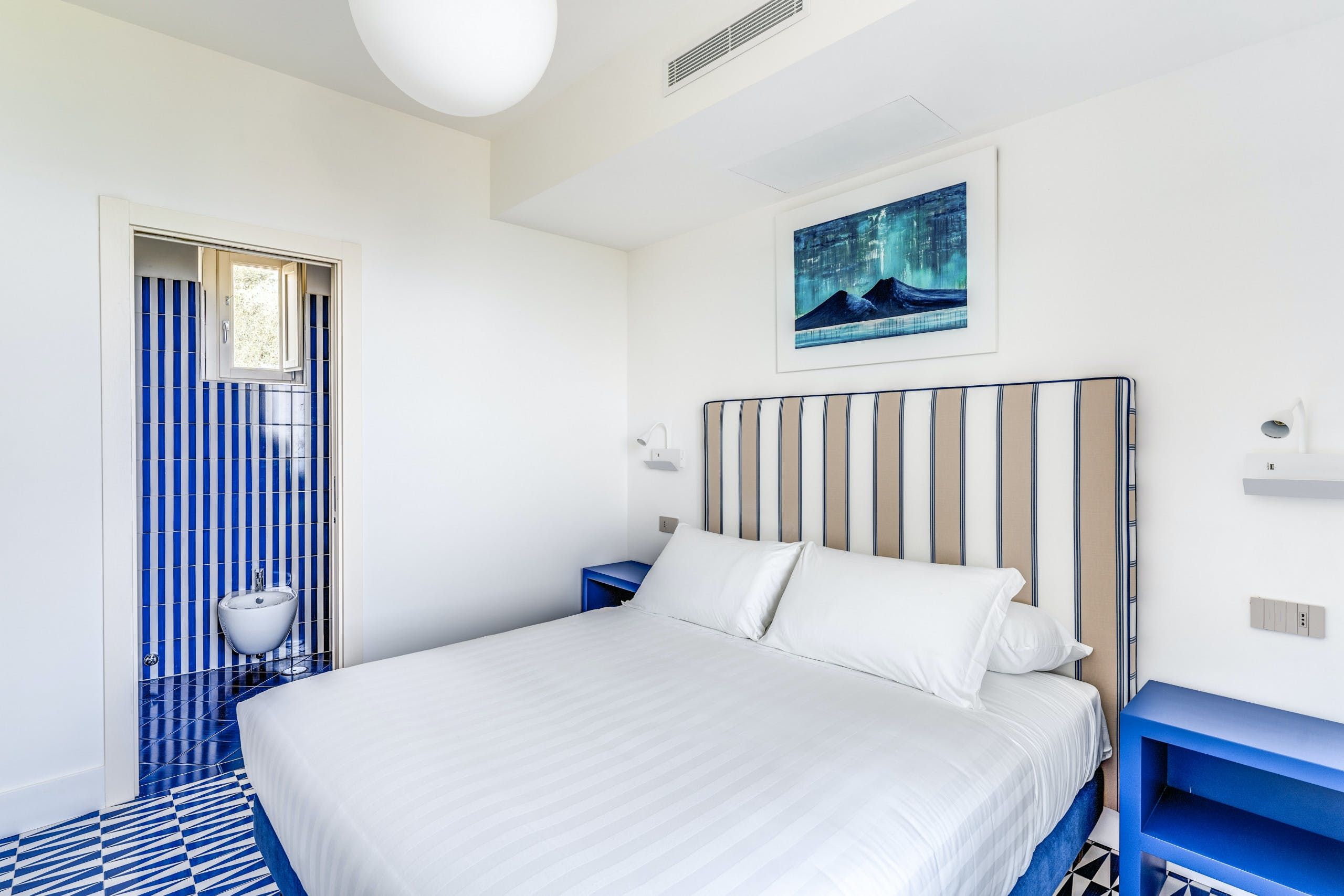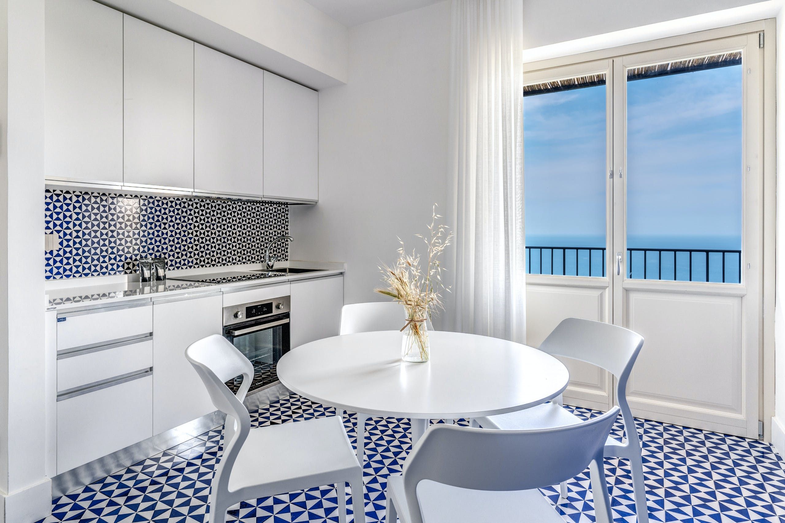 This contemporary apartment is a delightful base for four. It boasts views of the Amalfi Coast’s countryside as well as the Mediterranean Sea – and you can enjoy these views from the balcony or from the private Jacuzzi on the rooftop terrace. You’ll also have access to a communal swimming pool, and are within easy reach of the coast. Inside, tall windows ensure that the apartment is bright and welcoming, and the custom-designed flooring adds plenty of colour.