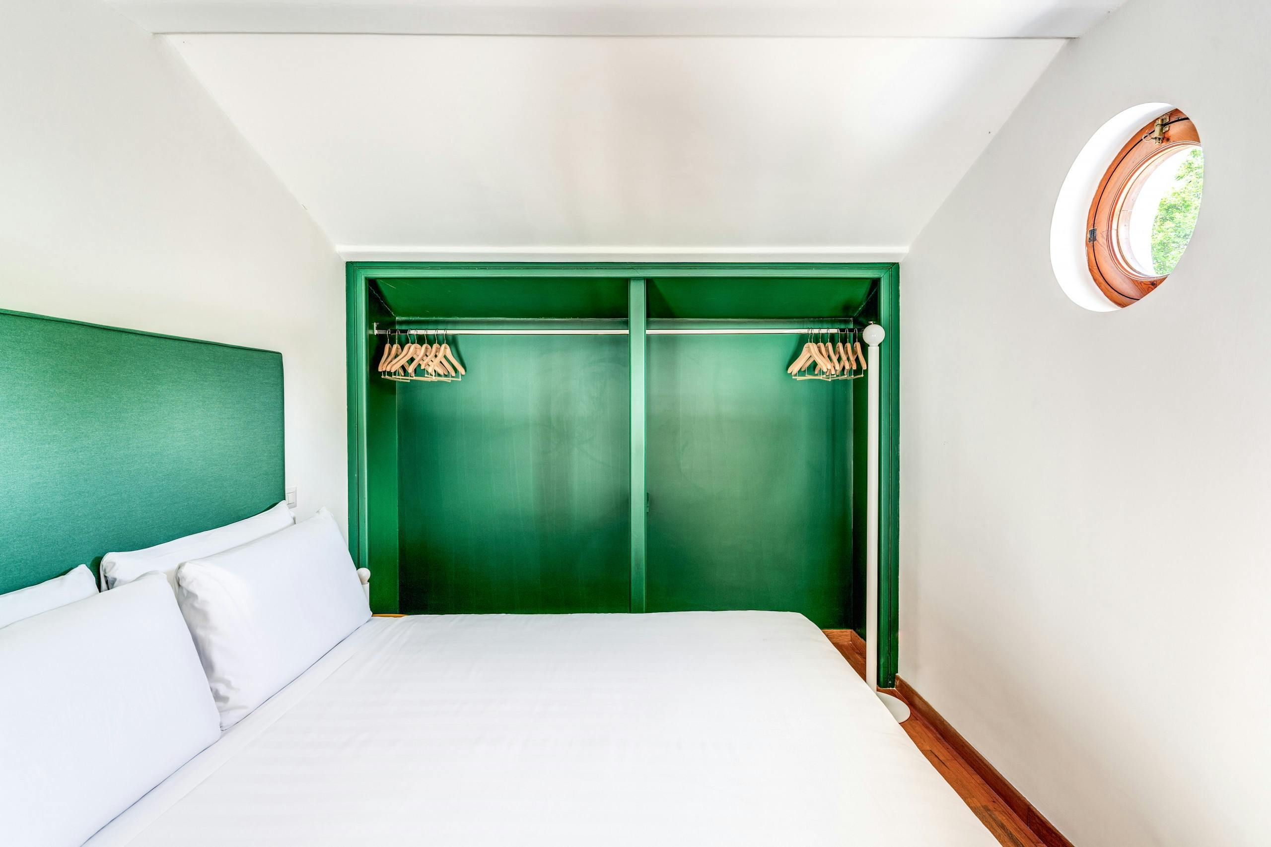 *The bed here is on a mezzanine level – the ceiling height is 1.9m metres. At capacity, two guests will sleep on the sofa bed in the living space.
