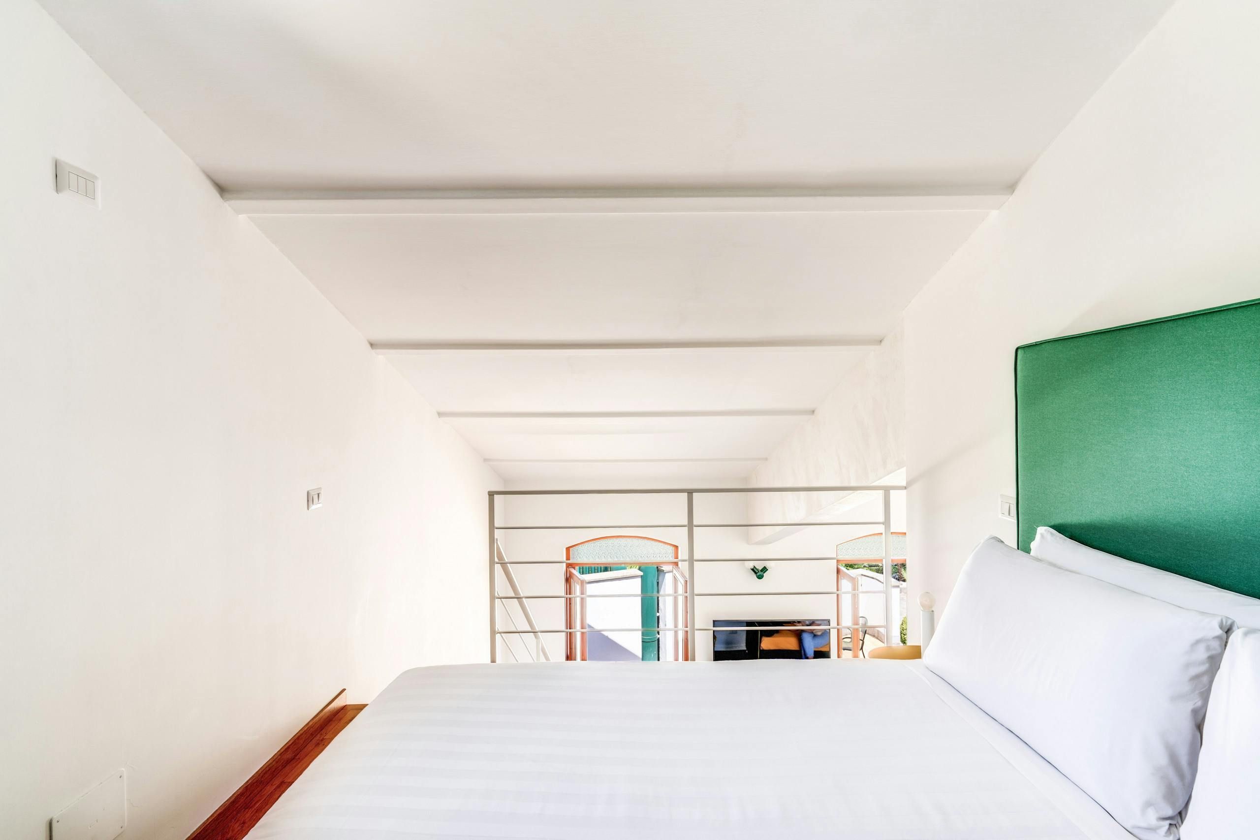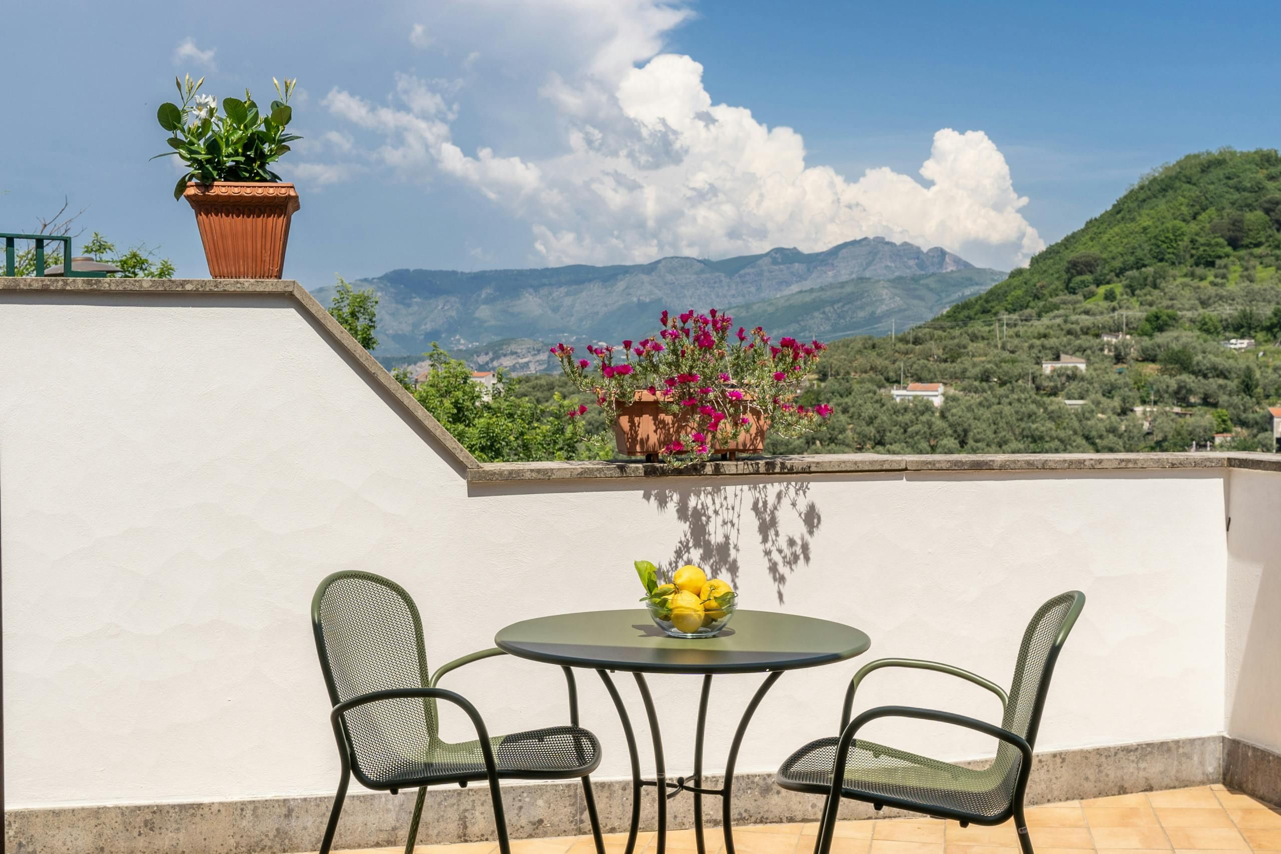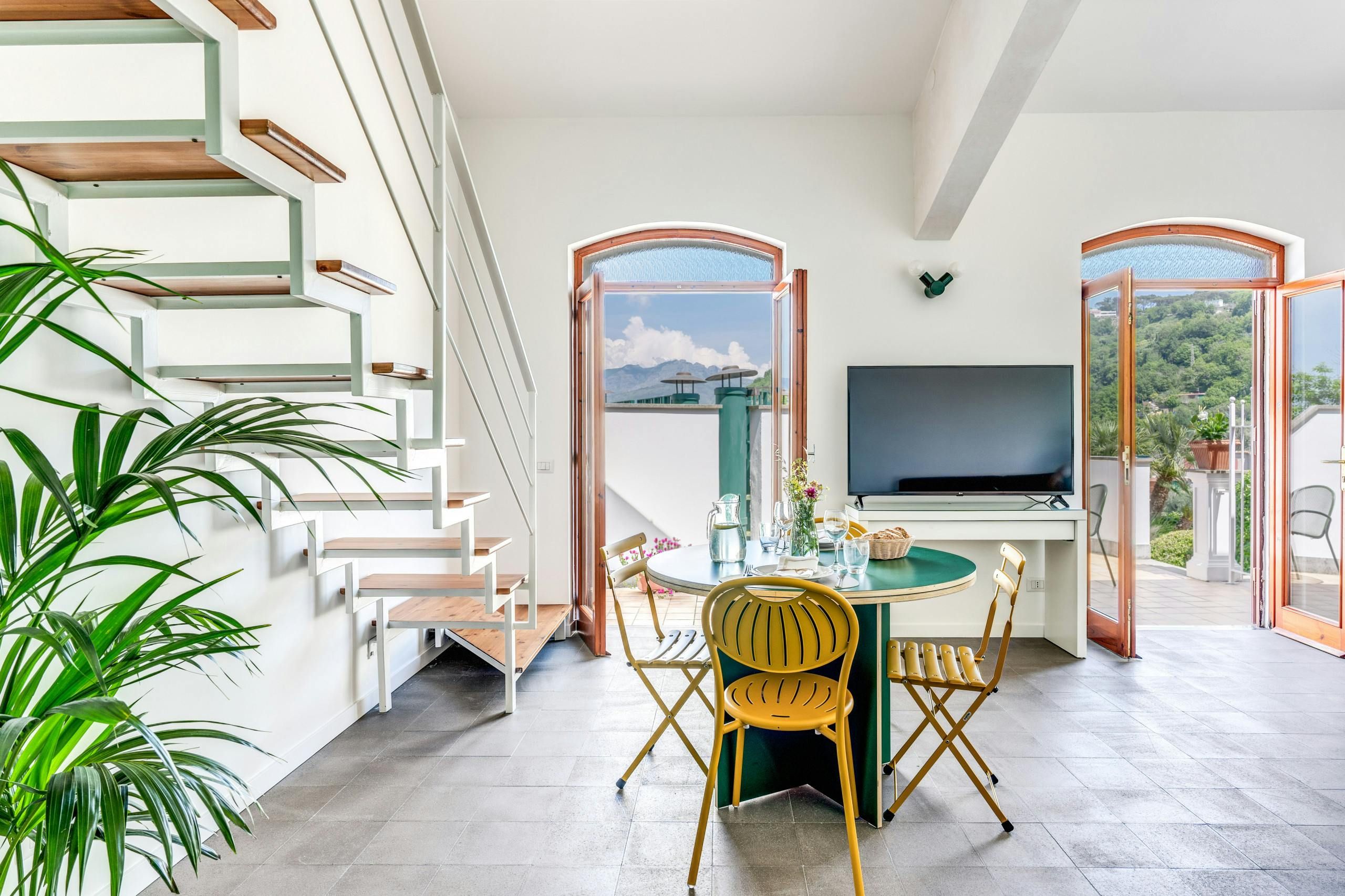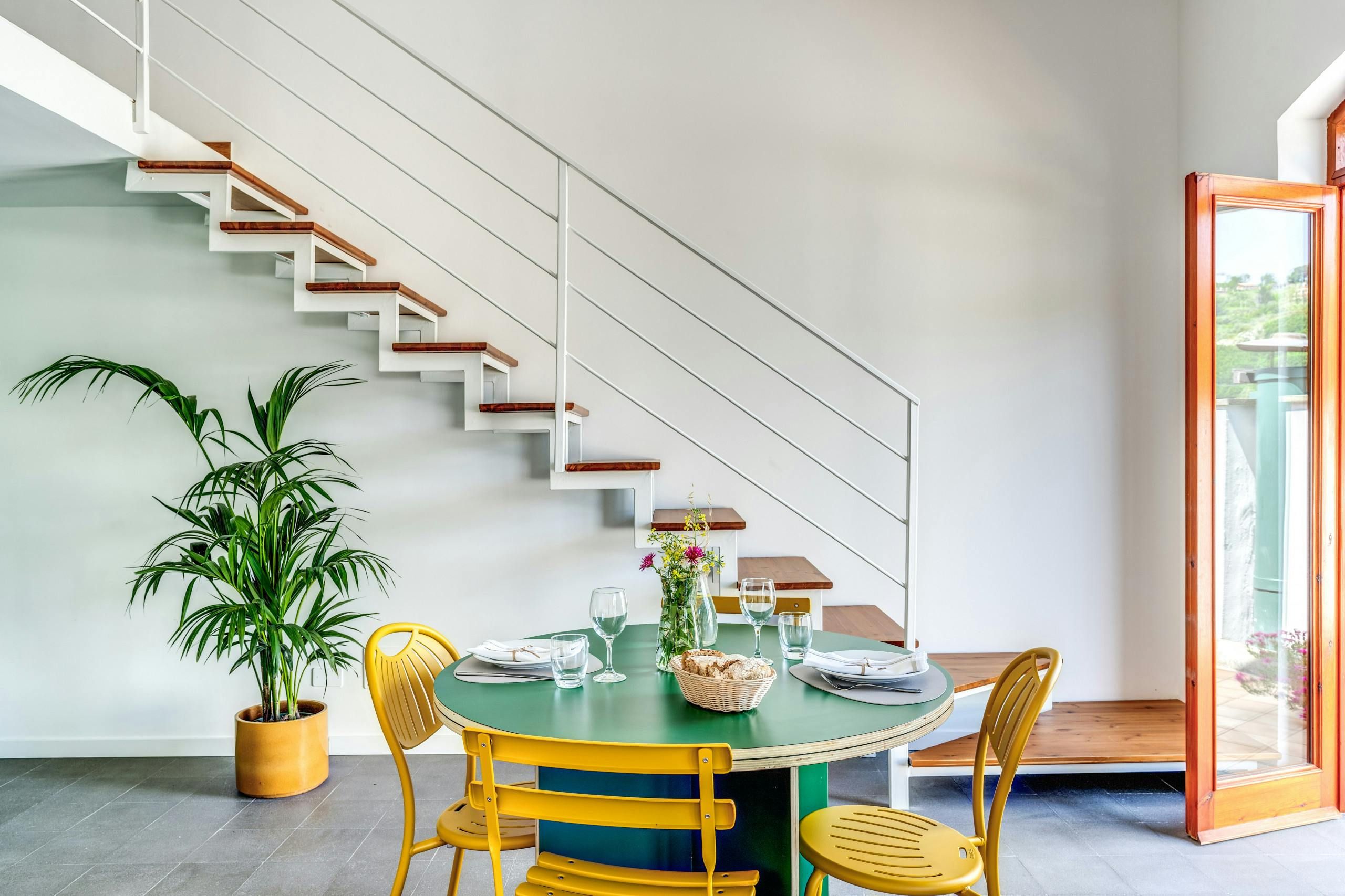 Compact yet bright and modern, this apartment suits a solo traveller, couple or small family seeking a peaceful stay a twenty-minute drive from Sorrento and the Amalfi Coast. While the home is equipped with a kitchen, you won’t find an oven, only a hob. Fortunately, eateries are within walking distance if you fancy a feast. As the mezzanine bedroom is semi-open to the space below, we think the sofa bed is better suited for children if you stay as a group of four. Outside, there’s a private terrace with sweeping views of the landscape.