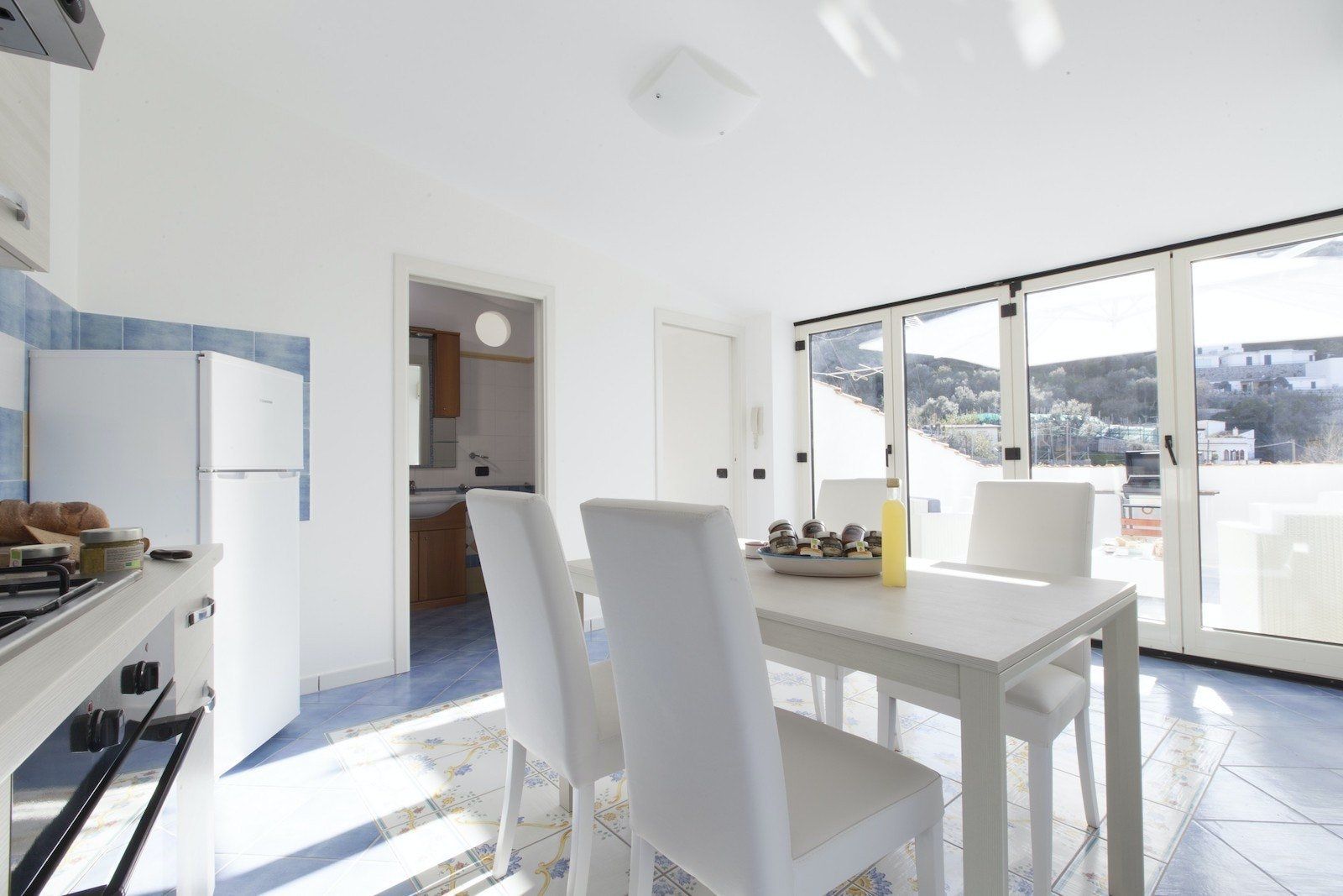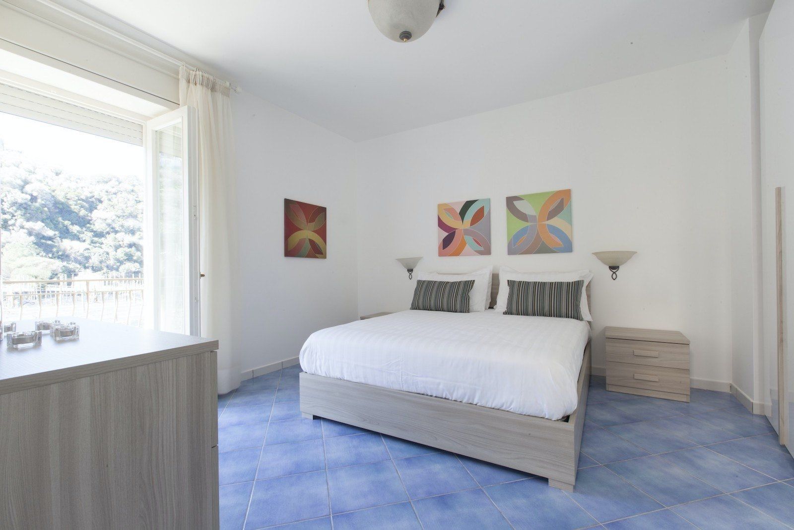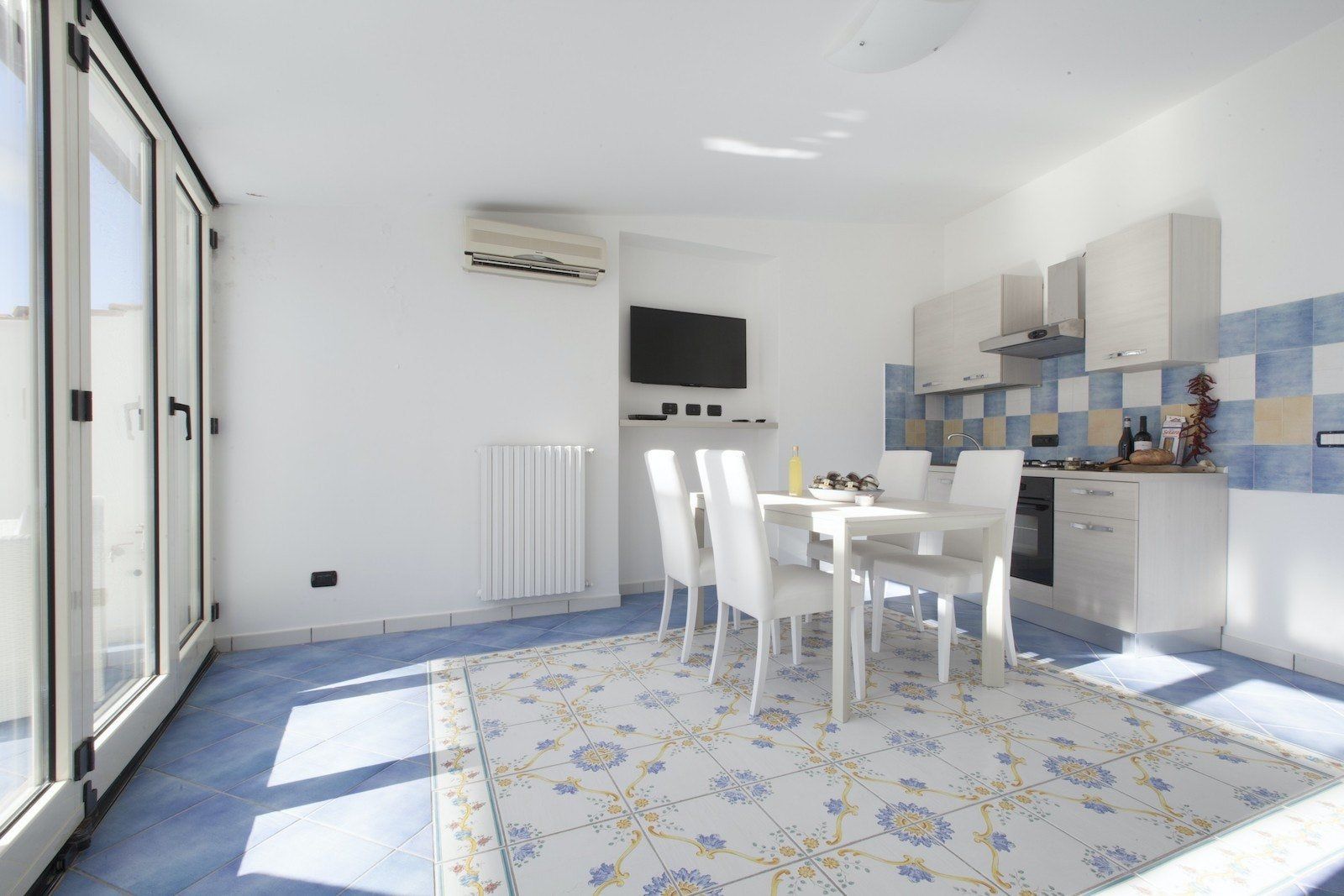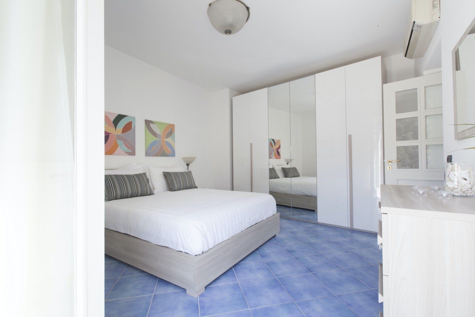 White and blue dominate the decor throughout, reflecting the azure hues of the sea and sky, plus the occasional passing cloud. The main bedroom also boasts its own private balcony that opens out onto fragrant lemon and olive trees that are used to create all manner of sumptuous local products.