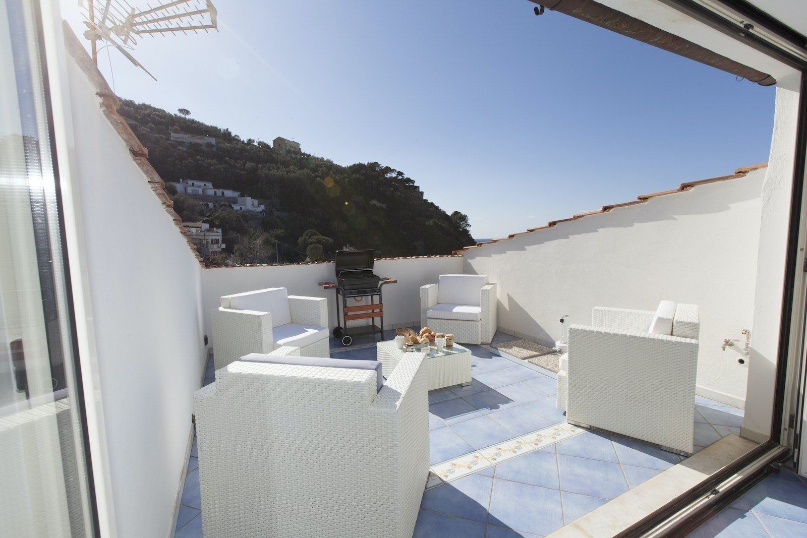 Take a seat on the scenic rooftop terrace and look out over the tree-covered hillside that plunges down to the sea, where pleasure craft and colourful fishing boats bob in Marina della Lobra.