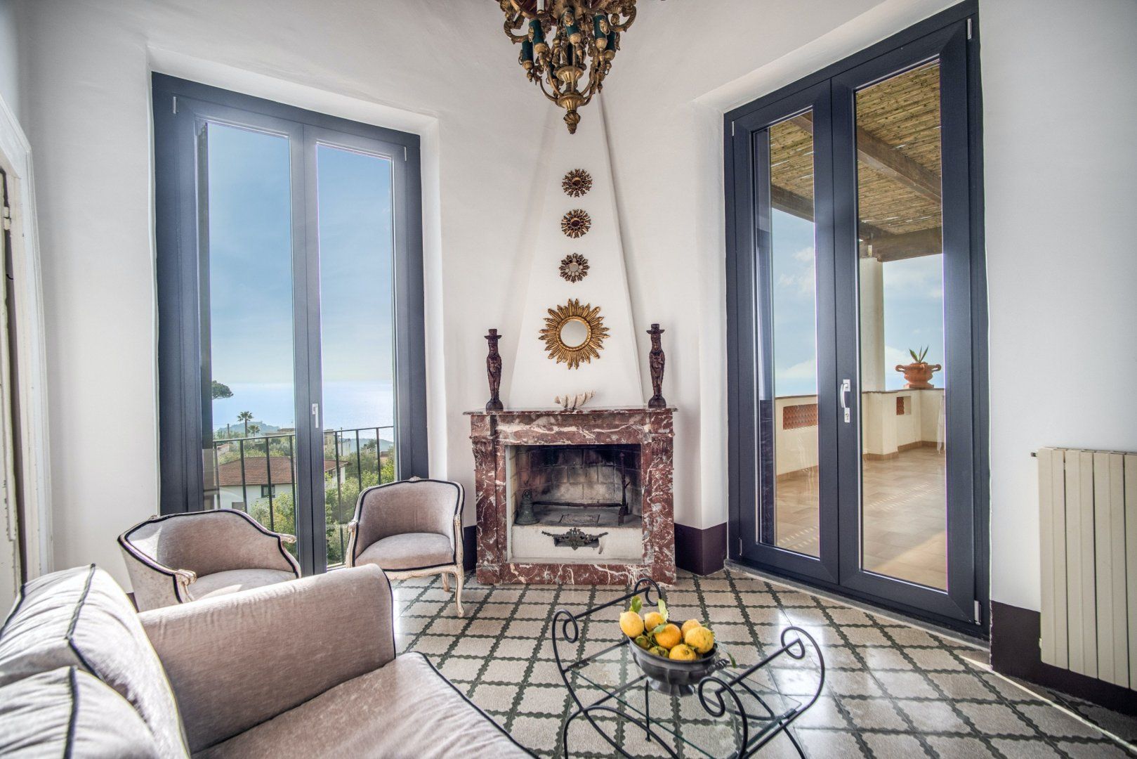 Adorned in culture and history, this luxurious villa and its gardens present a setting akin to a dream-like fairytale through its sea views, charming Italian-inspired interiors, impressive architectural features, and magical Mediterranean fauna and flora all around. Surrounded by two acres of land, the home is fringed with fruit trees and olive groves that bring peace and delicious aromatic scents to the sweet Amalfi air surrounding you.