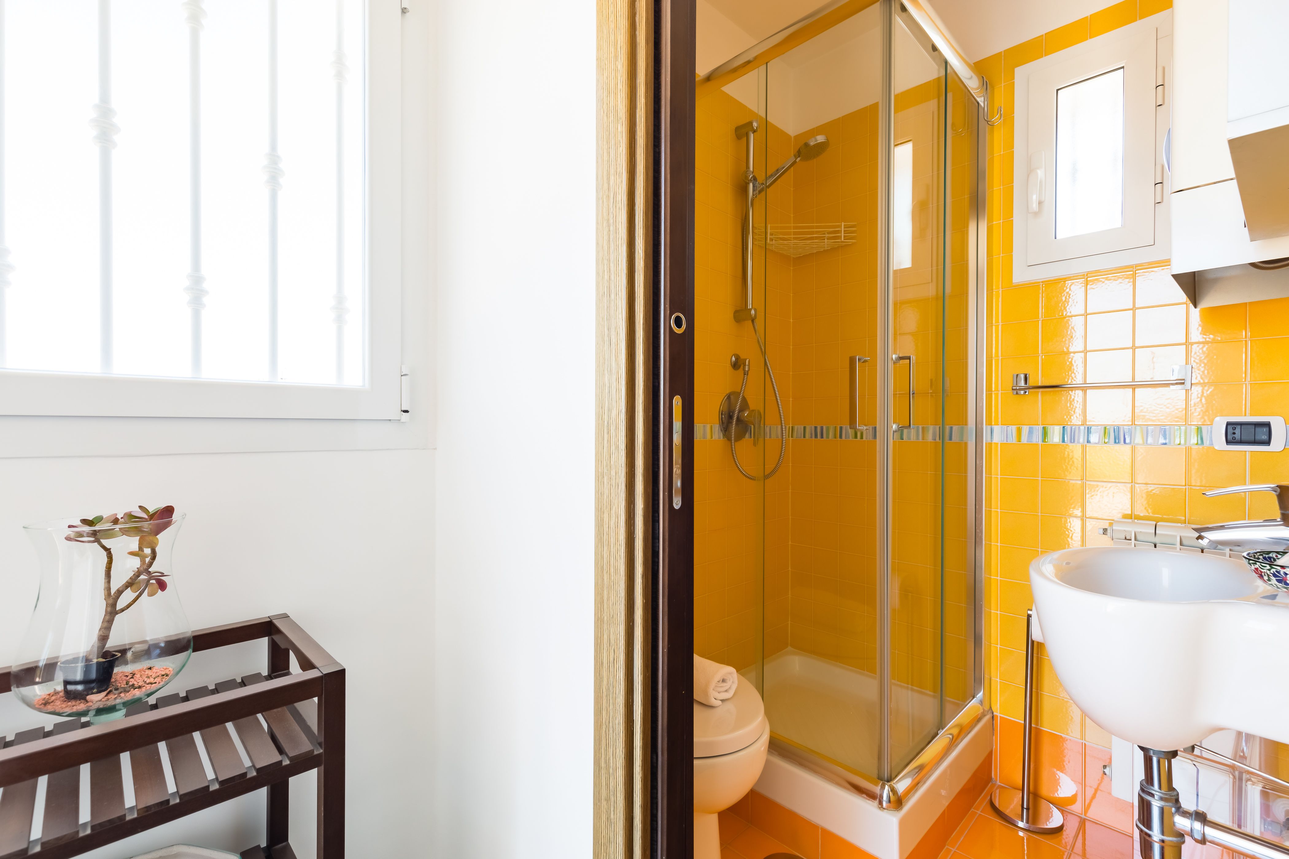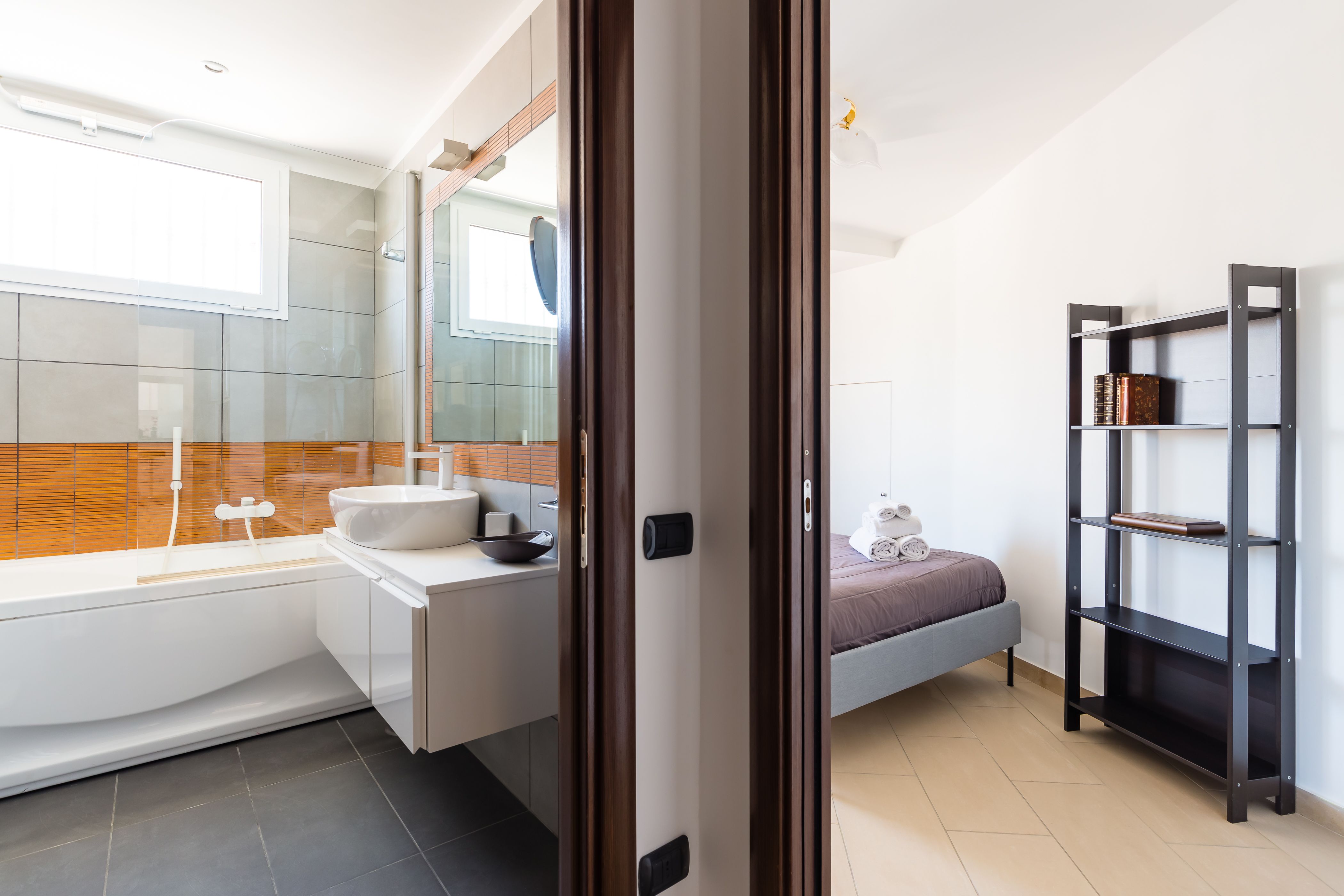 The apartment is a charming mix of old and new, with gallery-white walls keeping things light and breezy, and plenty of pops of colour from modern artworks. Darkwood furnitures feels like it’s been handed down for generations, especially the dining table. While the kitchen’s big, range-style cooker can keep even the fussiest of chefs happy – you’re in one of the foodie capital of Italy after all.