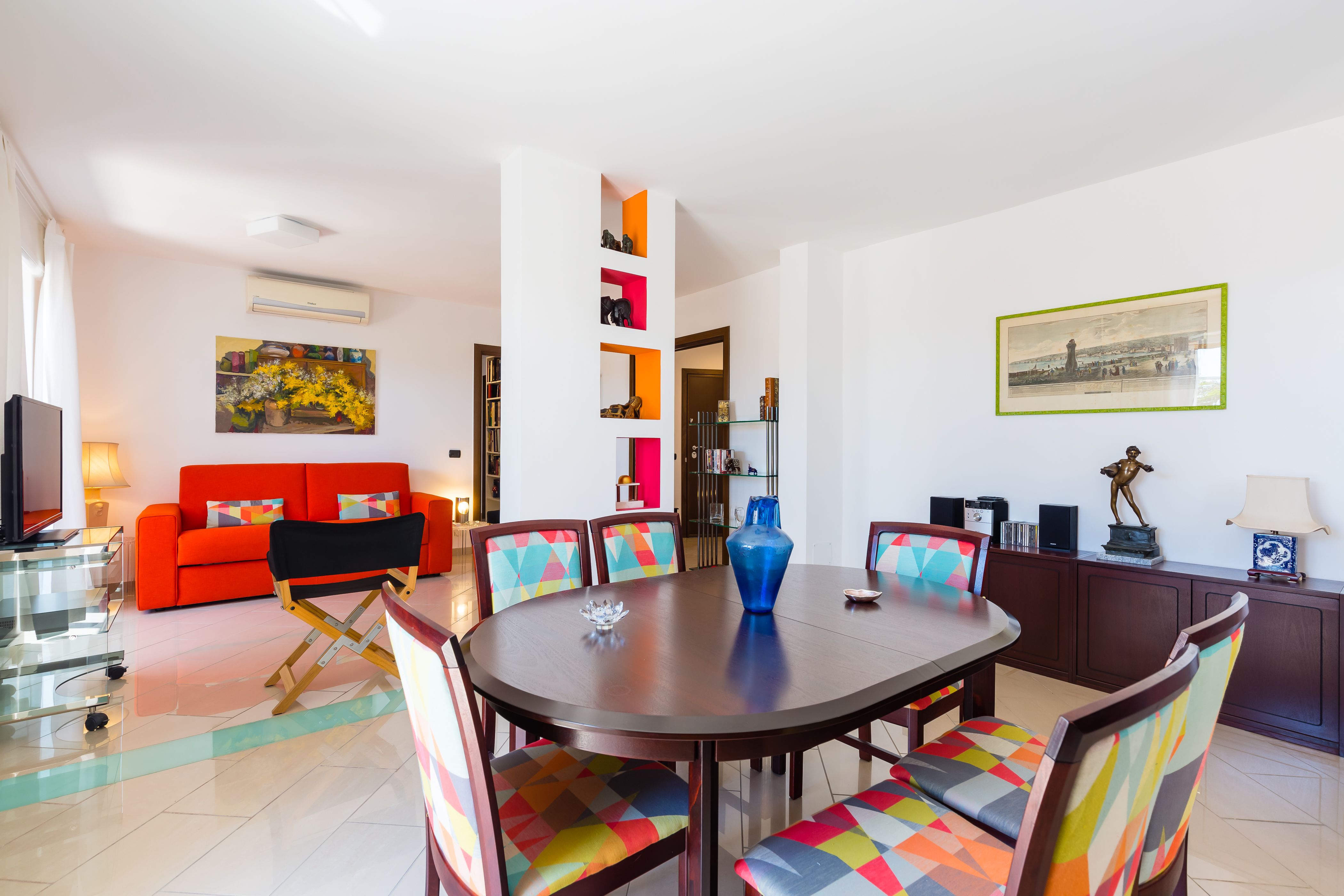 Set in the upscale, leafy Naples neighbourhood of Vomero, this penthouse apartment looks out over the red rooftops. The surrounded streets are set on a hill, so the view from café terraces and pizzeria balconies of the Bay of Naples and Vesuvius. There are plenty of ancient sites on your doorstep, but a ten-minute hop on the metro from nearby Medaglie d'Oro will see you at Naples’ shambling, atmospheric old centre.