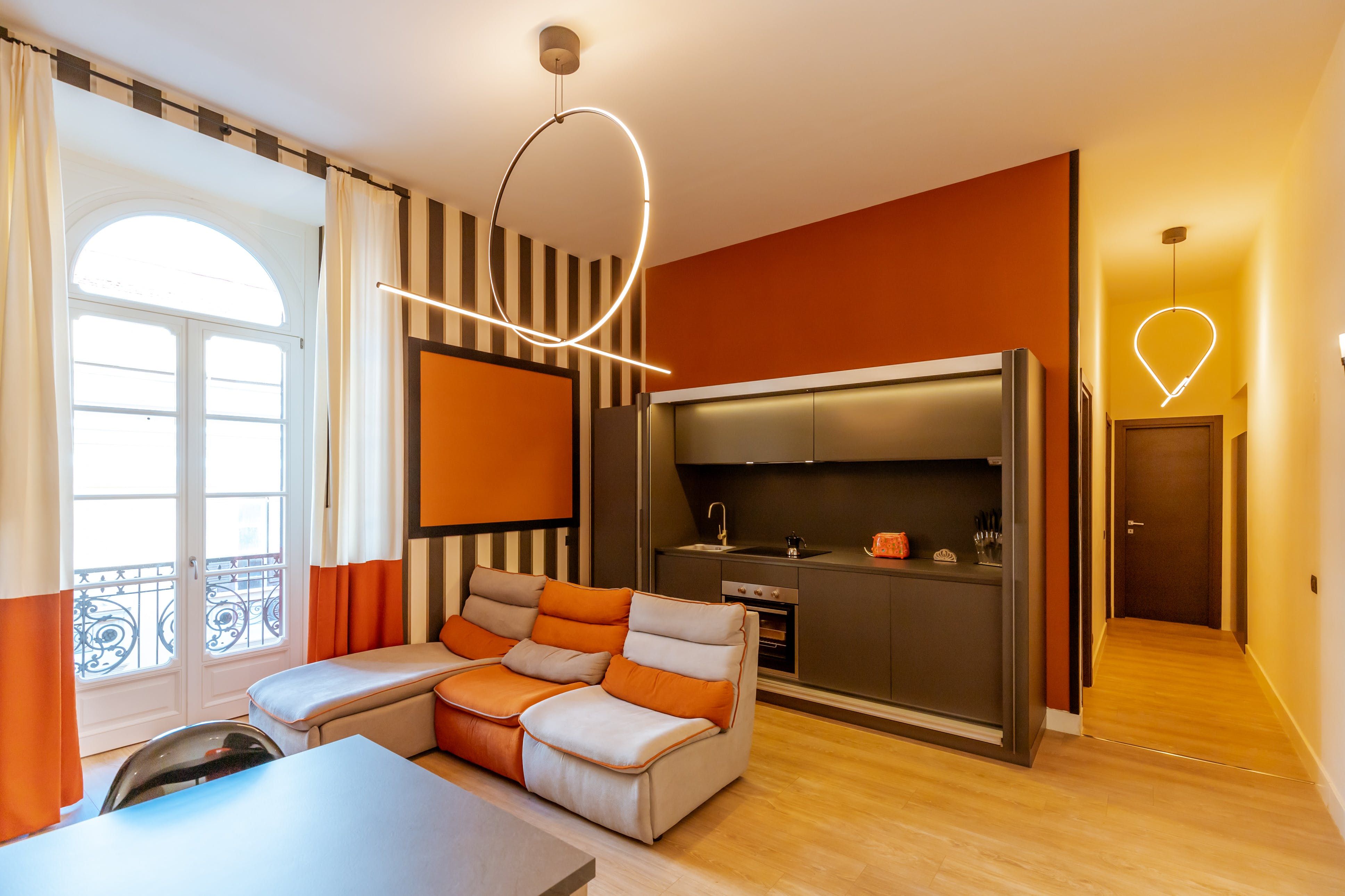 Located in a beautiful historic building in Naples' centre, this playful apartment is a memorable base to explore the bustling Italian city. When you arrive, you'll be instantly struck by the punchy decor – a palette of bright orange, black and off-white creates a dynamic, interesting space.
