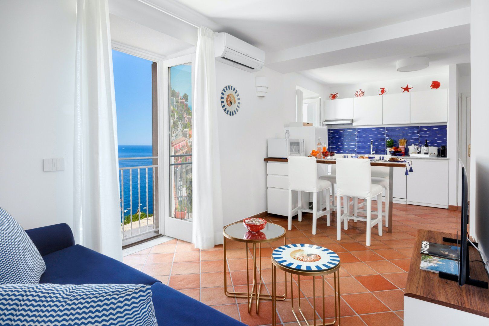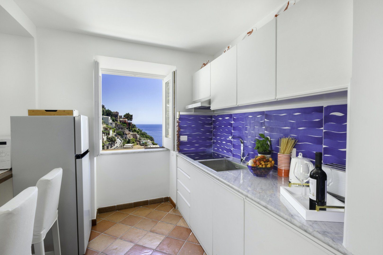 In the sun-soaked village of Positano, this studio apartment is a peaceful idyll within walking distance of the lively shores of Positano Beach. Inside, it’s all crisp white and cobalt blue. Unwind on the loveseat with a cappuccino, basking in a salty breeze that drifts through the Juliet balcony doors. Put together a Caprese salad at the kitchenette then tuck in at the dining table. When you’re ready to explore, slather on your sunscreen and take a gentle stroll through the pastel-hued streets.
